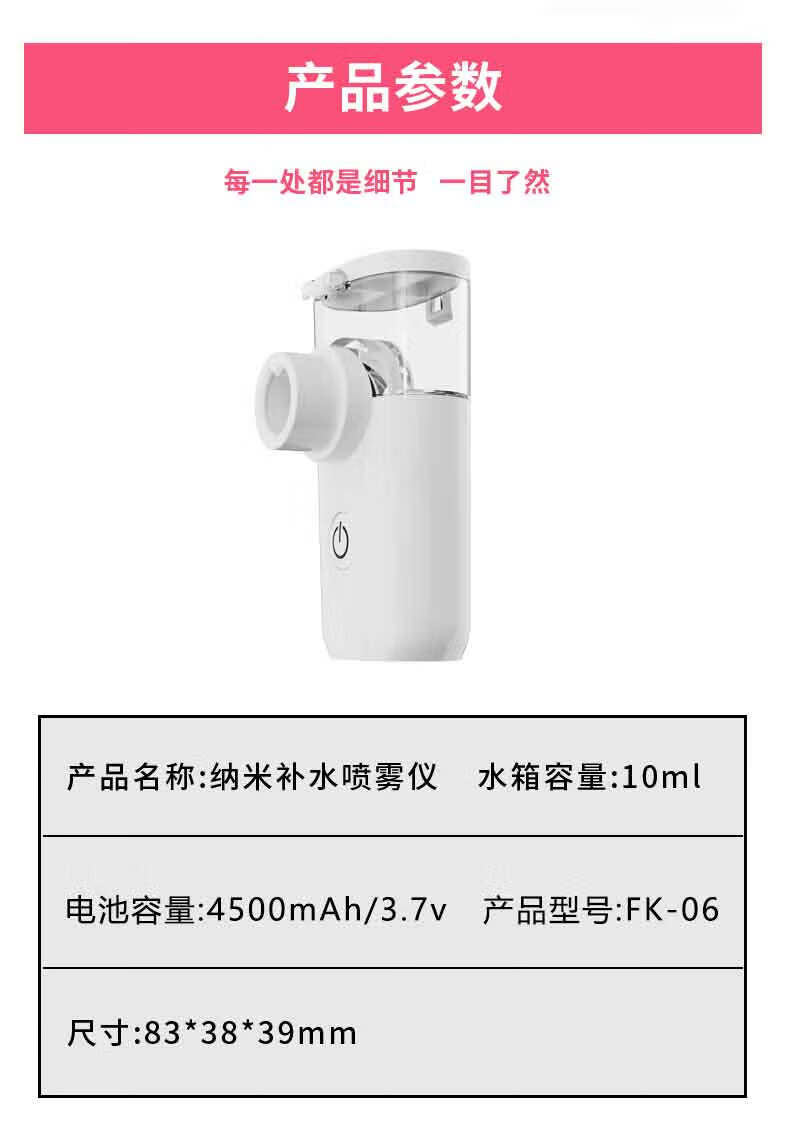 Fukong Portable Nano Spray Moisturizer Sprayer Oxygen Injection Portable Facial Moisturizing Small Facial Steamer Facial Steamer Cold Spray Handheld Humidifying Beauty Device White Nano Moisturizer + Mist Eye Moisturizer