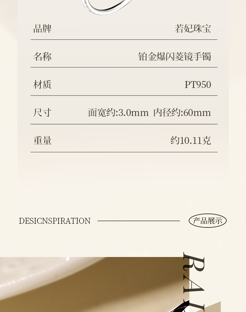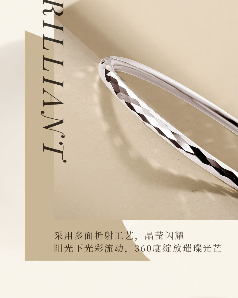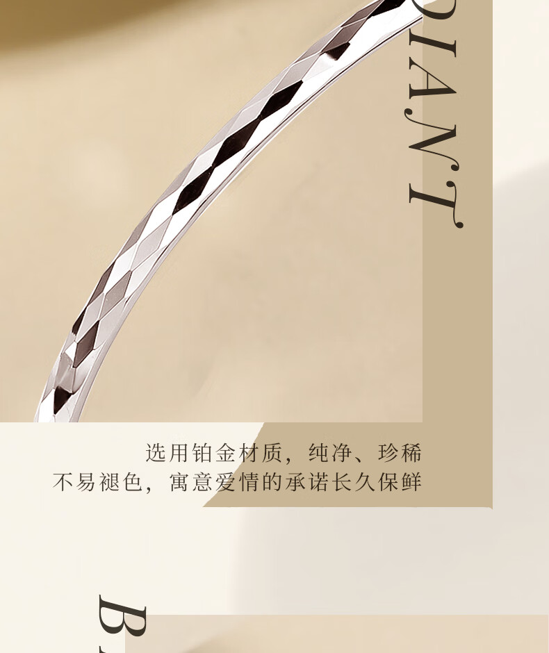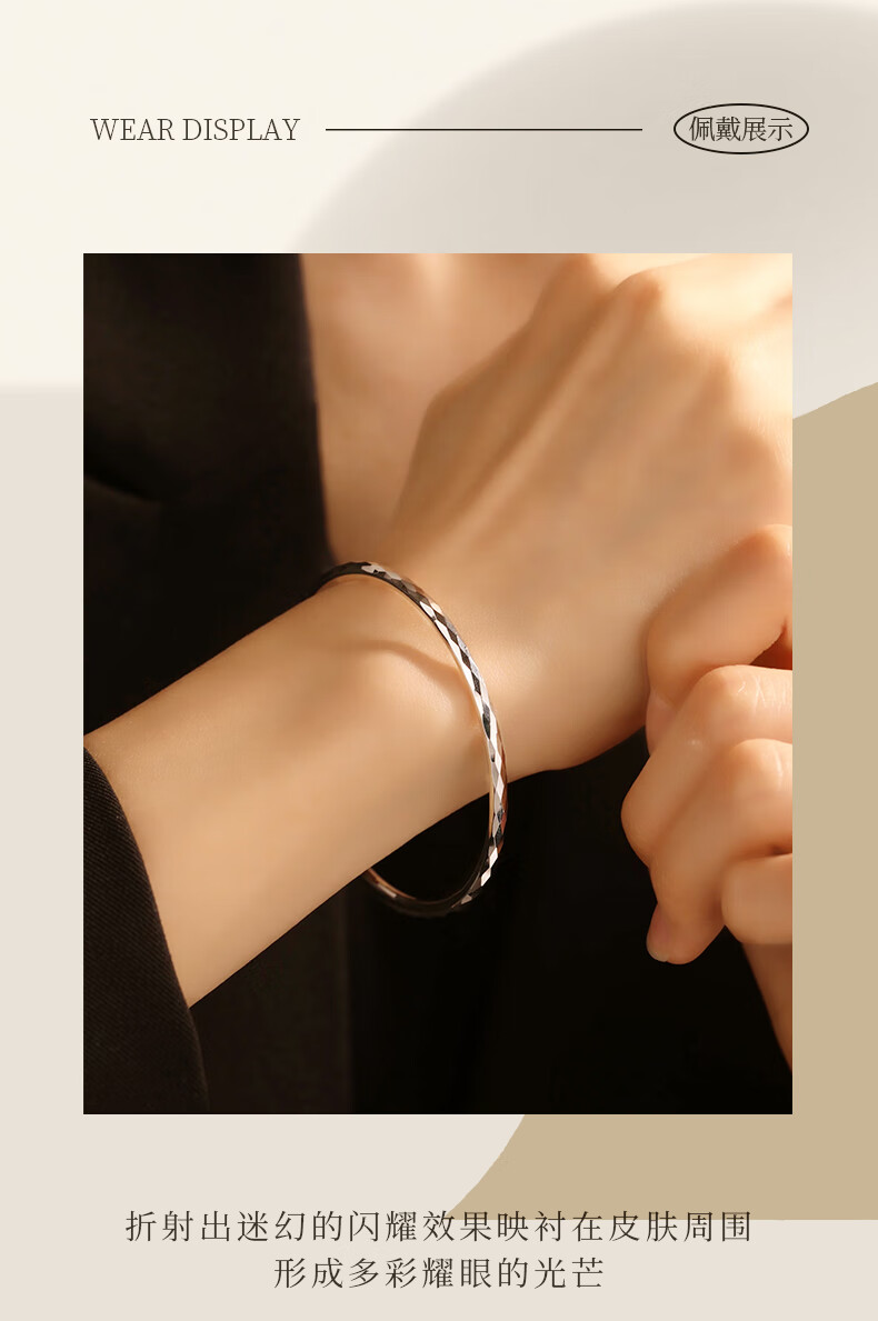 Ruofei platinum bracelet women's pt950 platinum women's bracelet sparkling rhombus mirror bracelet women's new semi-solid round bracelet inner diameter 52mm weight 8-9g thick about 3mm