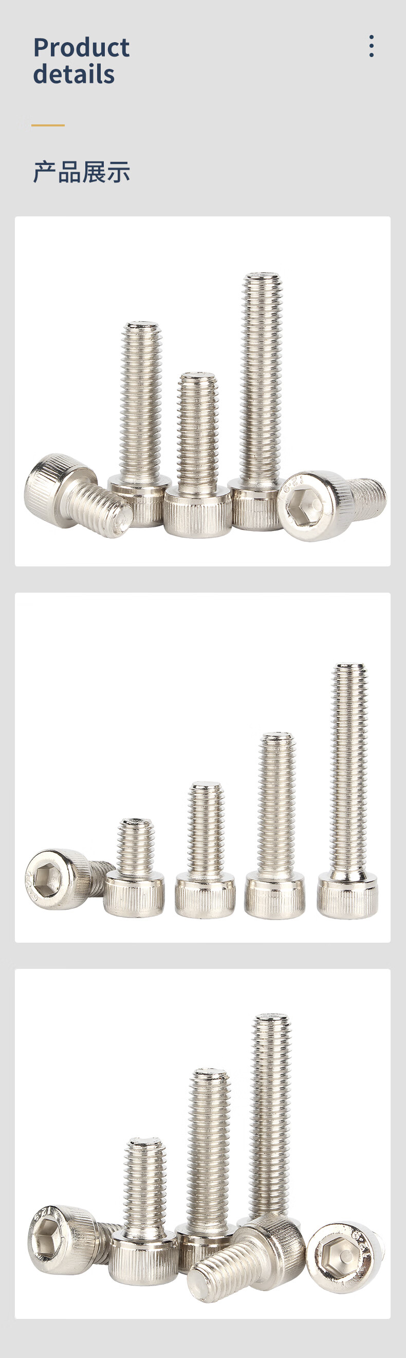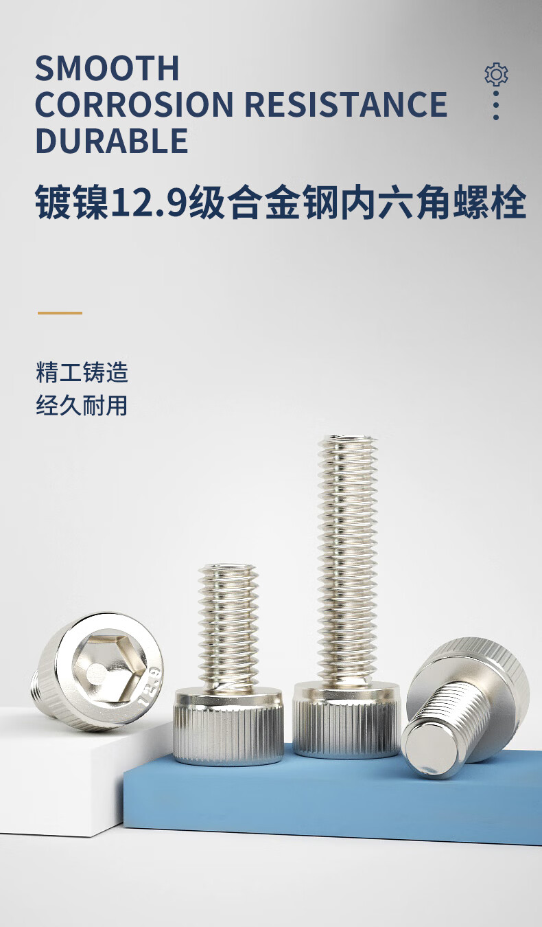 Guwanji nickel-plated 12.9 grade hexagon socket screws cylindrical head high-strength bolts cup head screws M2M3M4M5M6 M2.5x30 full teeth (50 pieces)