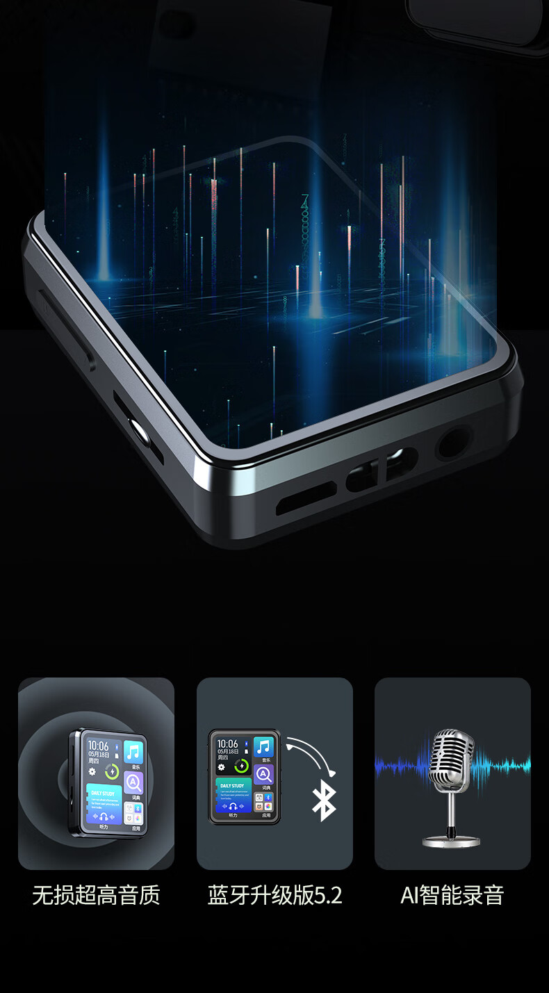 Original applicable Bluetooth mp3mp4 walkman student version high school student special player mp5mp6 novel listening song 2-inch button version 32GB standard