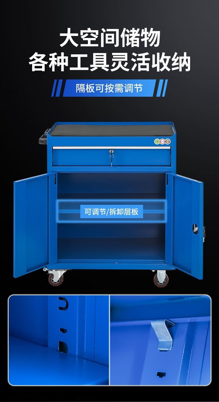 An Junsheng Tool Cabinet Workshop Multi-drawer Lockable Mobile Wheeled Tool Cart Workbench Customized for Heavy Auto Repair Practical One-Door Tool Cabinet Wheeled Blue