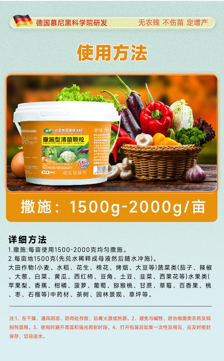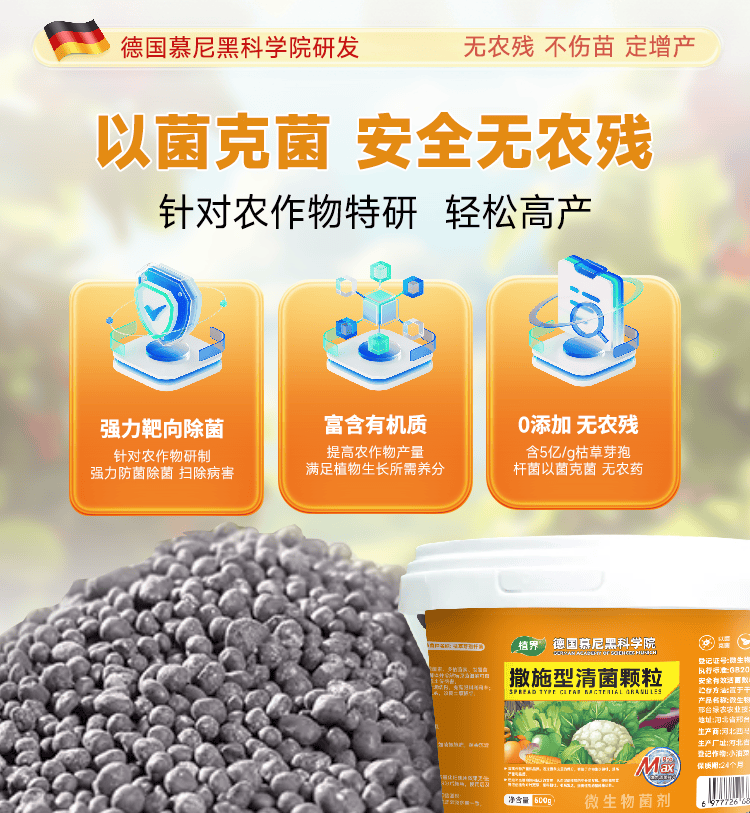 Spread-type pathogenic bacteria granules prevent diseases, prevent repeated cropping of fruits, vegetables, field crops, increase crop yields, improve soil, universal, genuine guarantee, high-efficiency protection of fruits, vegetables, 3 barrels/500g