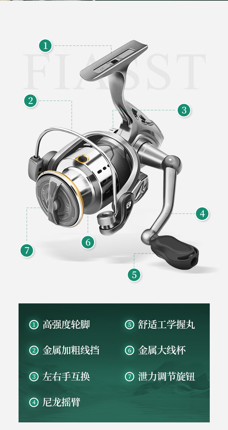 Feiyuejia small golf long-range fishing spinning wheel screw-in tilt-mouth freshwater oblique mouth micro-object metal spinning wheel silver CC3000 type - left and right hand interchangeable
