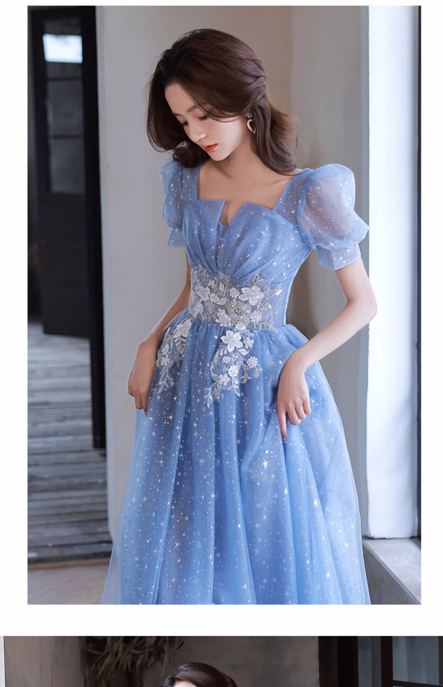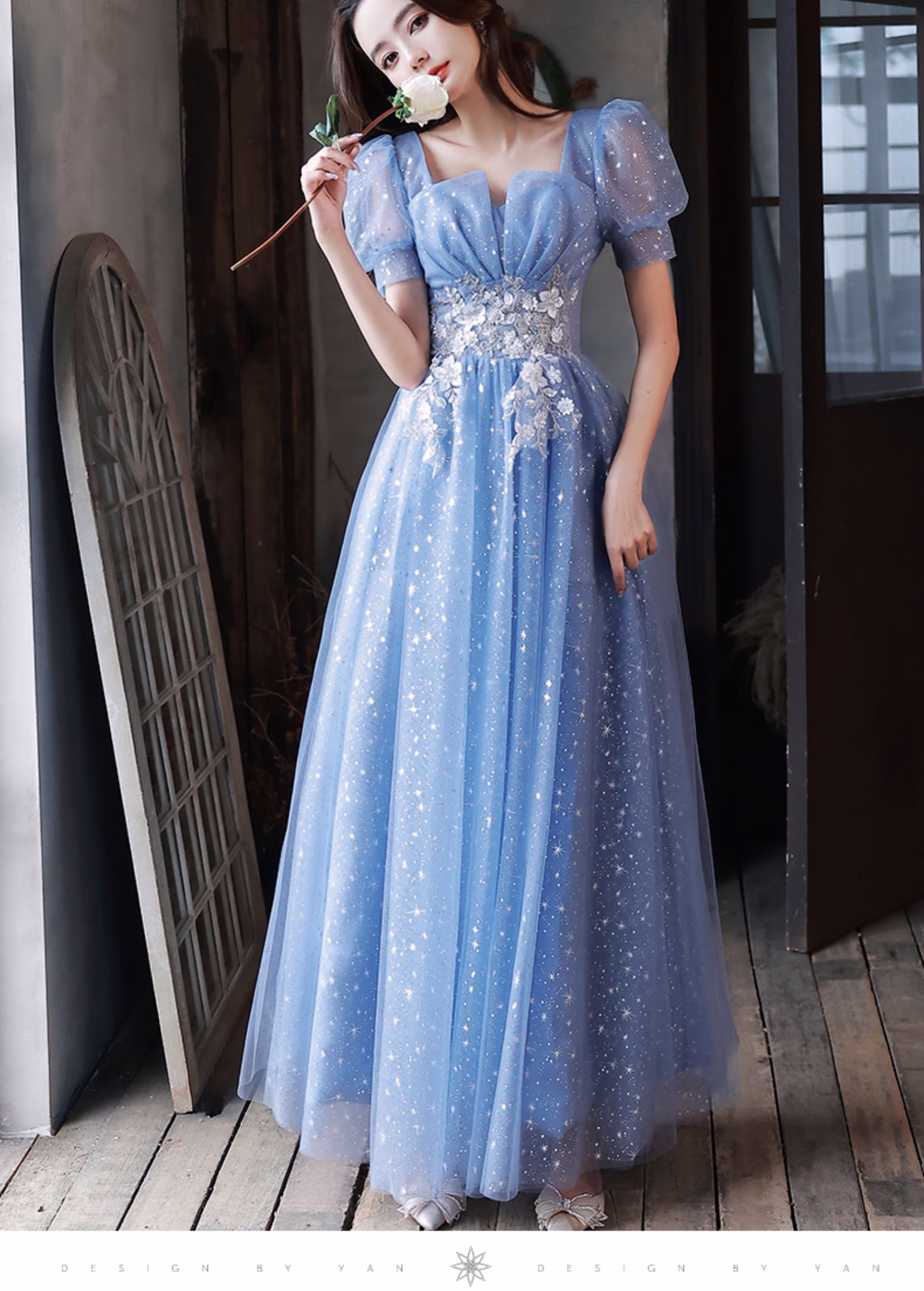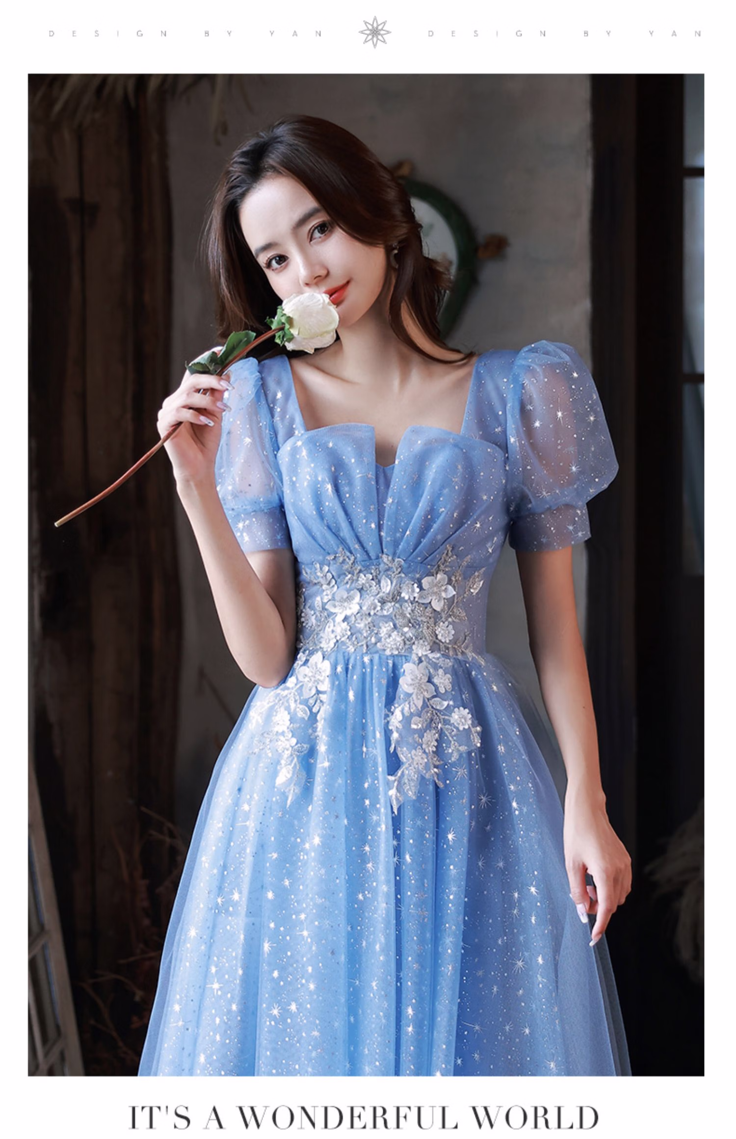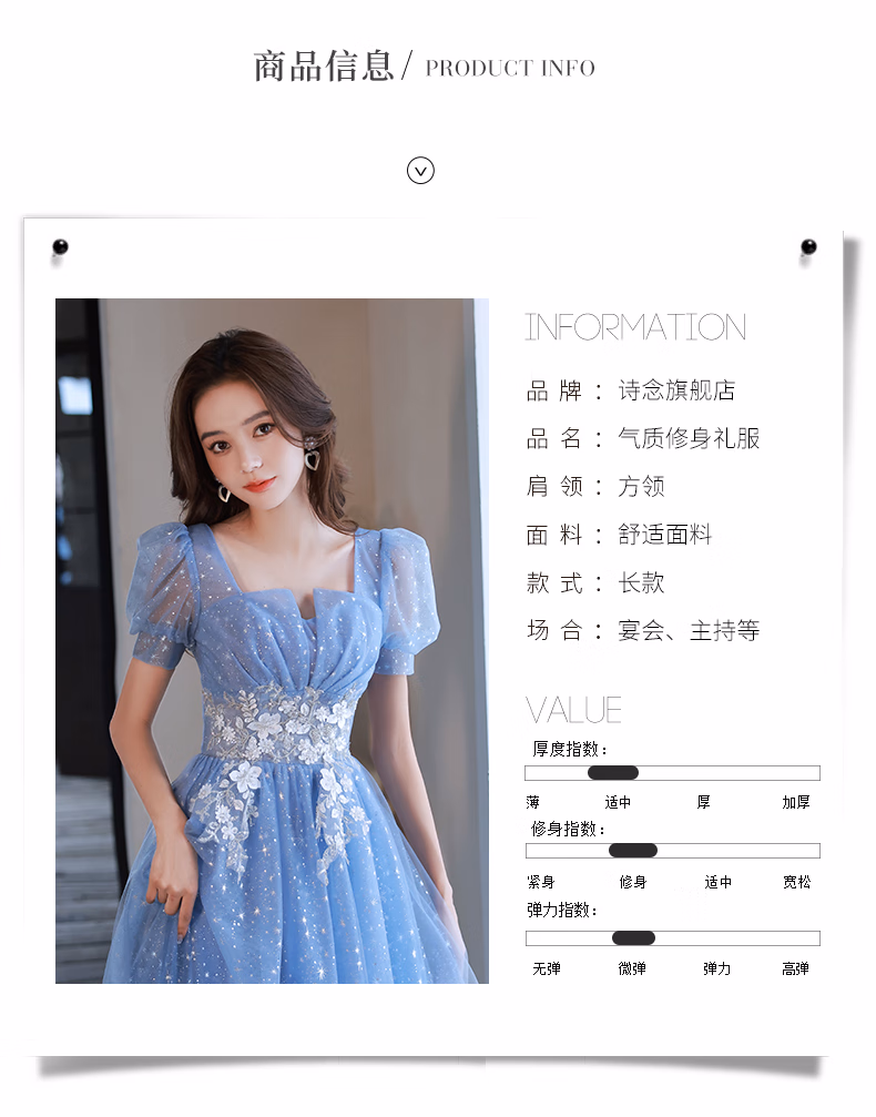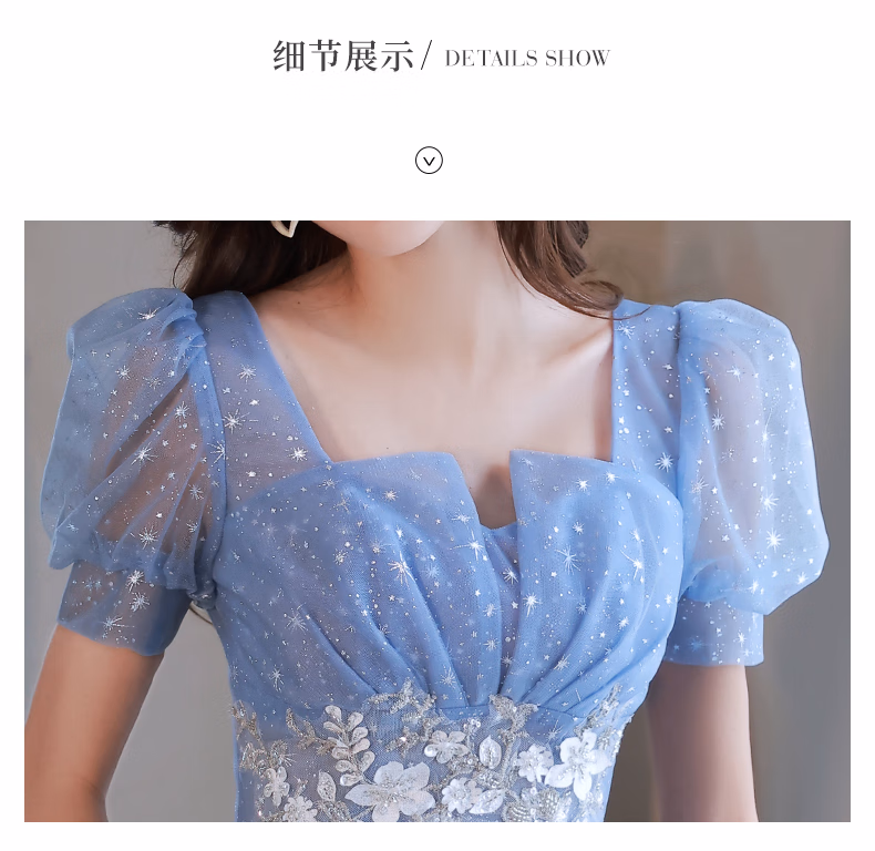 Weixuan evening dress for women's annual meeting, light luxury, niche high-end art exam, hosting solo performance, piano performance, blue skirt, blue, M one size fits all