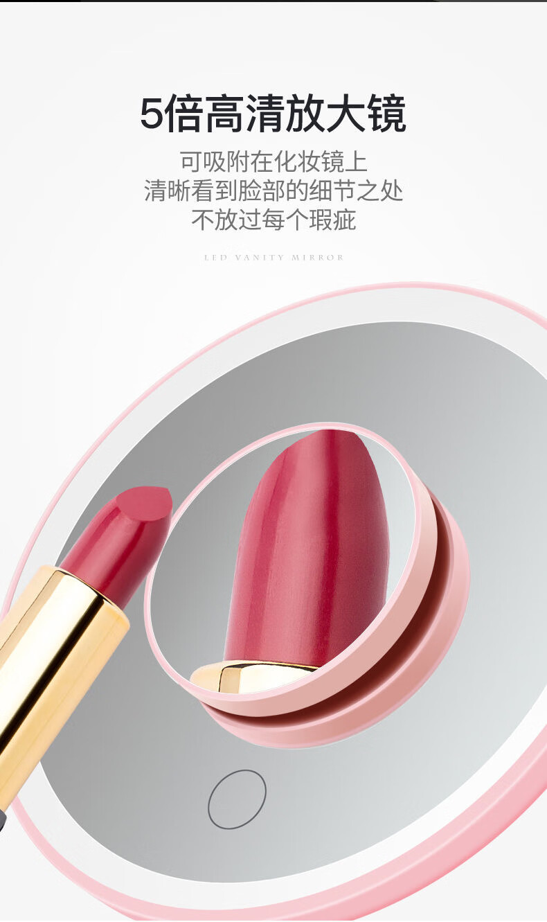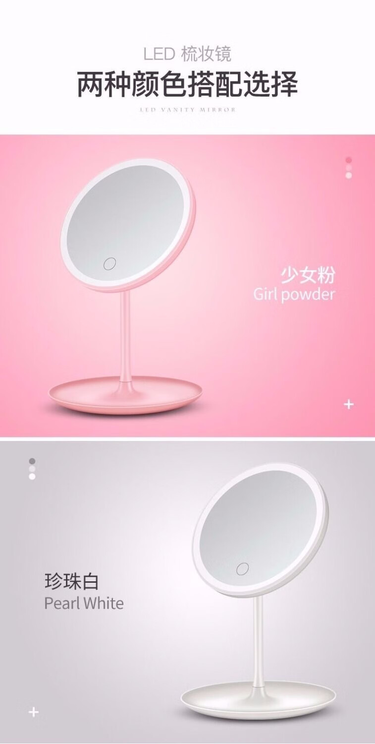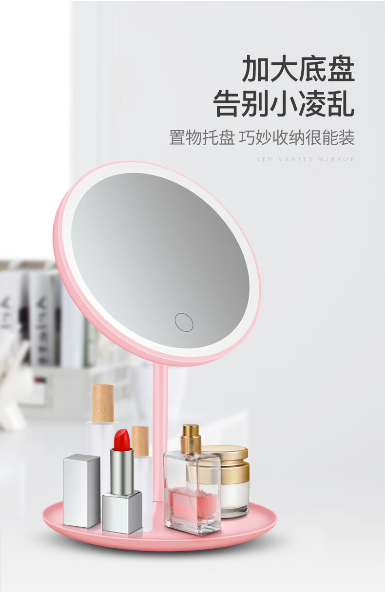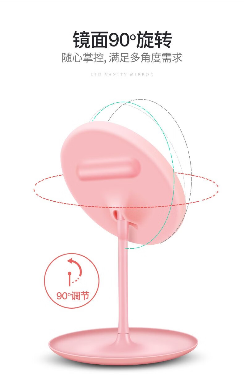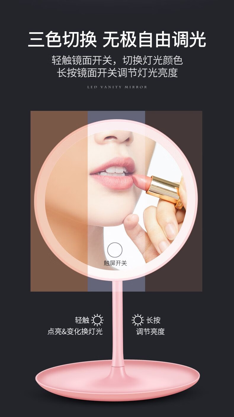 Beauty device Internet celebrity LED beauty mirror with light, supplementary light, desktop European style desktop dressing, student-specific travel, rotatable dormitory, mini business trip, plug-in model, three-color switching + stepless dimming, peach pink