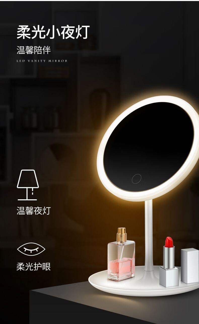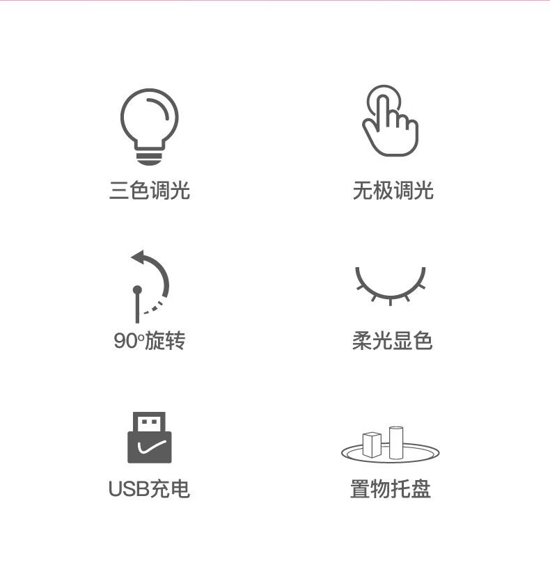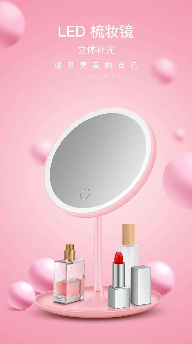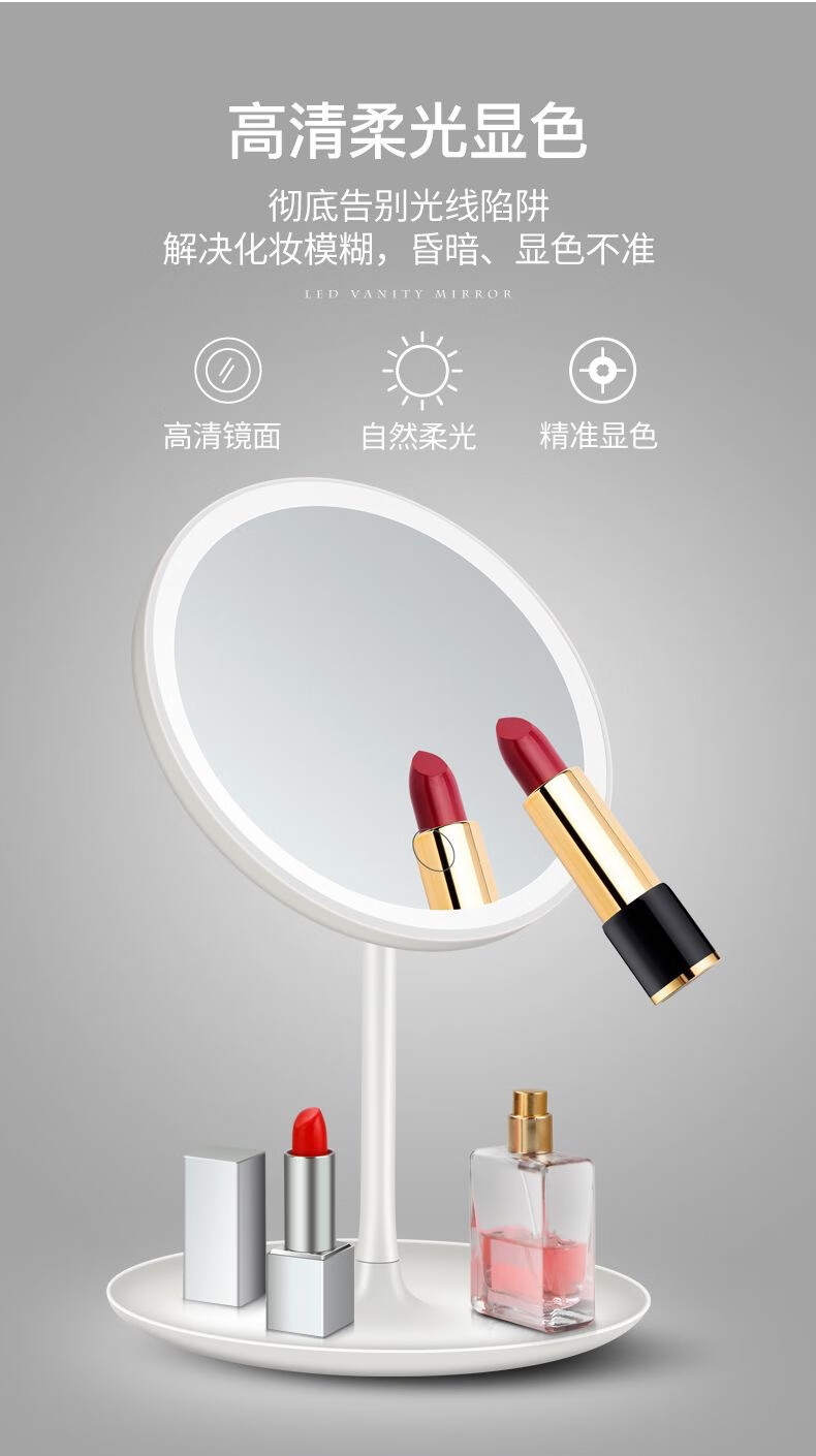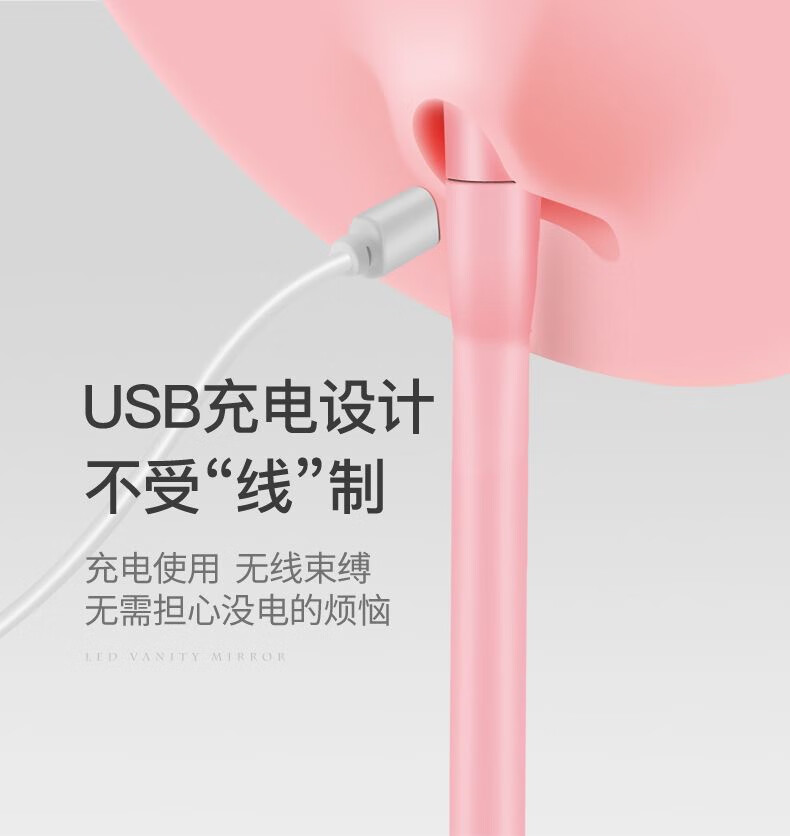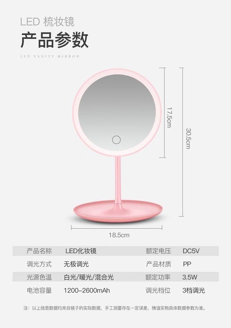 Beauty device Internet celebrity LED beauty mirror with light, supplementary light, desktop European style desktop dressing, student-specific travel, rotatable dormitory, mini business trip, plug-in model, three-color switching + stepless dimming, peach pink