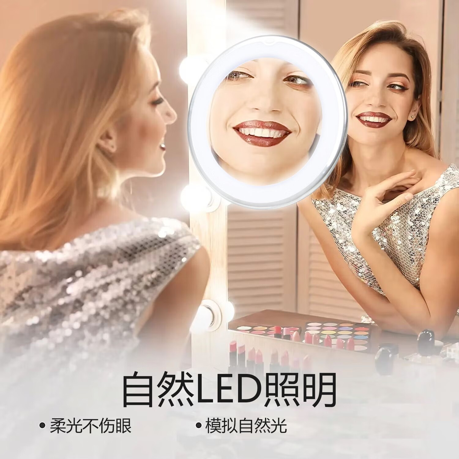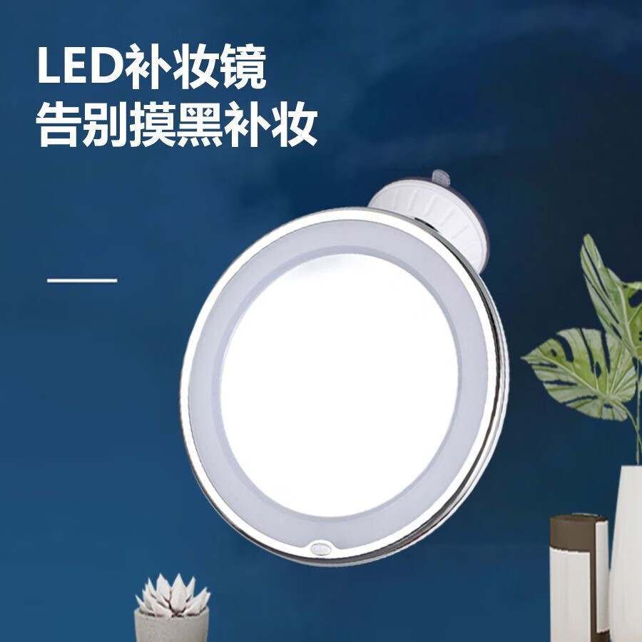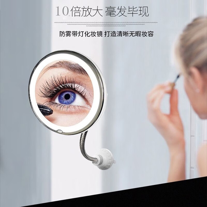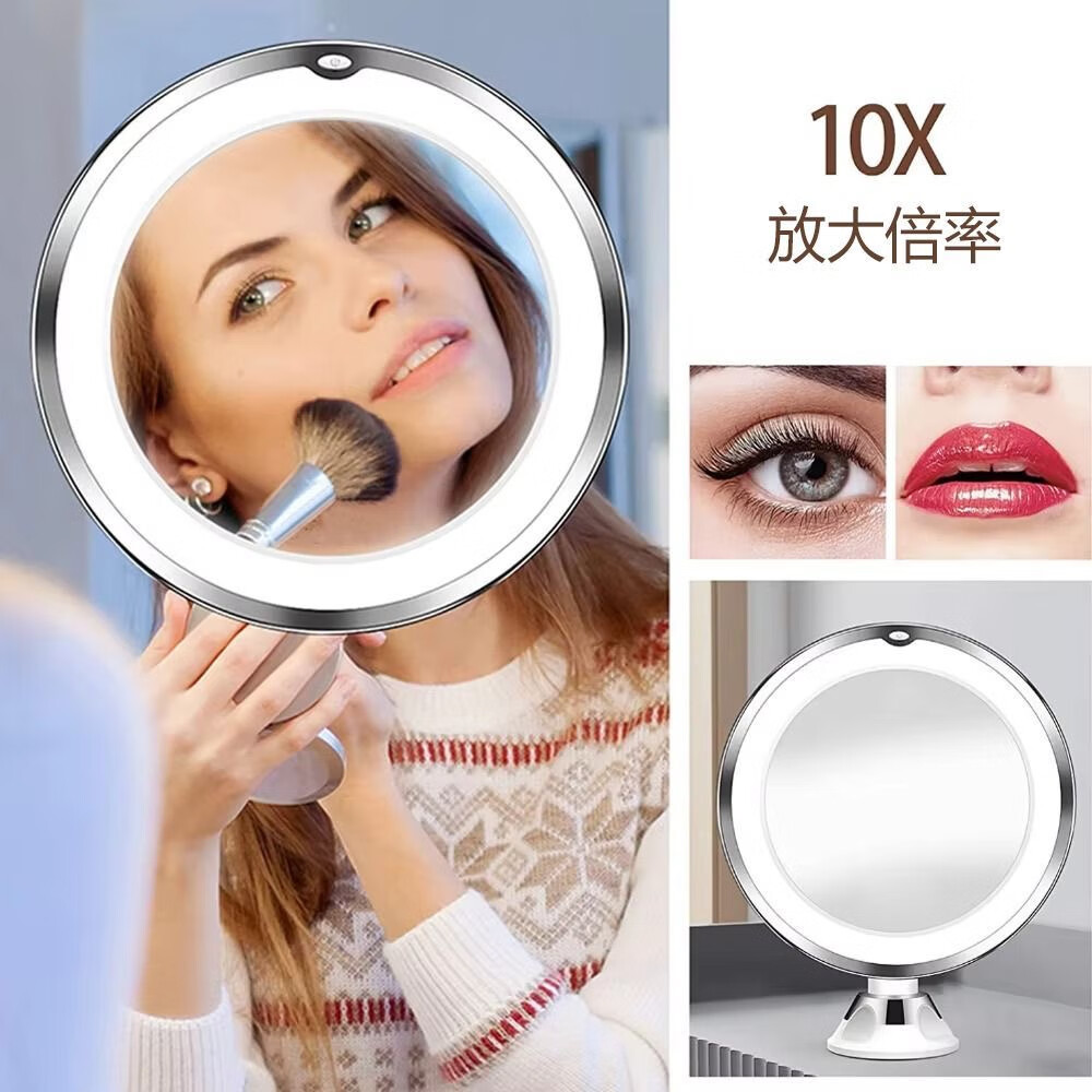 Bathroom makeup mirror LED punch-free wall-mounted folding 10x magnification with light 360-degree rotation bathroom glass desktop suction cup mirror acne squeezer long pole battery model 10x magnification + universal rotation + suction cup type