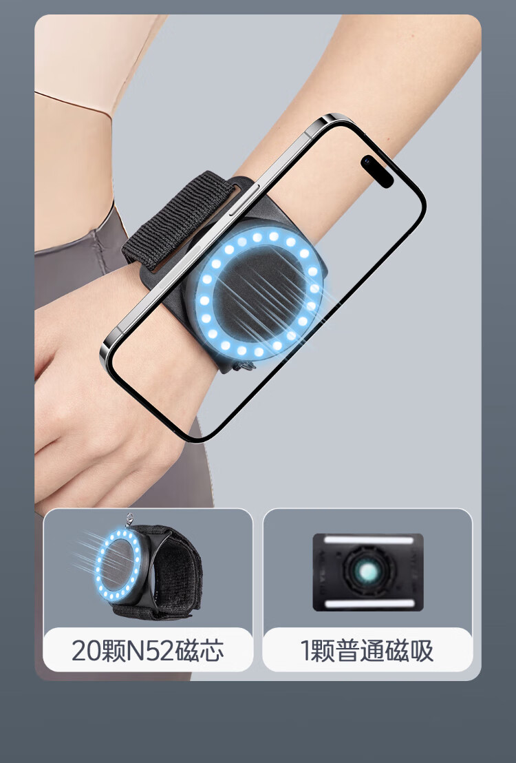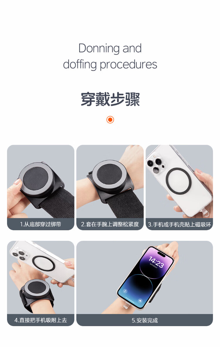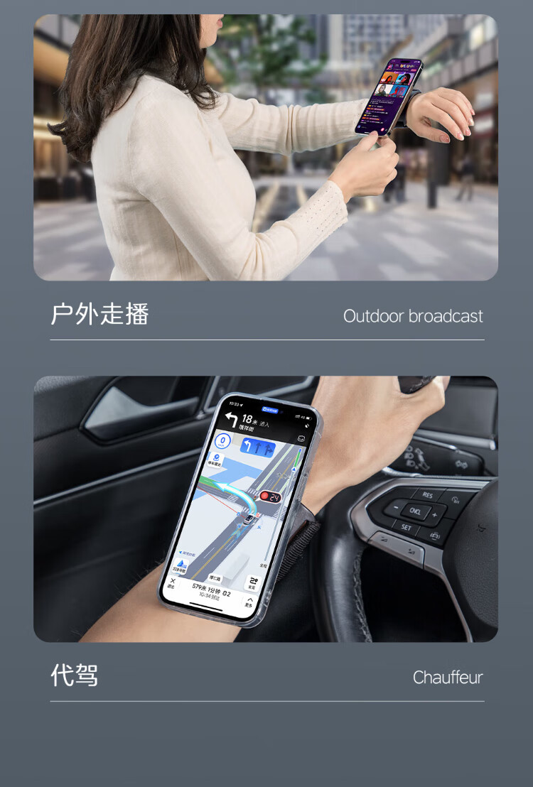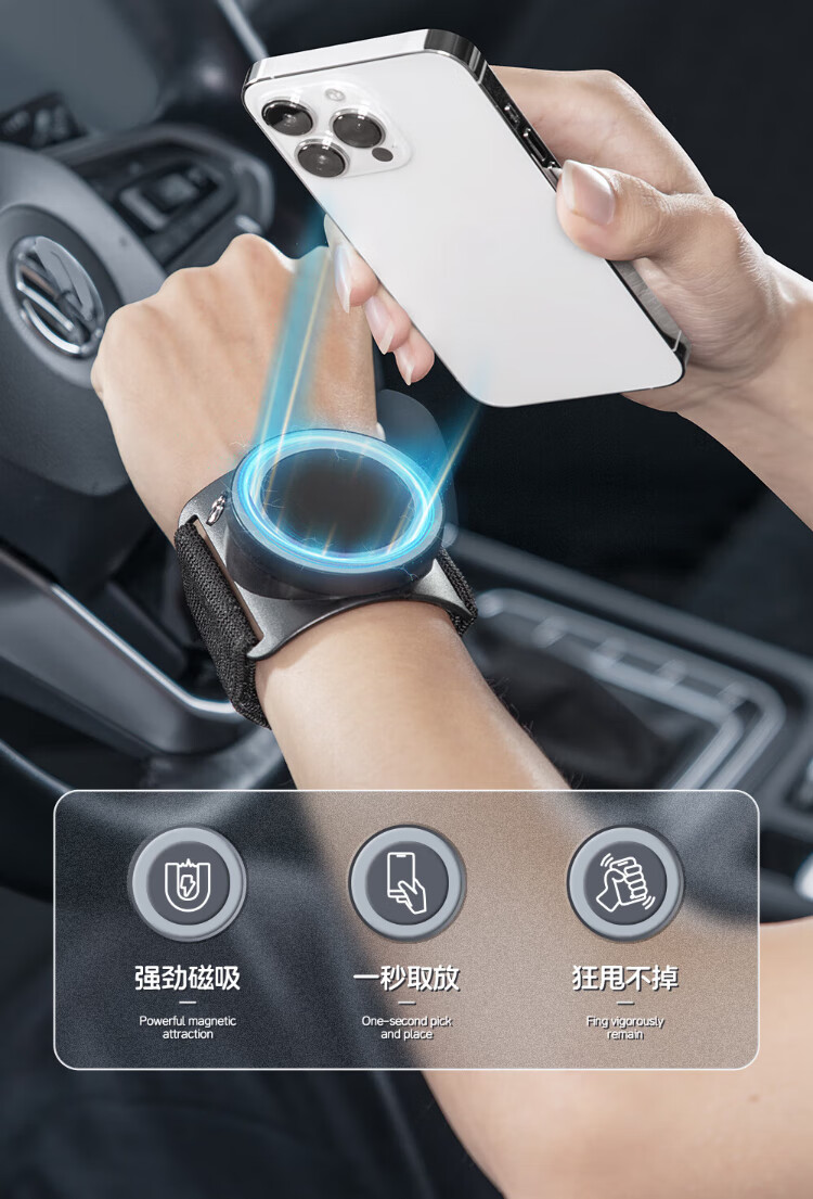 Mixsas Driving Wrist Mobile Phone Holder Live Broadcasting Mobile Phone Strap Magnetic Holder Driving Delivery Cycling Rotating Navigation Equipment Wristband Mobile Phone Holder Black-2 Pack