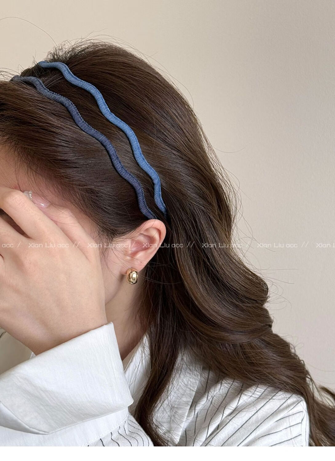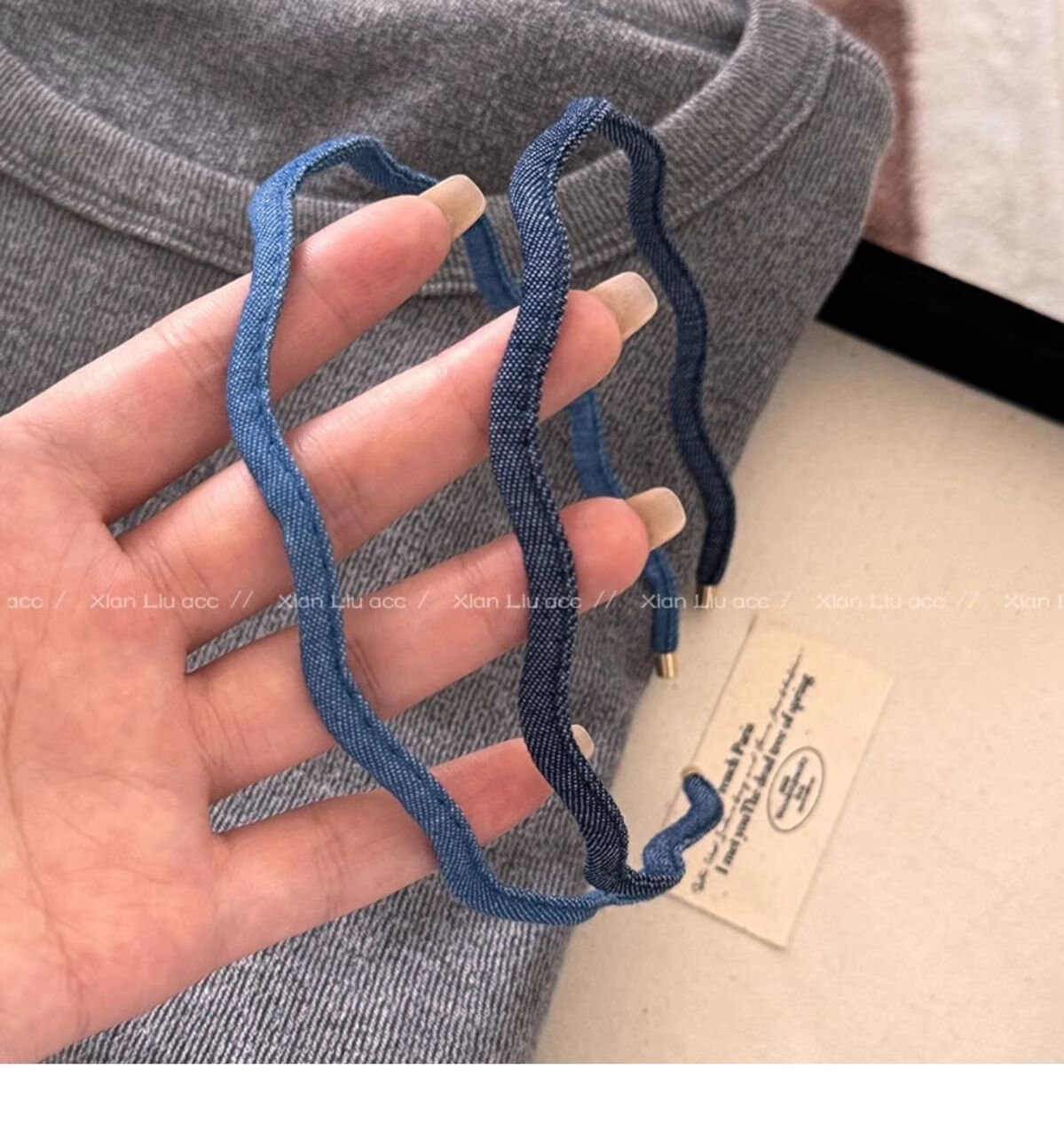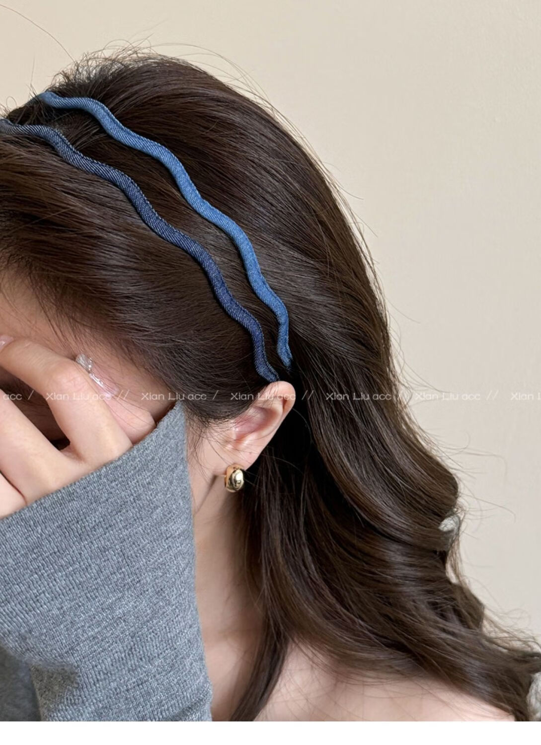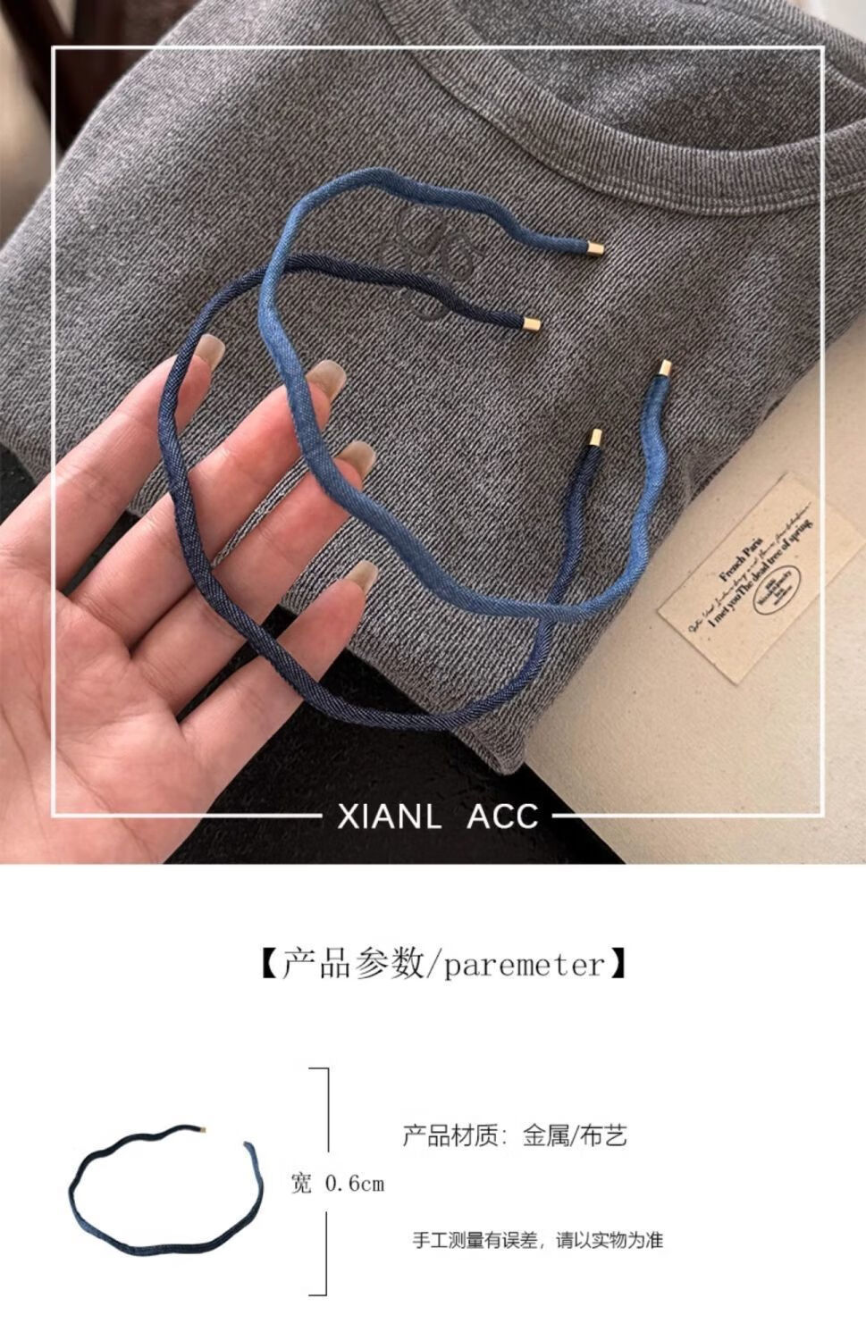 Headband Cowgirl Hairband 2025 Simple Temperament Hairband New Face Wash Advanced Going Out Headband Fashionable and Versatile Ultra-Fine Denim Wavy Hairband-Dark Blue