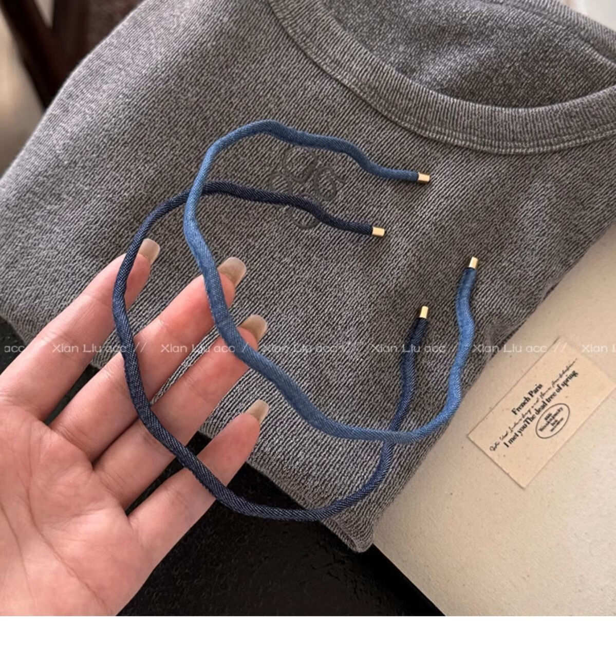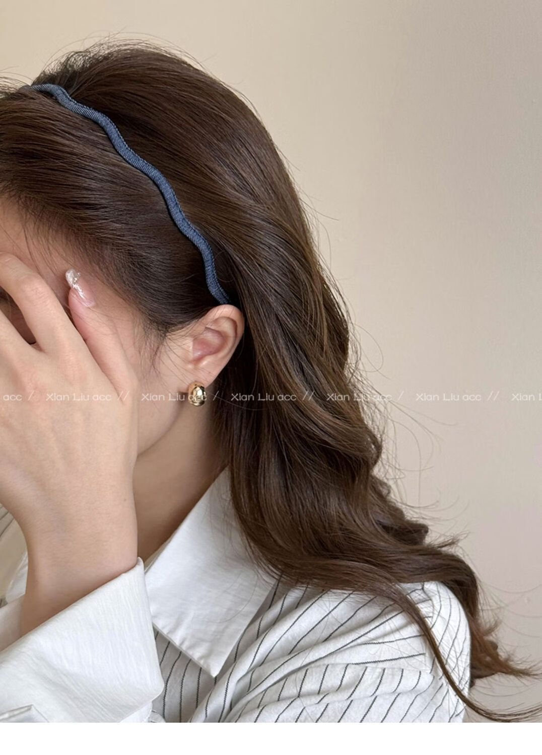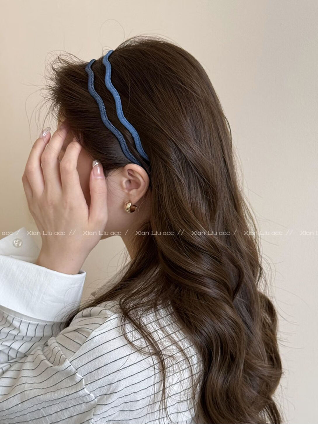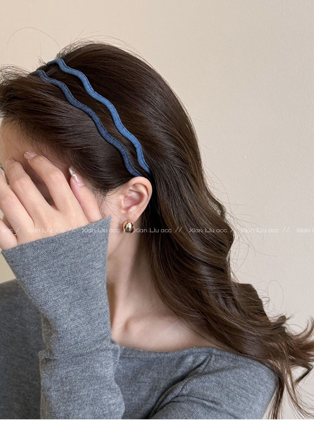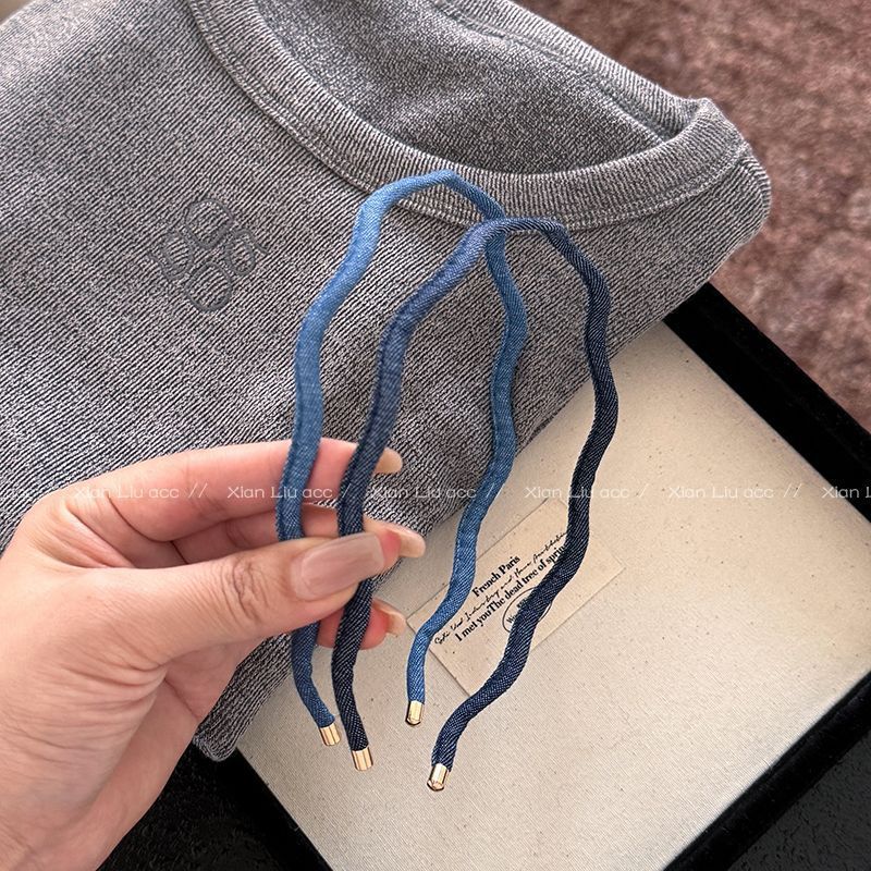 Headband Cowgirl Hairband 2025 Simple Temperament Hairband New Face Wash Advanced Going Out Headband Fashionable and Versatile Ultra-Fine Denim Wavy Hairband-Dark Blue