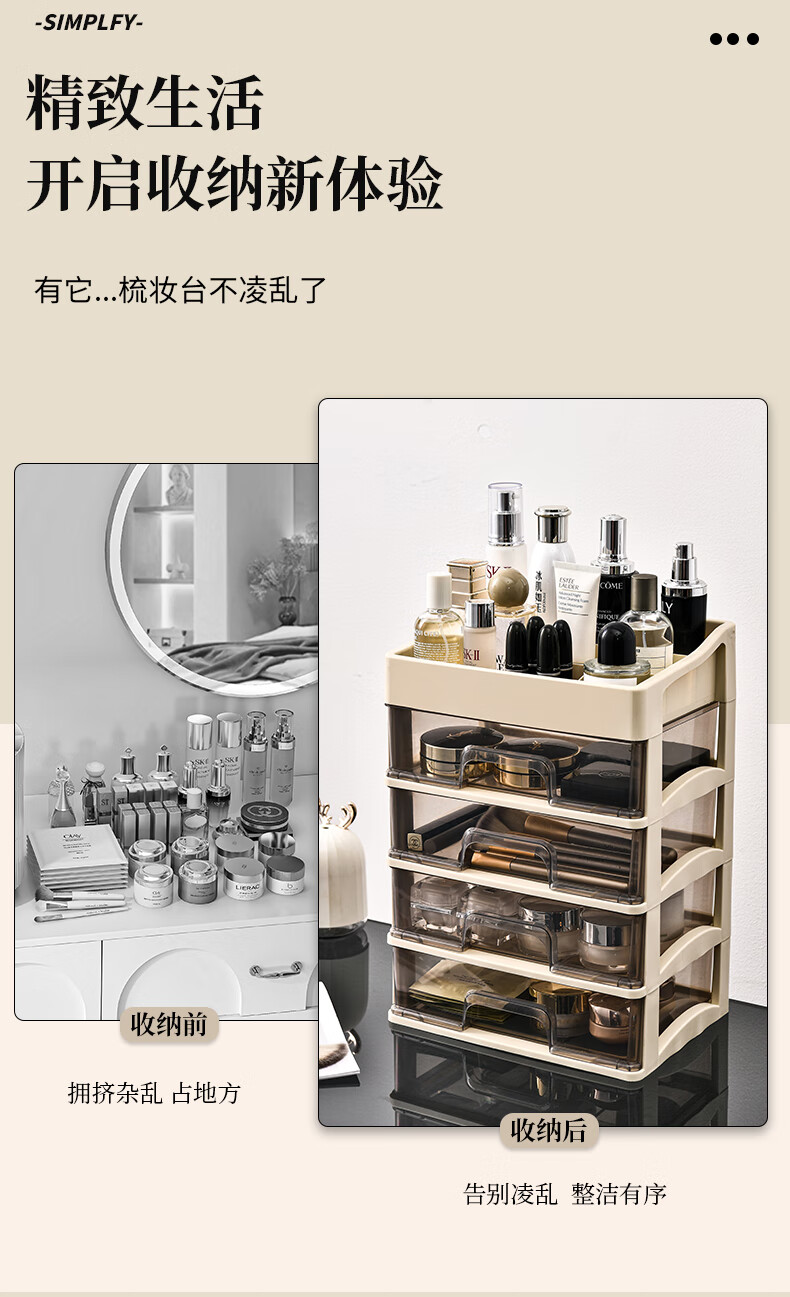 Cosmetic storage box, simple large-capacity drawer style desktop dustproof student dormitory office bedroom ins style five-layer four-drawer style 25.8*19*36cm
