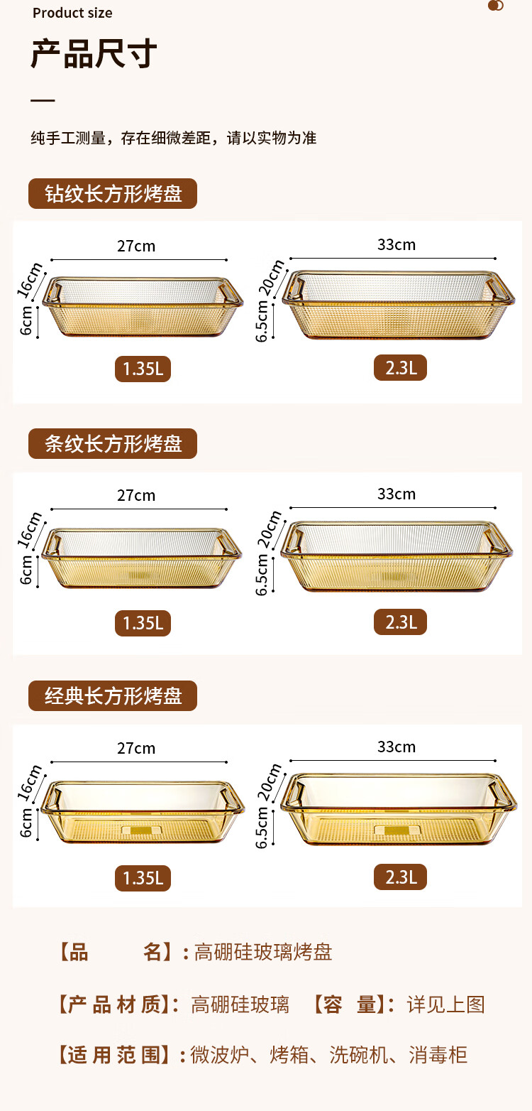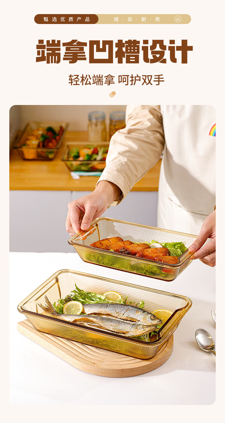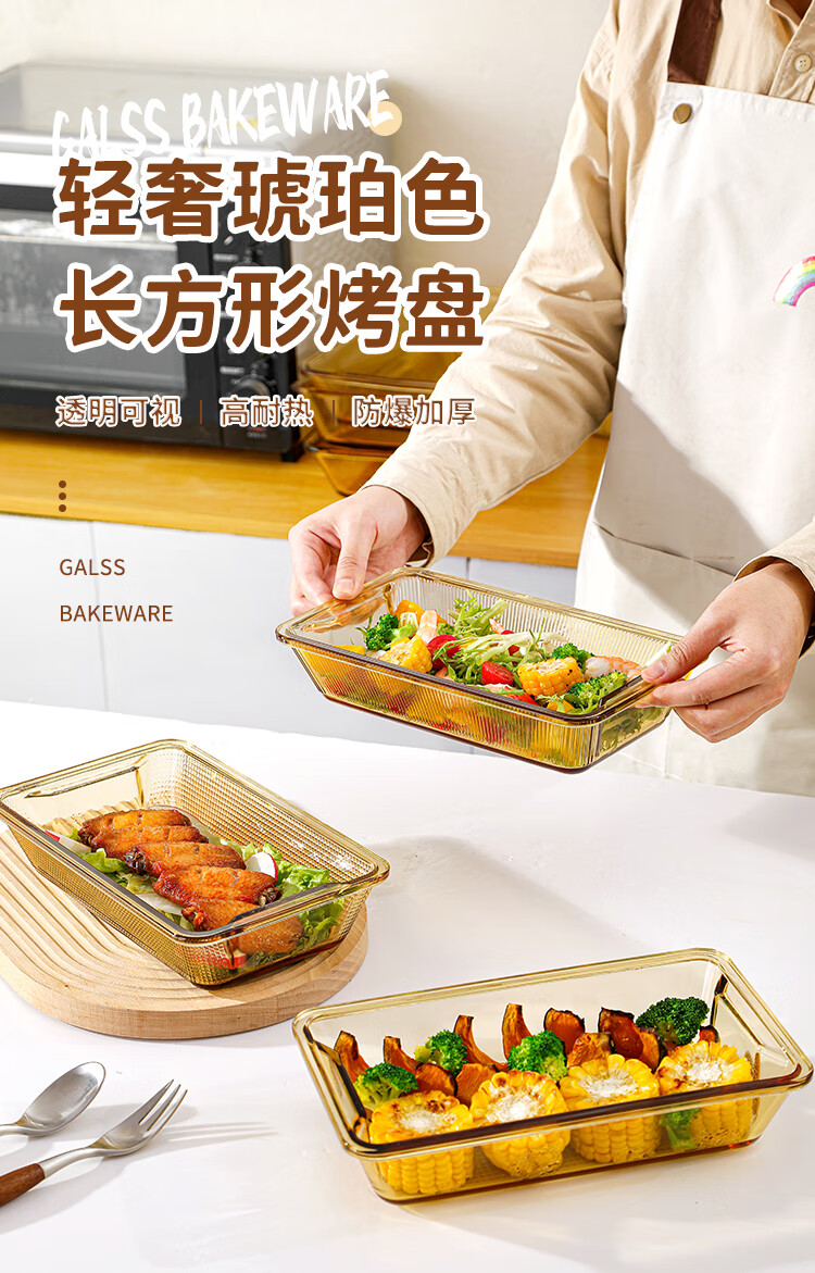 Trefic high borosilicate glass heat-resistant baking pan oven microwave heating special utensils household rectangular steamed fish baking utensils rectangular baking pan (light body) 1.35L