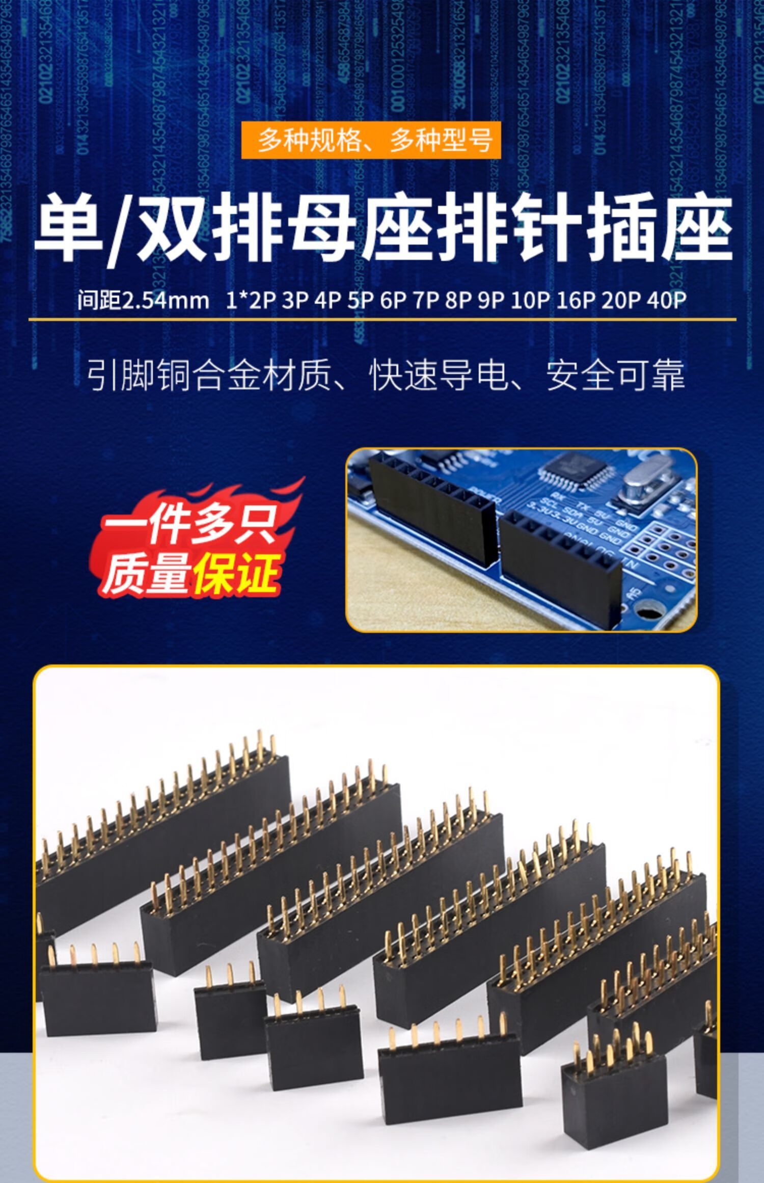 Zejie single row female socket 2.54mm pin header socket double row female 1*2P3P4P5P6P7P8P9P10P16P20P40P 8P single row (20 pieces)