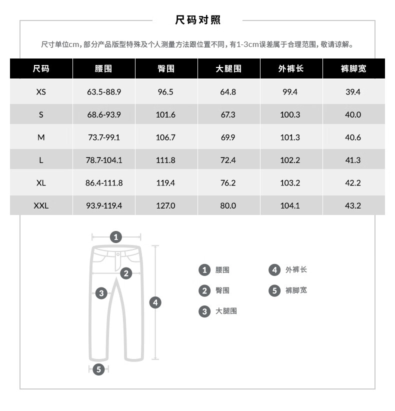 Outseam (cm) 99 cm 101.5 cm 104 cm 106.5 cm 109 cm