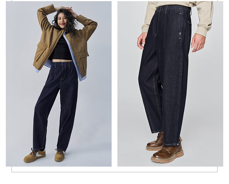 Lee Zhang Linghe endorses 25 autumn new elastic waist loose washable denim balloon pants for men and women trendy washable XL