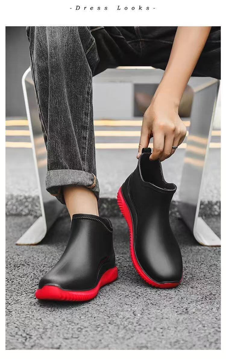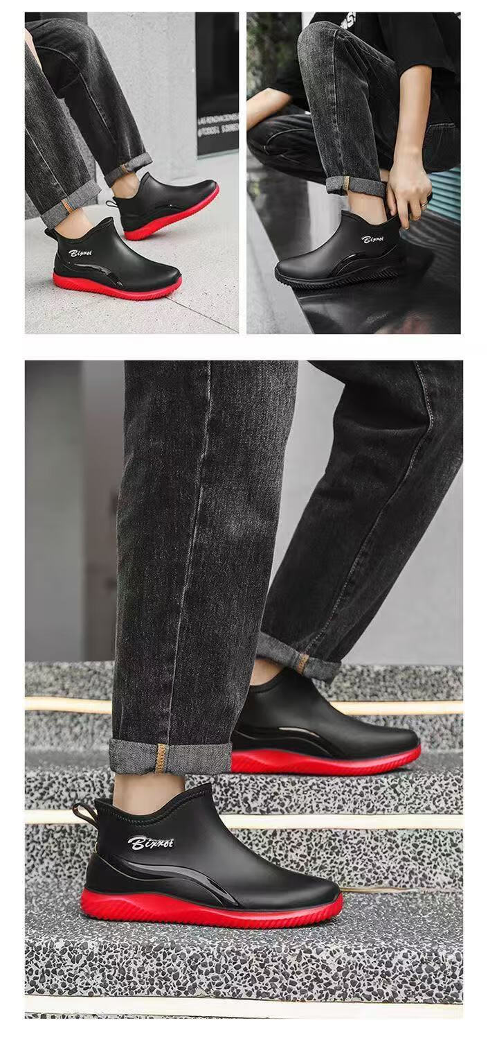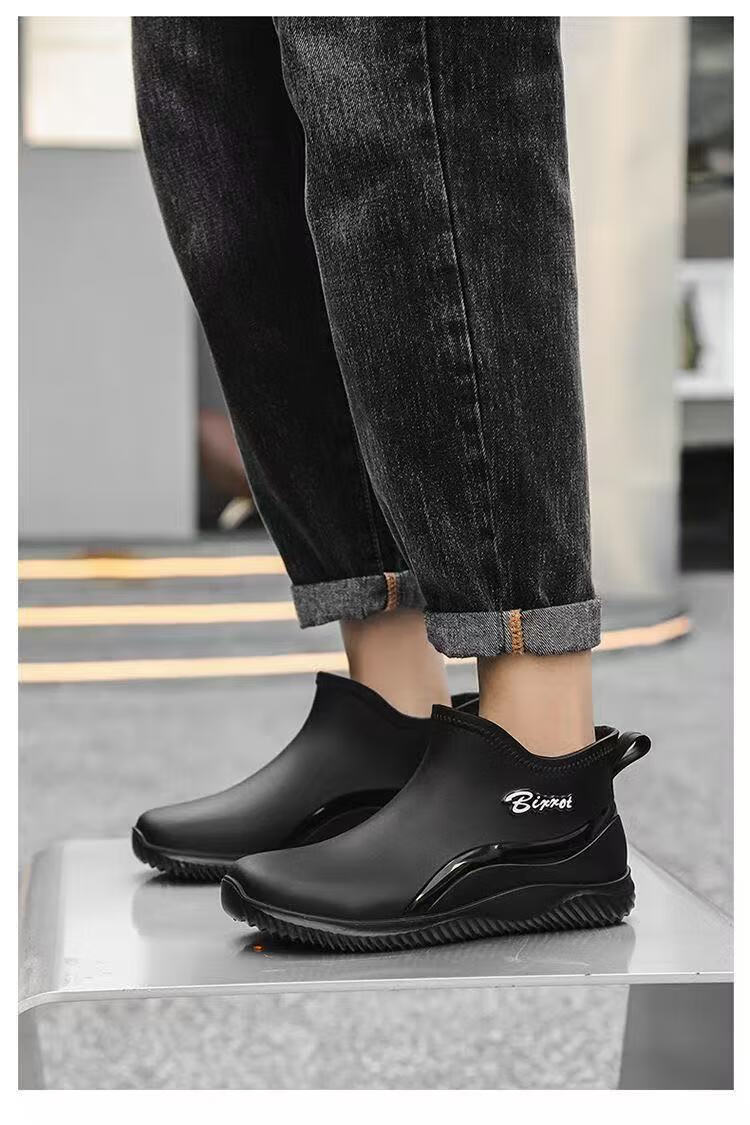Anti-slip rain boots men's autumn and winter short-tube wear-resistant waterproof shoes kitchen wading construction site labor protection wear-resistant soft-soled rain boots men 8817 black 41