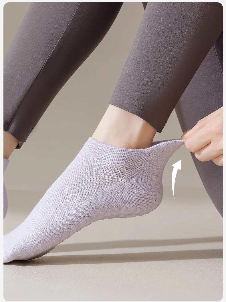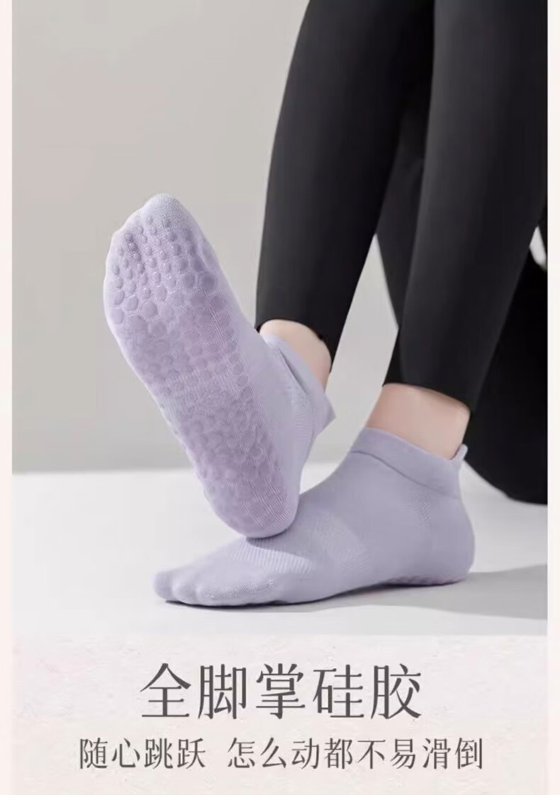 Return to Li OEM Spring and Summer Yoga Socks Cotton Non-Slip Silicone Indoor Fitness Pilates Socks for Women 3 Pairs Smoke Gray One Size 35-41