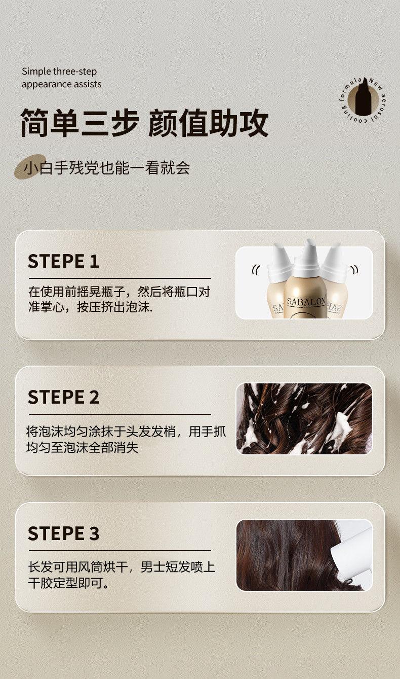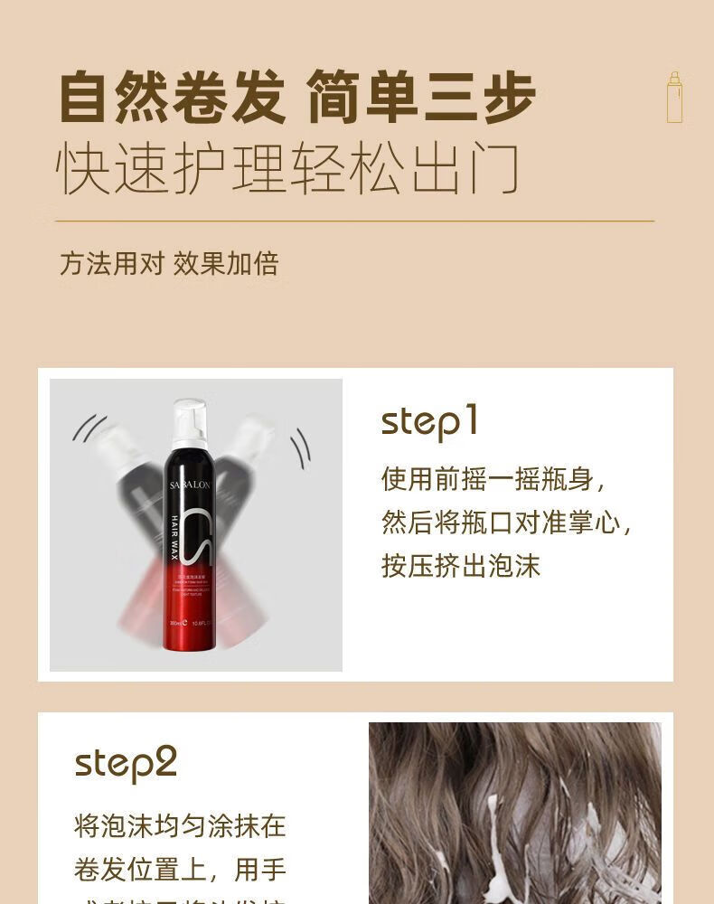 Saberon foam hair wax elastin curly hair moisturizing non-stiff hair fluffy curl protector women's wool curl styling mousse single bottle (mousse) foam hair wax