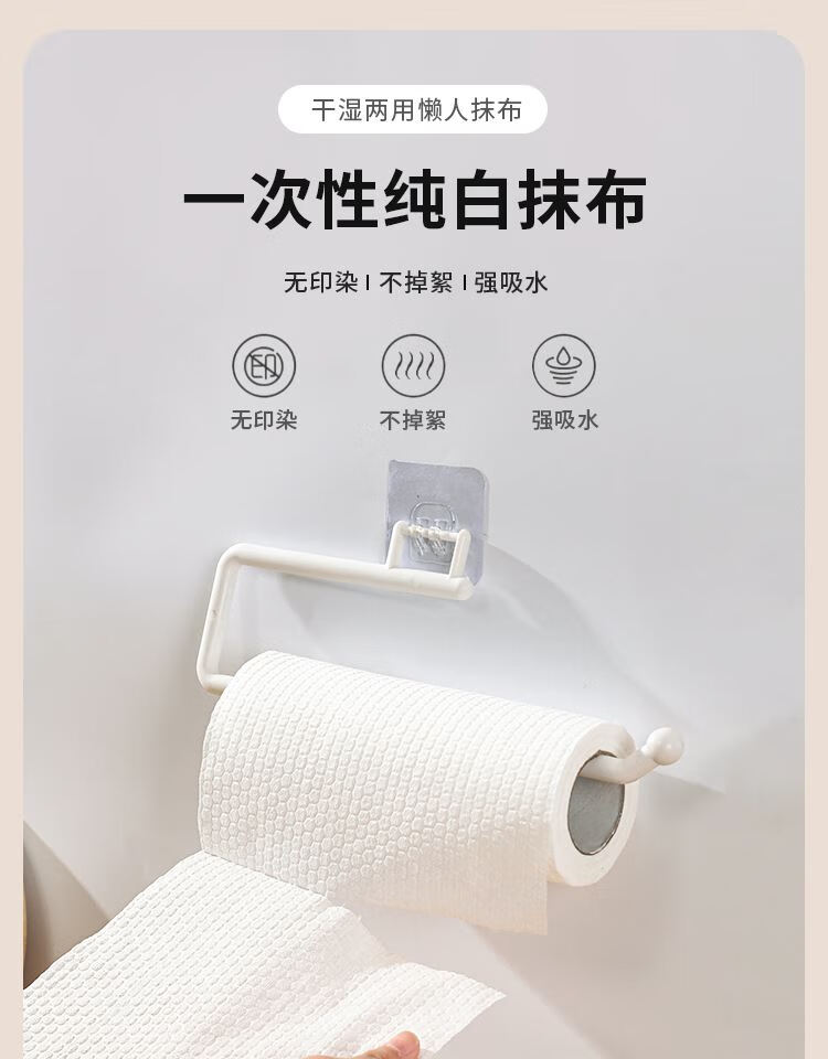JCZS German kitchen paper disposable dishcloth rag lazy rag wet and dry cleaning kitchen paper absorbent pure white 1200 pieces + rag hanger