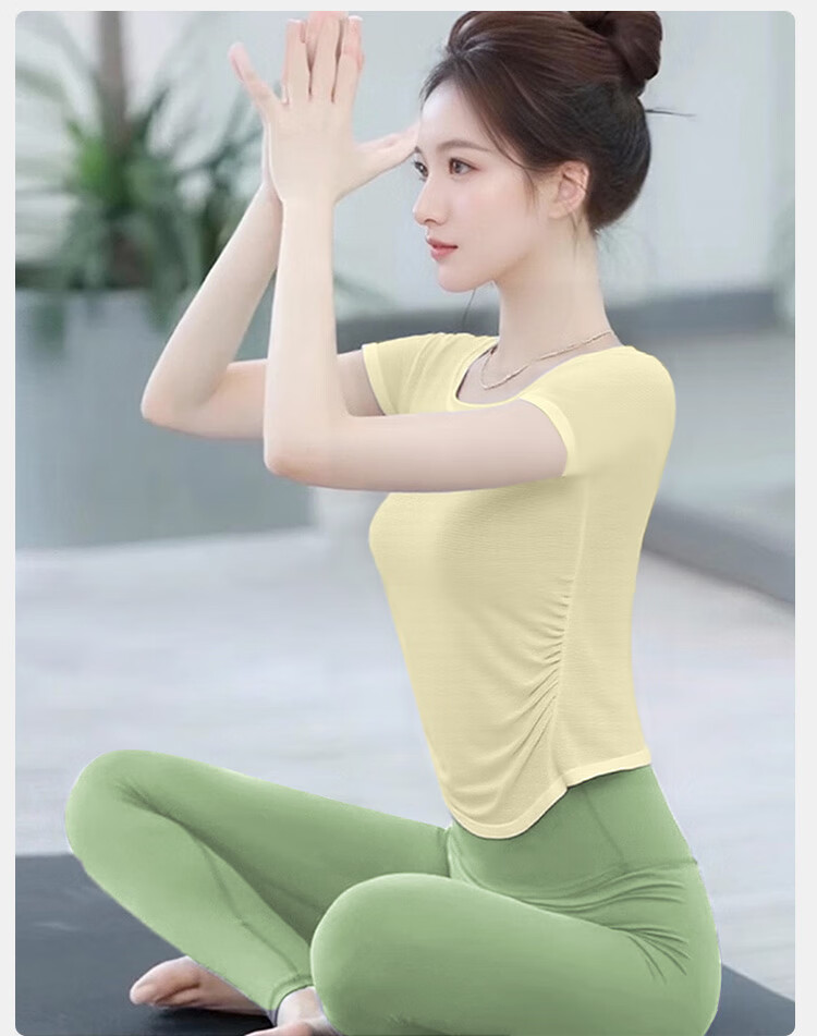 Shuangxiu super nice short-sleeved yoga clothes for women 2025 new high-end suit Pilates beautiful fitness sports tops cheese yellow top S 80-95