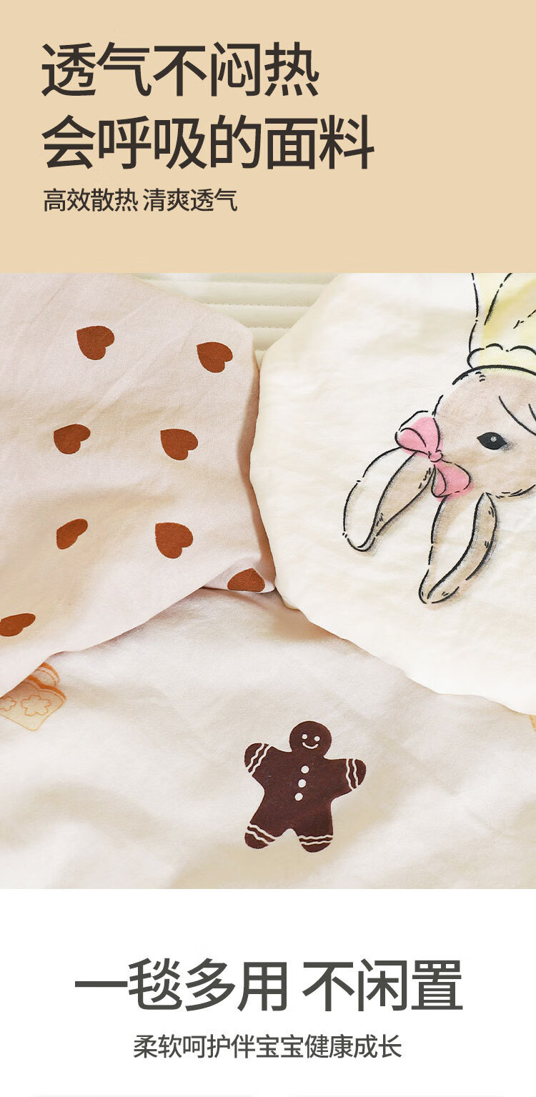 Baby blanket newborn pure cotton type A double-sided bean fleece cartoon multifunctional small blanket kindergarten quilt multifunctional beanie comfort blanket - full of love 100*110cm