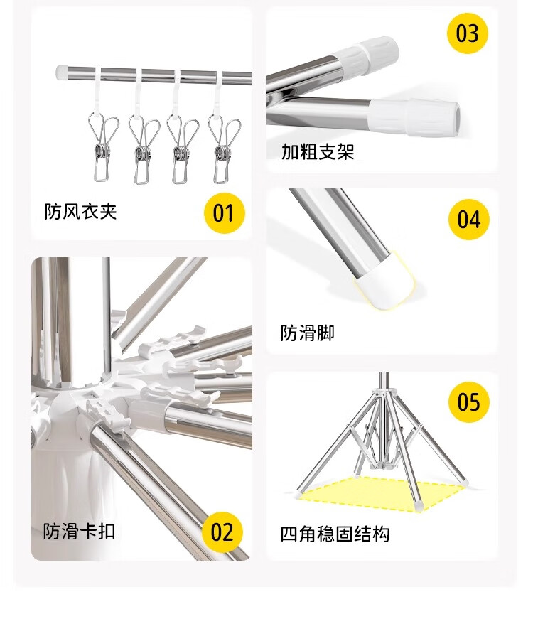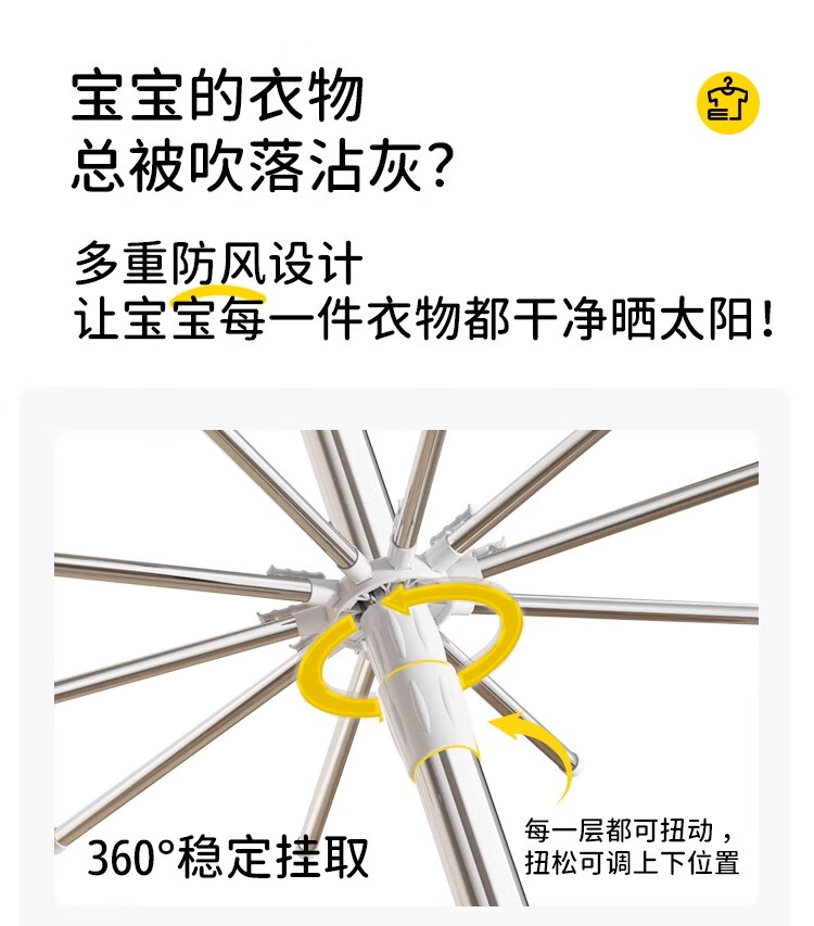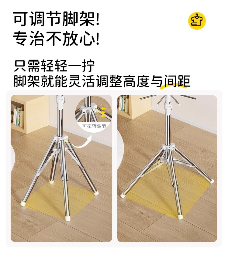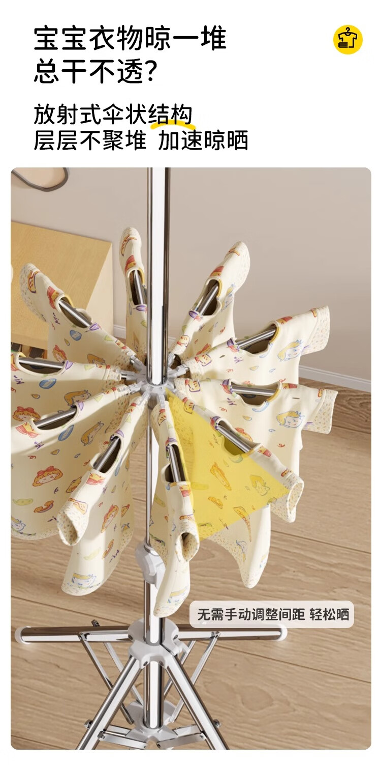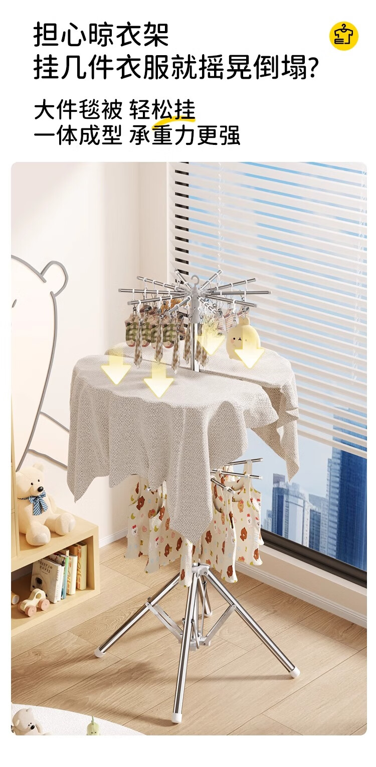 Hotata clothes drying rack floor-standing baby clothes hanger baby special folding drying rack stainless steel multi-functional windproof mobile clothes hanger three-layer stainless steel material & free 20 windproof clips