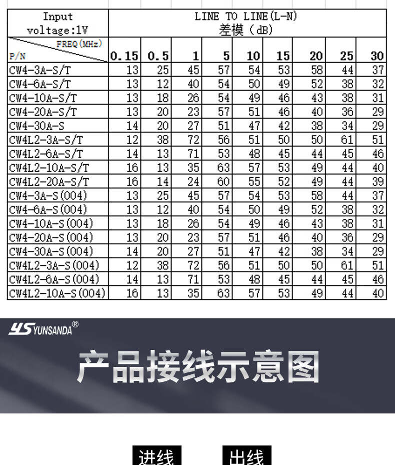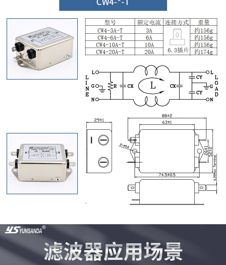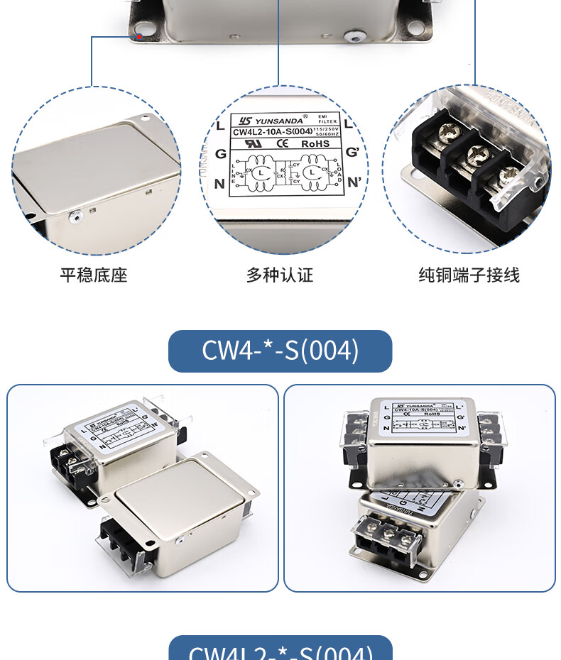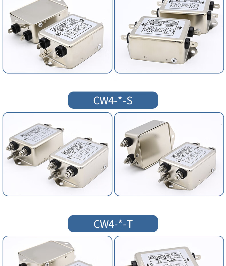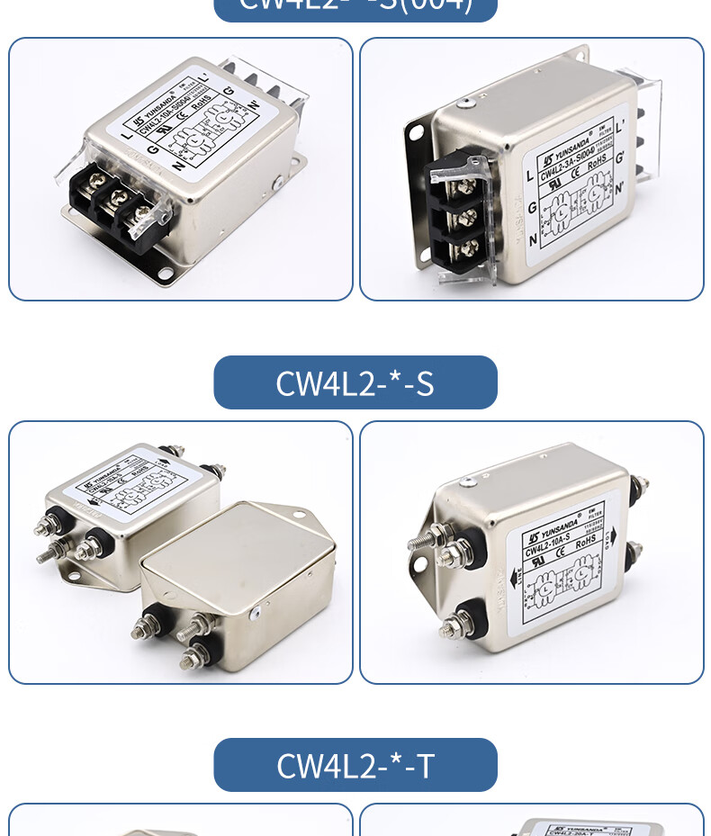 YUNSANDA single-phase 220v AC electromagnetic interference purifier EMI power filter CW4L2-10A-S (004) CW4L2-6A-S (004) bipolar single-phase 220V filter