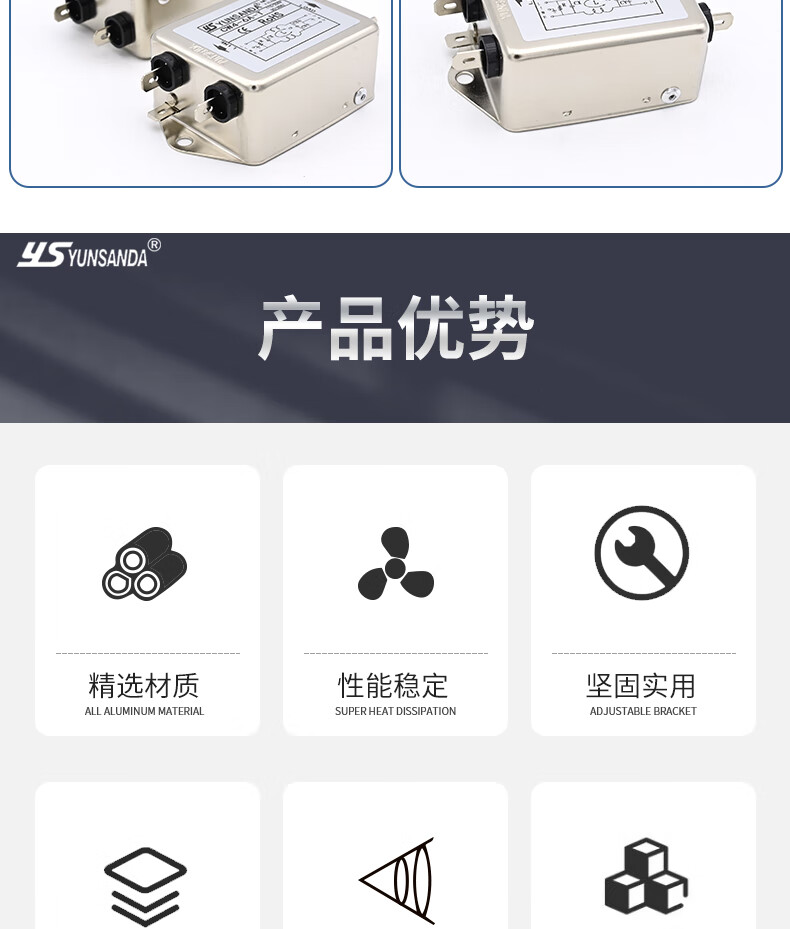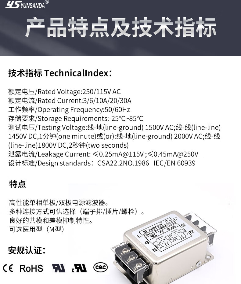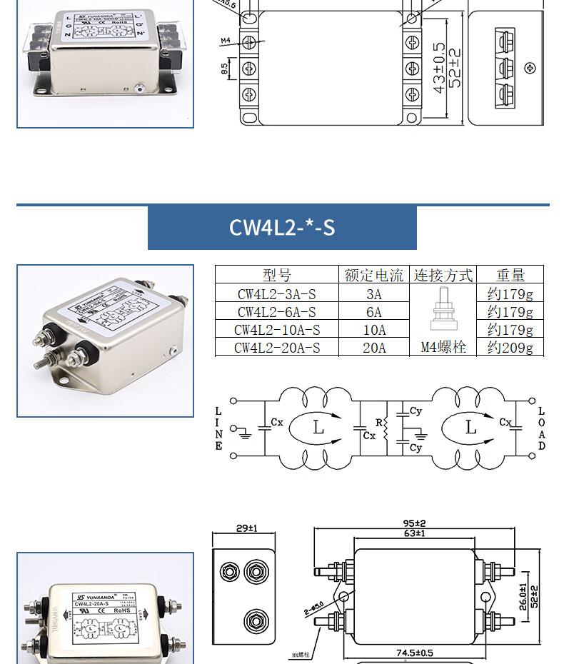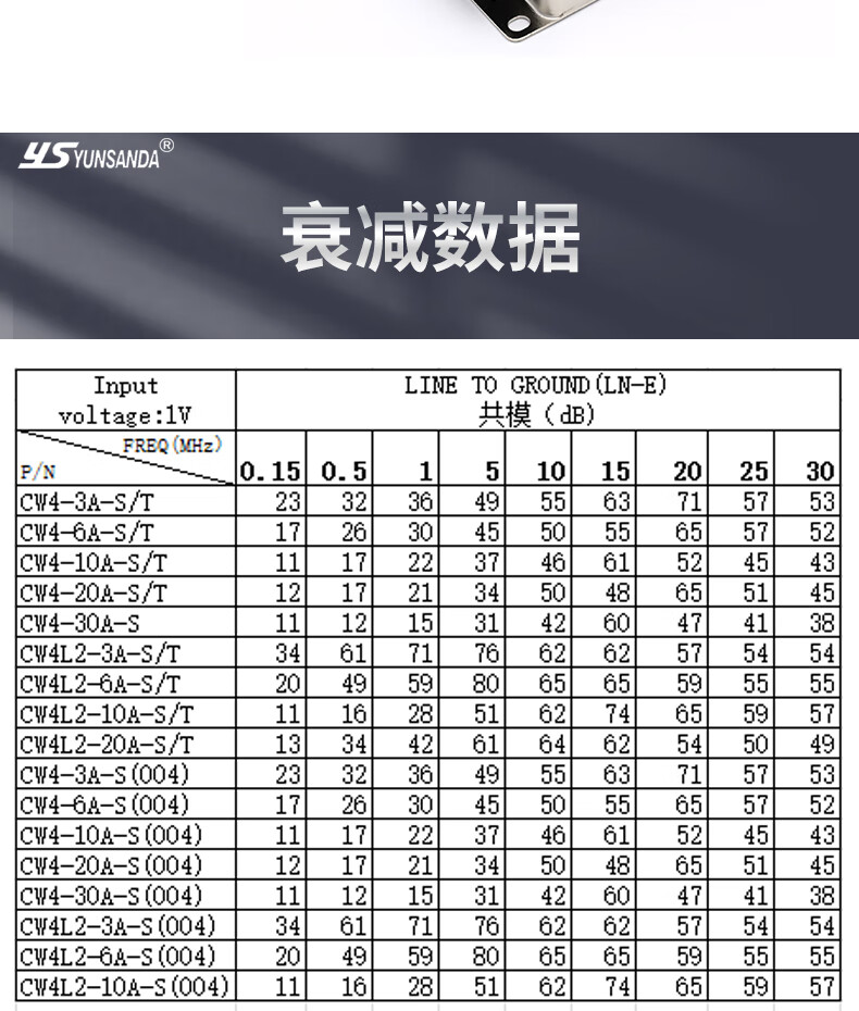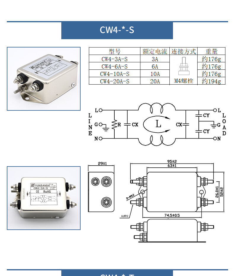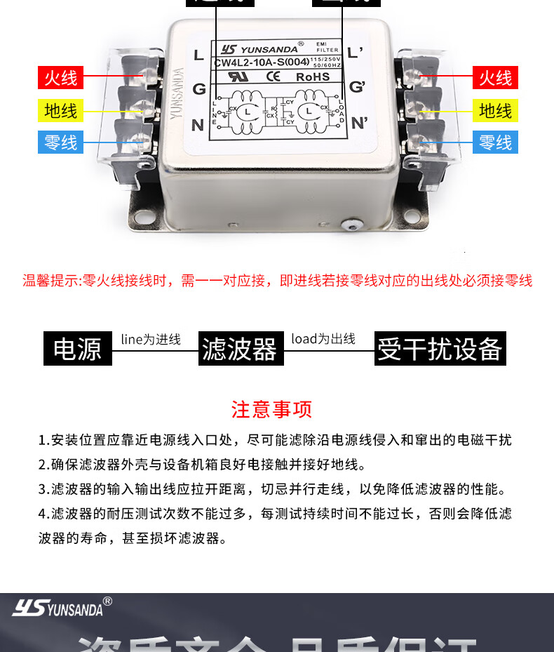 YUNSANDA single-phase 220v AC electromagnetic interference purifier EMI power filter CW4L2-10A-S (004) CW4L2-6A-S (004) bipolar single-phase 220V filter