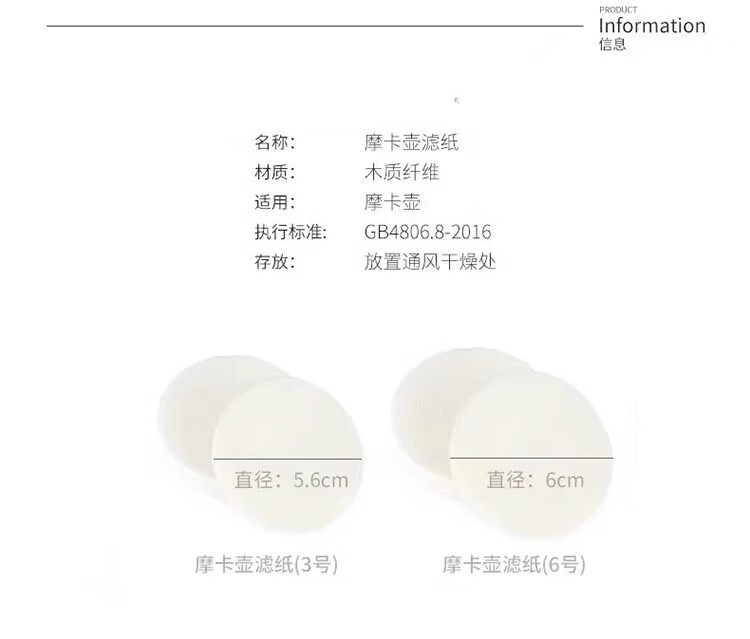 Round powder bowl coffee filter paper Moka pot secondary water filter paper Italian coffee machine handle special universal original color 300 sheets 60MM