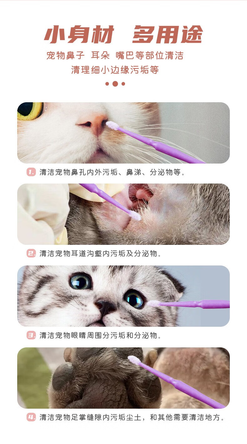 Pet cleaning nostril tear line cotton swabs 100 pieces dog and cat ear cleaning tool cotton swab nostril nasal mucus cleaning cotton swab bottle 100 small purple