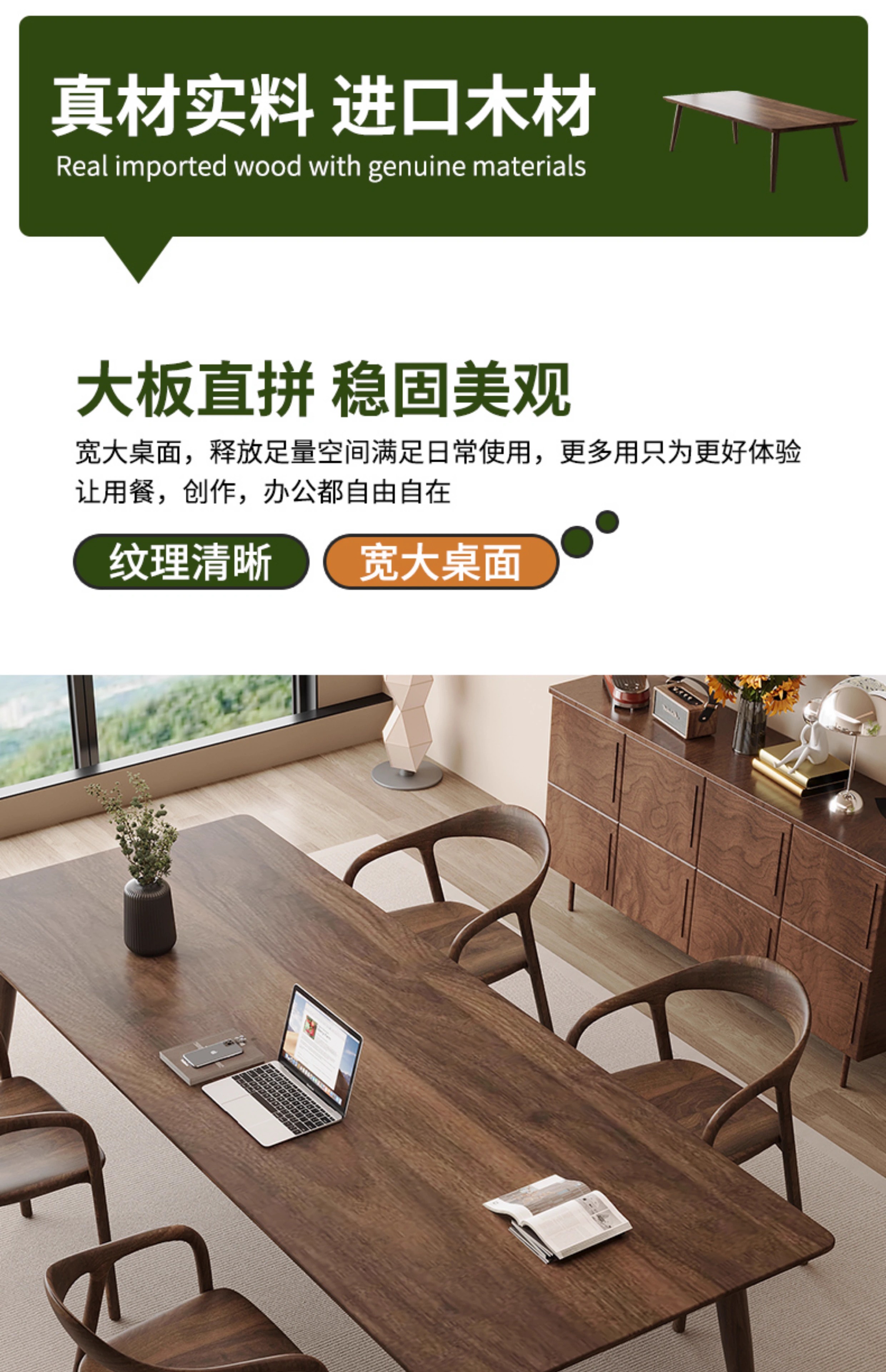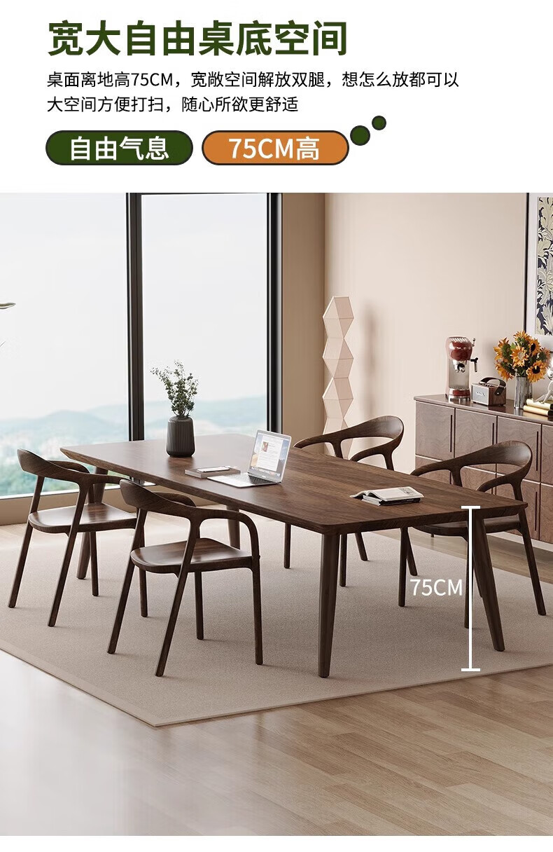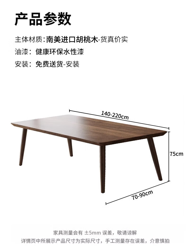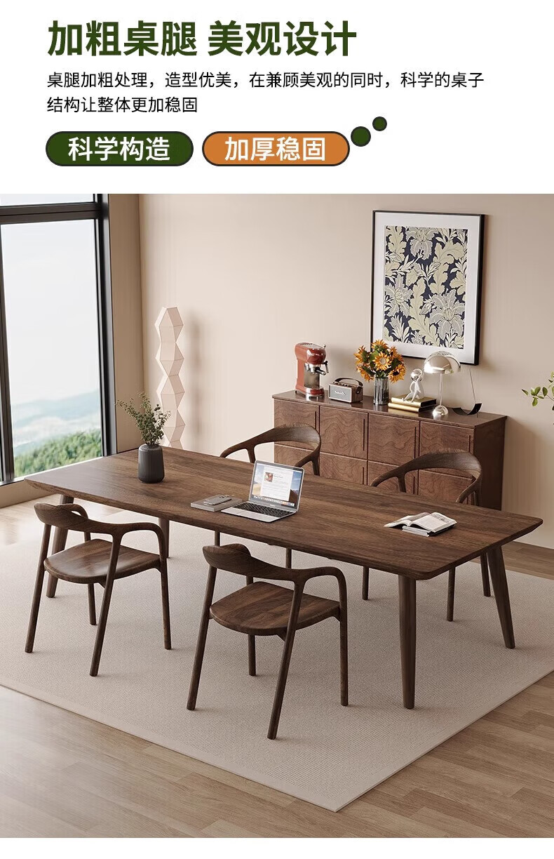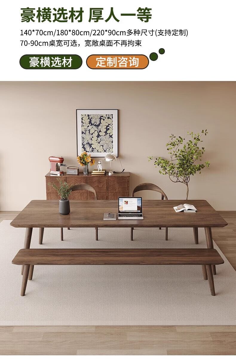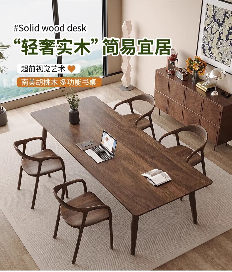 Sands Duke modern and simple South American black walnut to the living room large desk home multi-person solid wood learning and writing desk New Zealand pine 200*90*75 thick 4.5cm