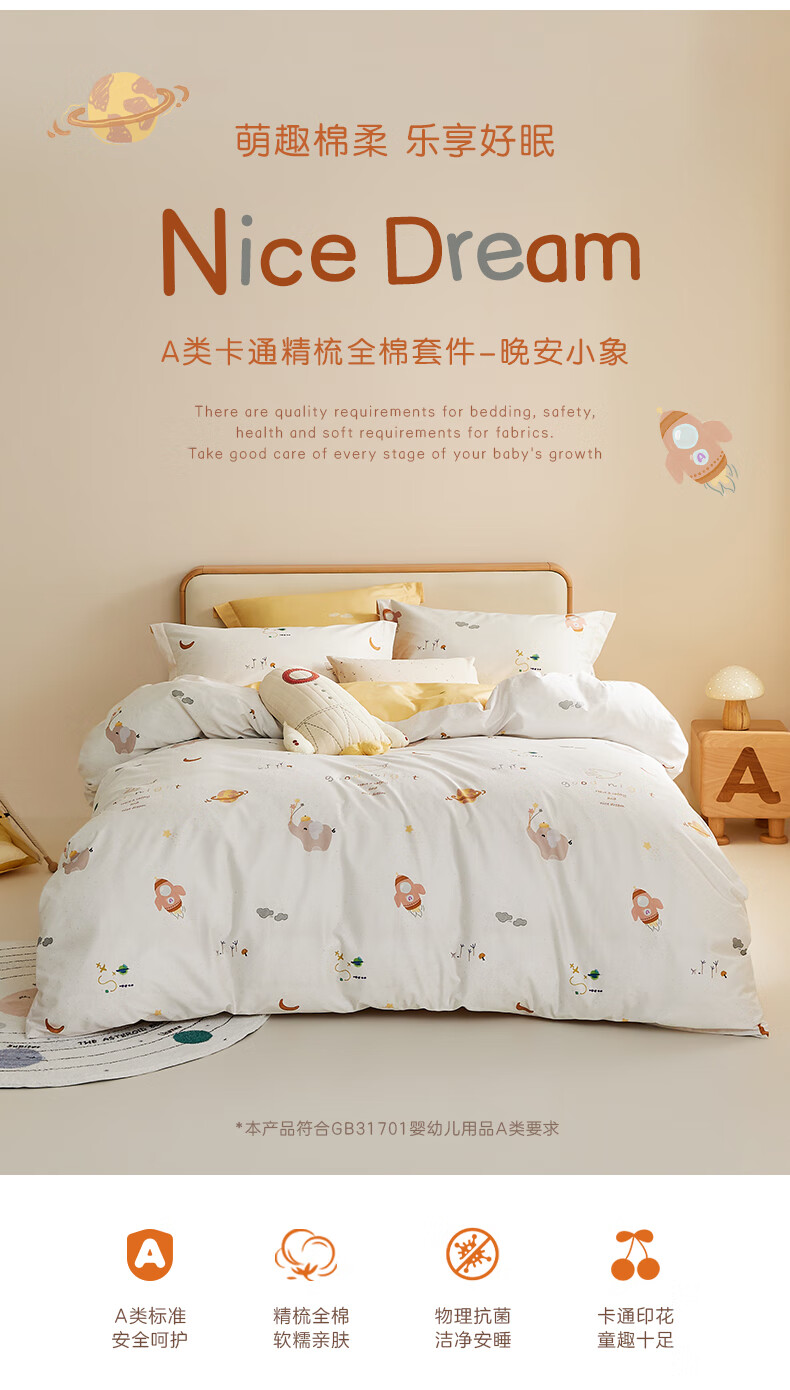 Luolai Home Textiles Cotton Quilt Cover Single Piece Cotton Quilt Cover Flower Children's Student Dormitory Forest Fairy Tale Single Quilt Cover Class A Cotton Antibacterial 150cm*215cm