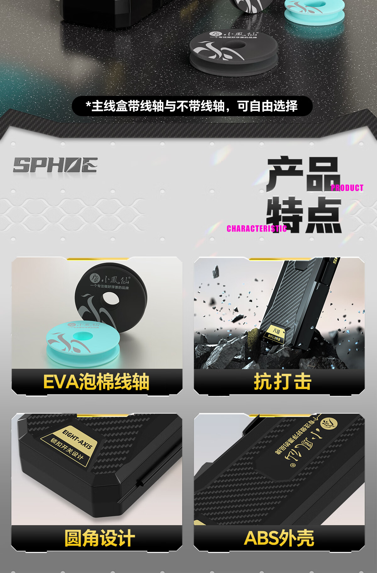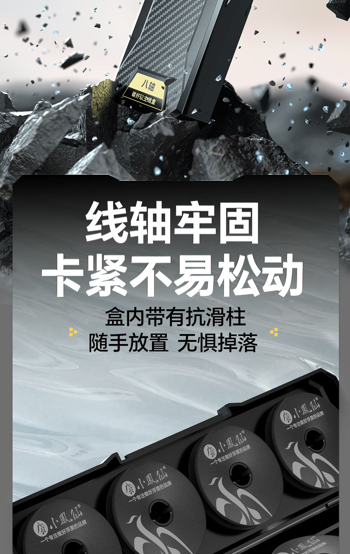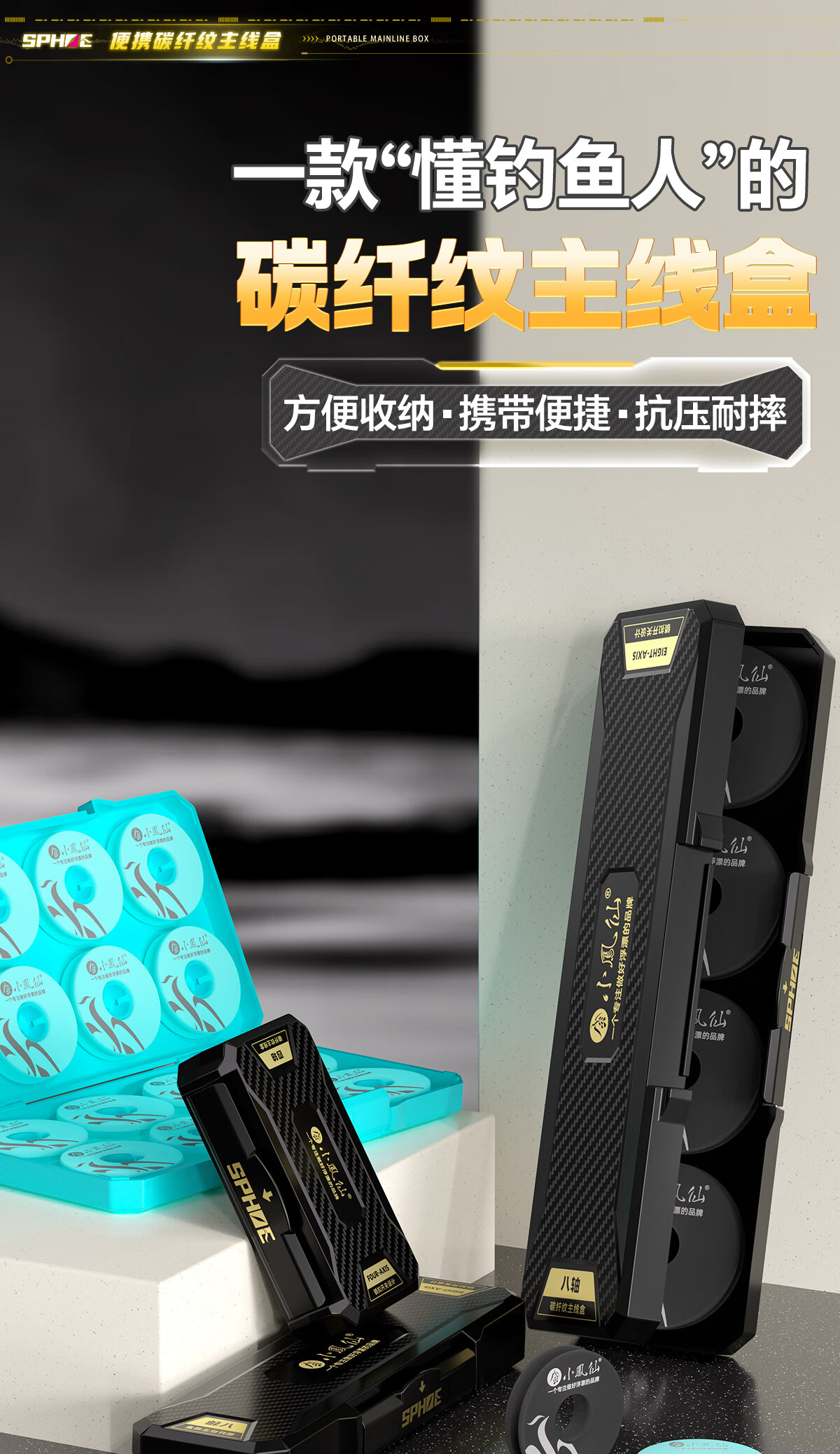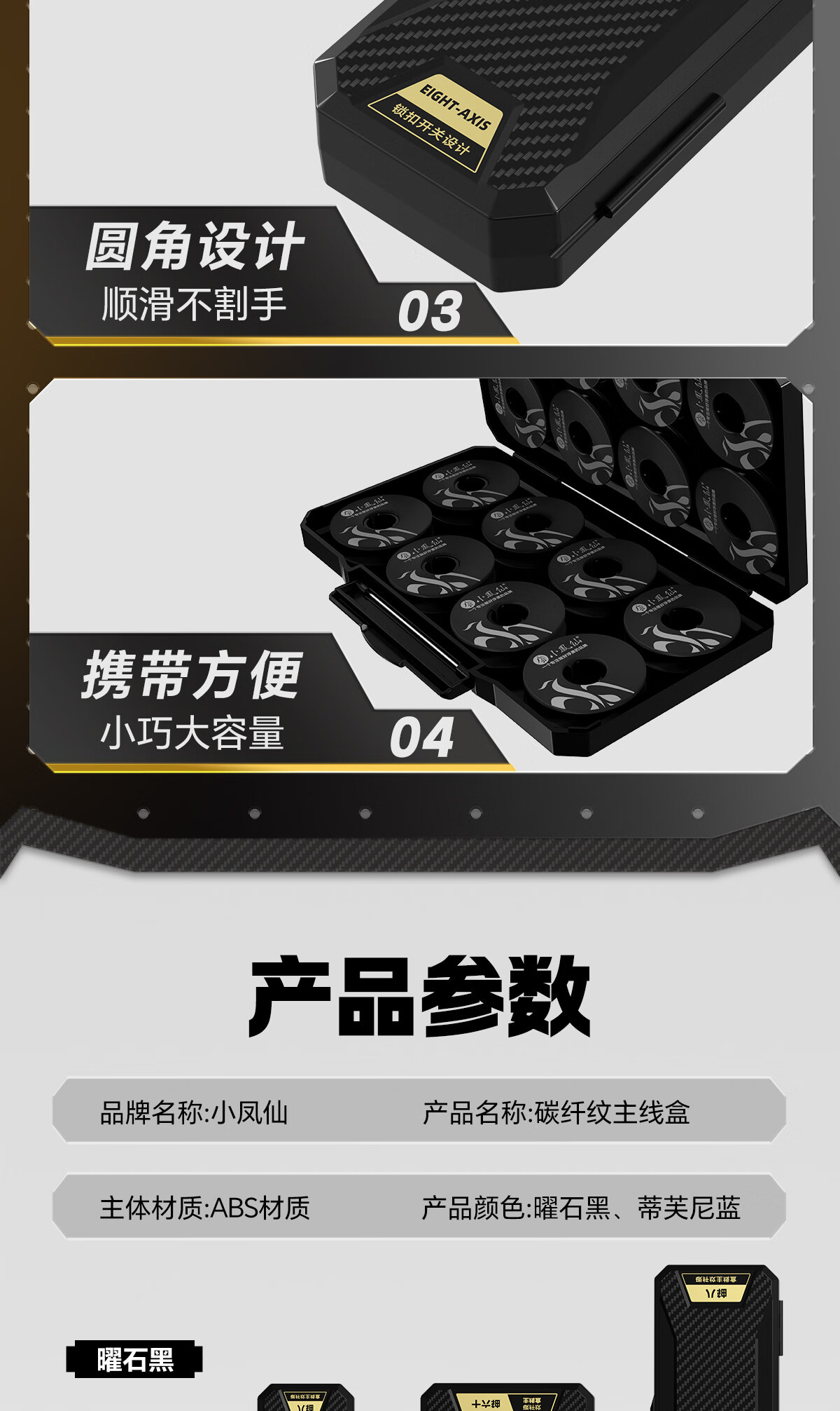 Xiaofengxian carbon fiber pattern main line box large-capacity fishing line group fishing supplies multi-functional sub-line box fishing line storage box fishing gear large 8-axis without shaft black with lock line group storage box