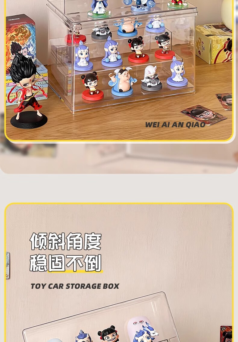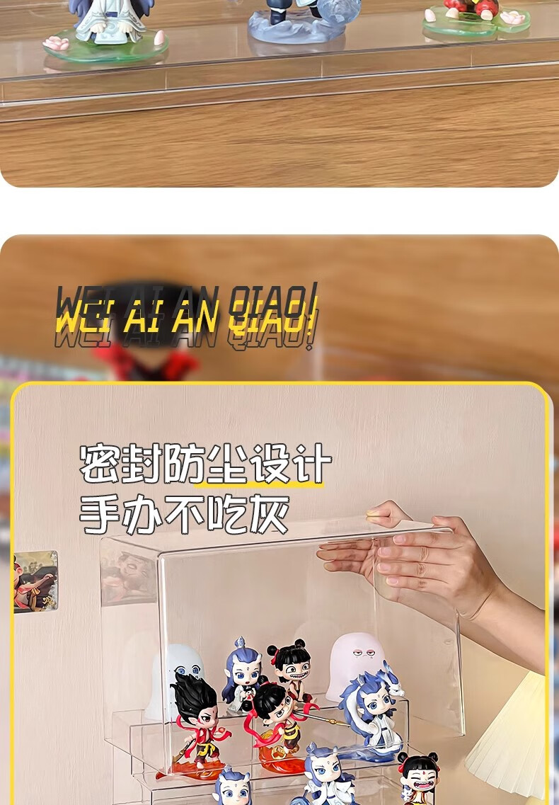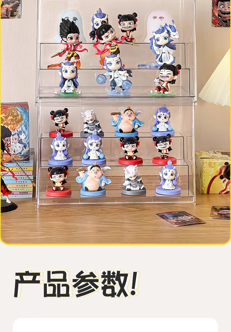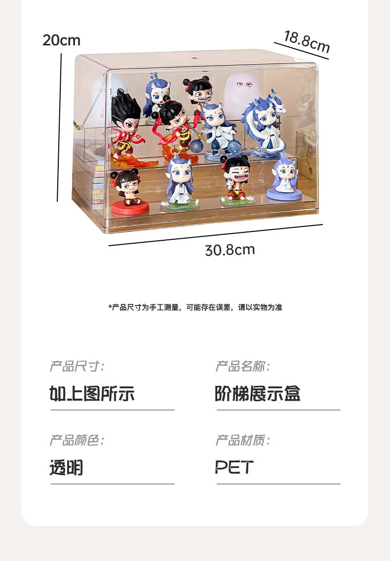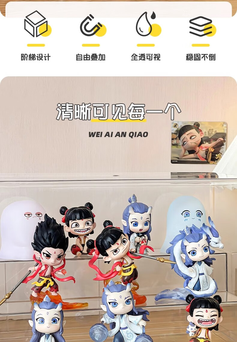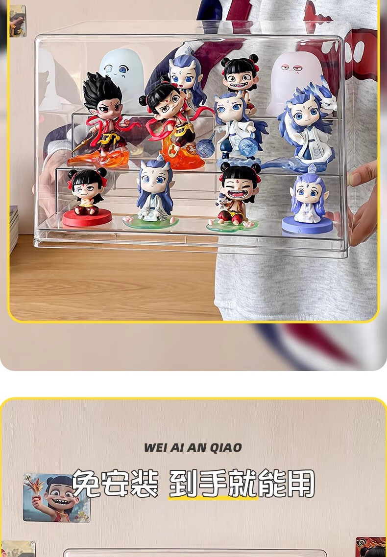 Wei Nezha Figure Display Box Acrylic Transparent Bubble Mart Nezha Two Blind Box Ornament Doll Dustproof Storage Cabinet Cream Color Large Three-Layer Ladder Display Stand No Installation and Ready to Use Out of the Box