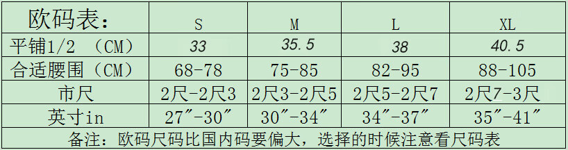USA(inch) 28-30 30-32 32-34 34-38 38-42