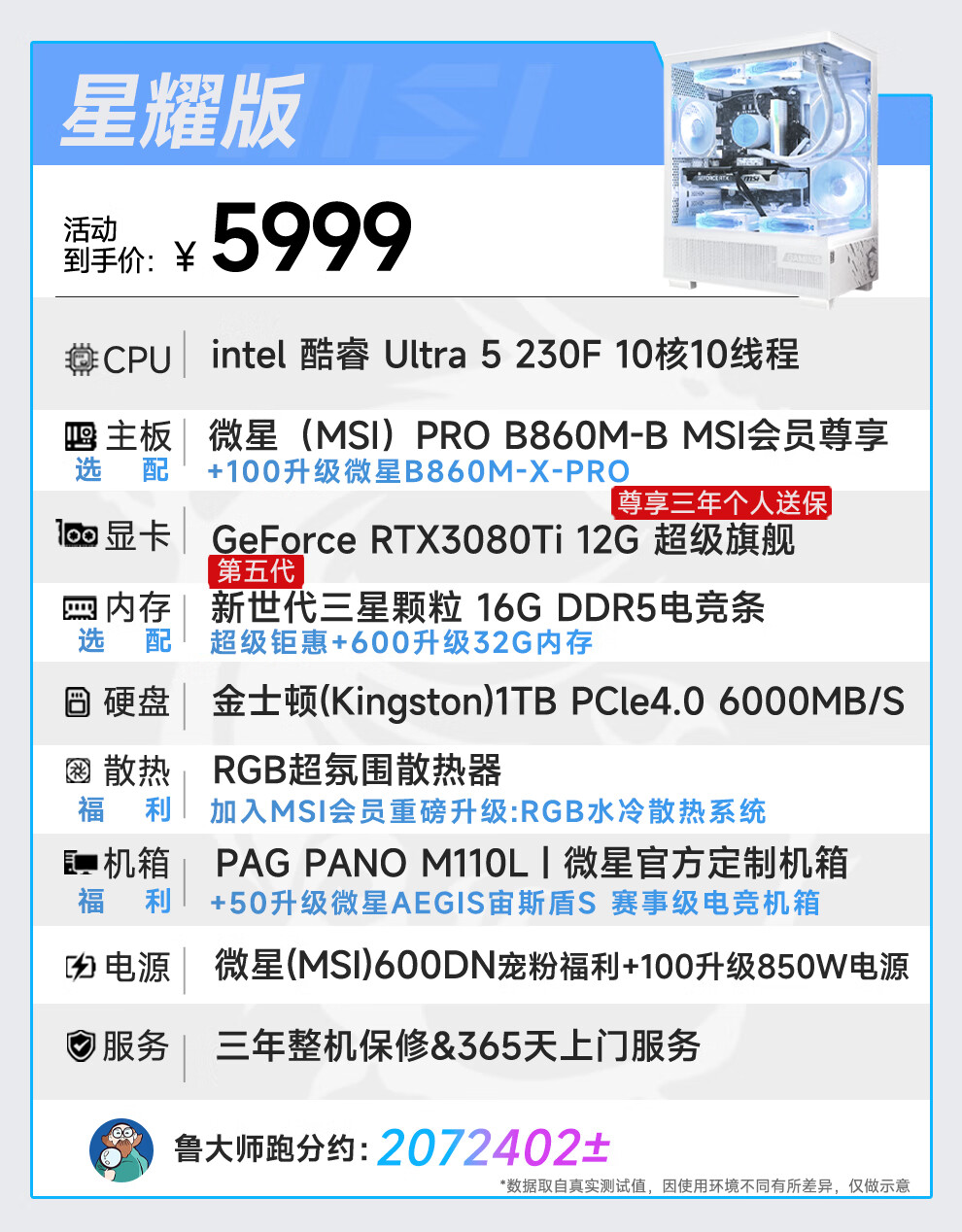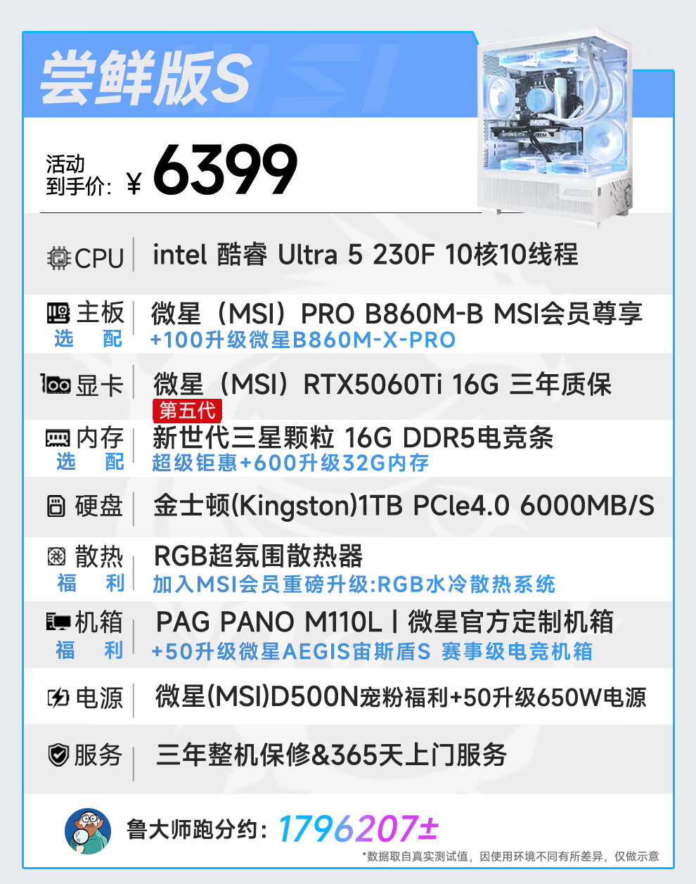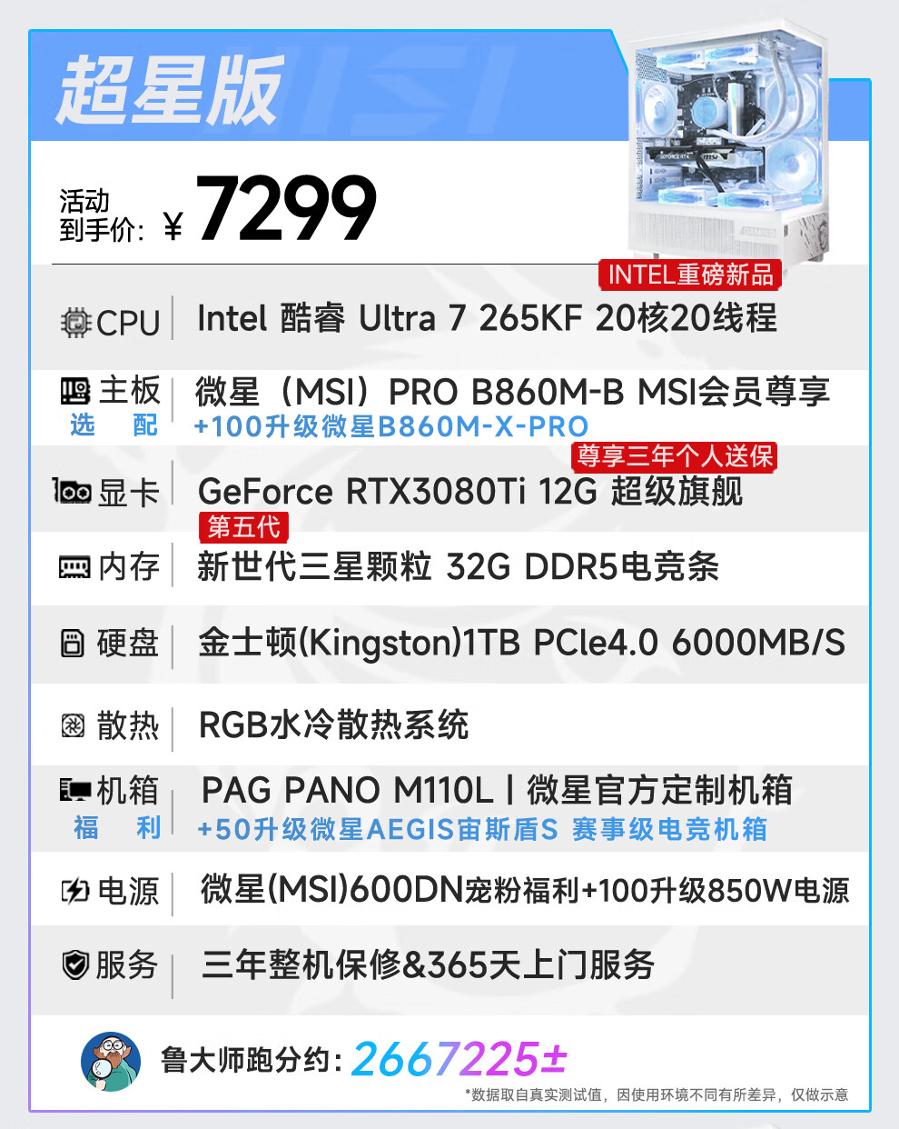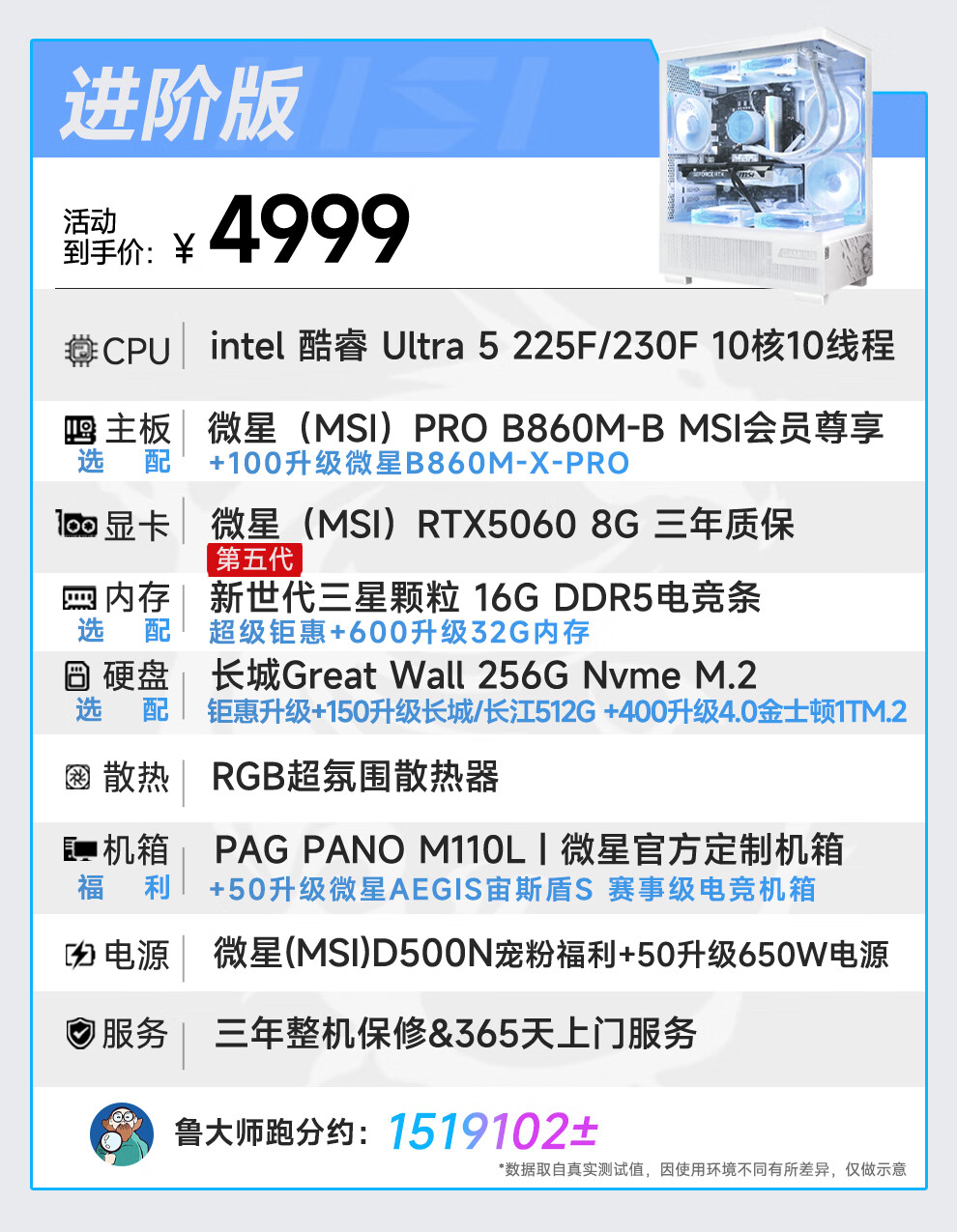 MSI official hot model Ultra7 265KF/U5230F/i5 14600KF desktop assembly computer host RTX5060Ti16G delta game independent display design complete machine i5 14600KF+3080 Aegis-Enjoy Edition Aegis S