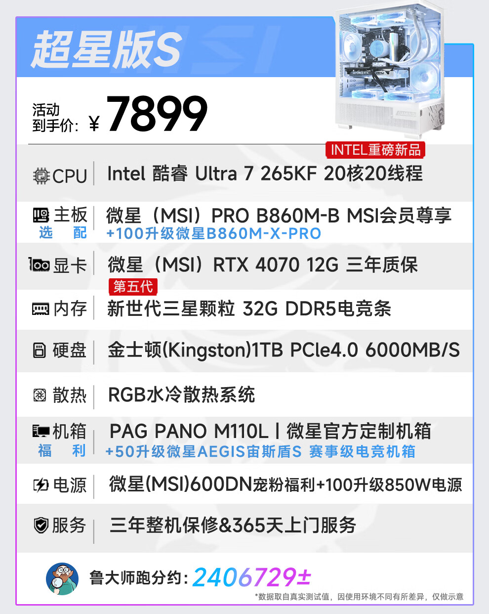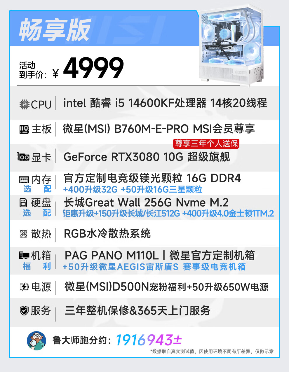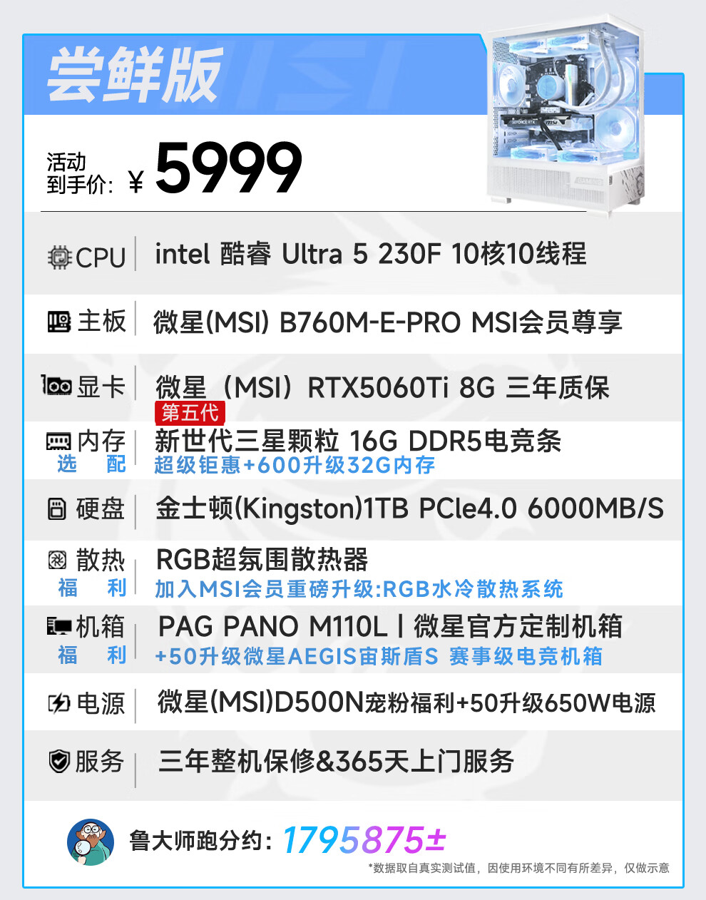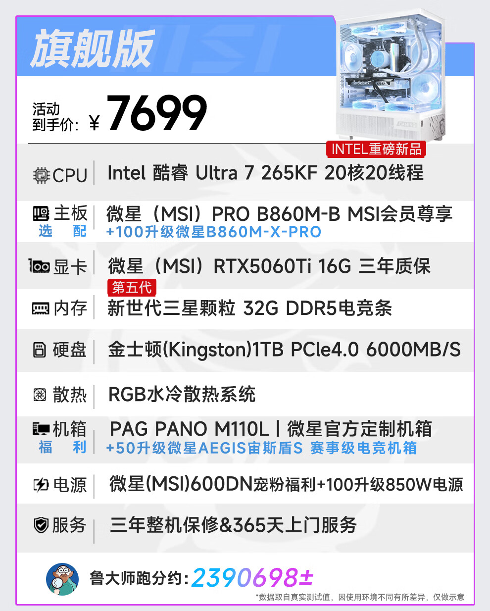 MSI official hot model Ultra7 265KF/U5230F/i5 14600KF desktop assembly computer host RTX5060Ti16G delta game independent display design complete machine i5 14600KF+3080 Aegis-Enjoy Edition Aegis S