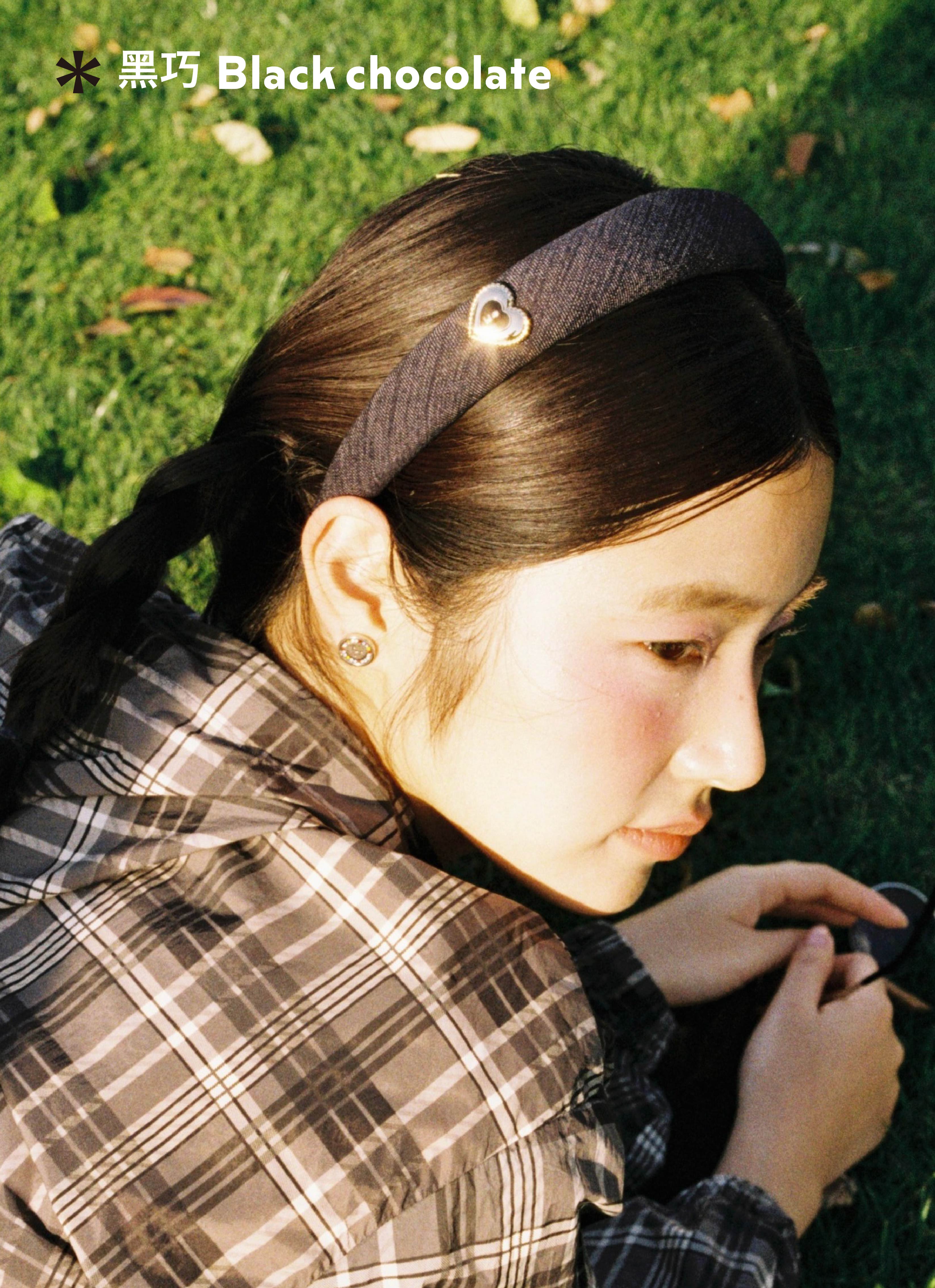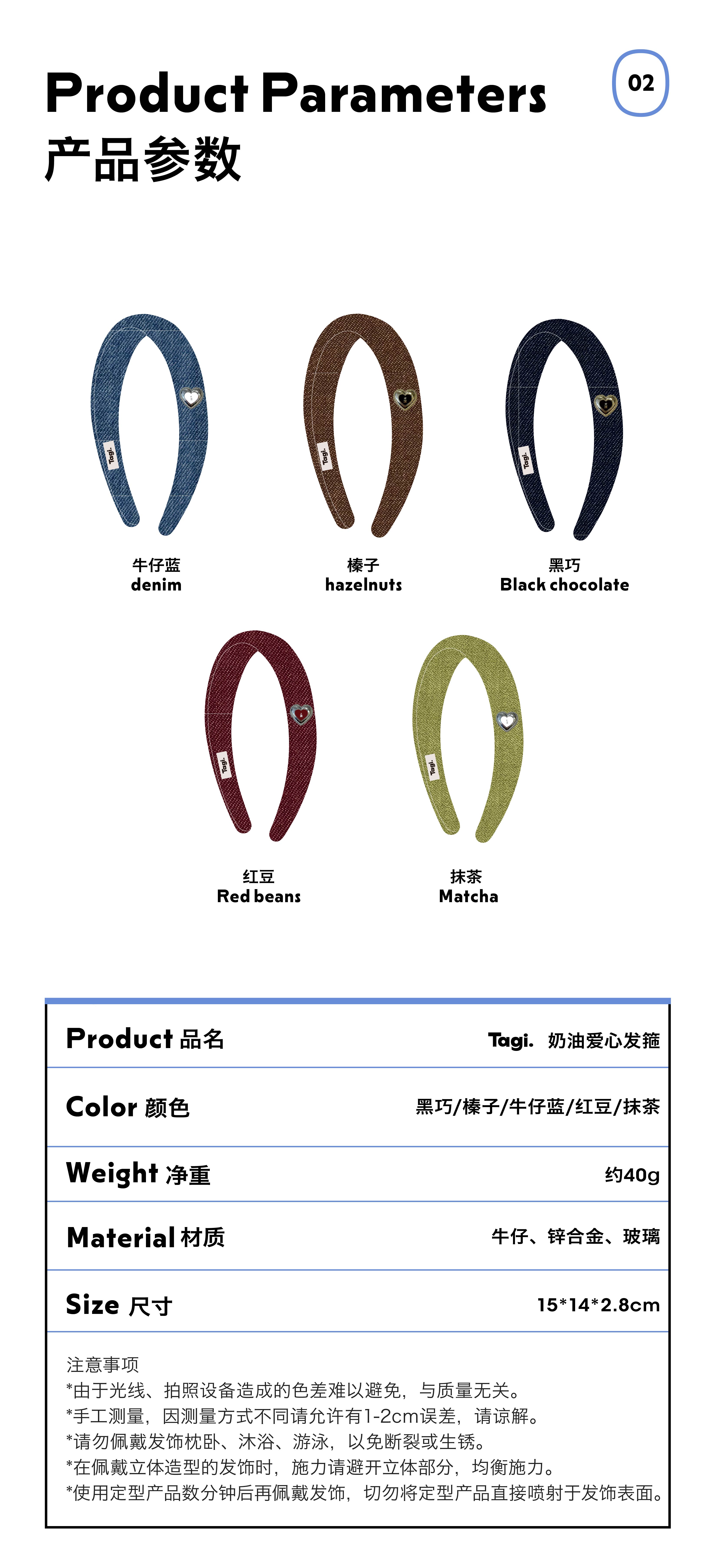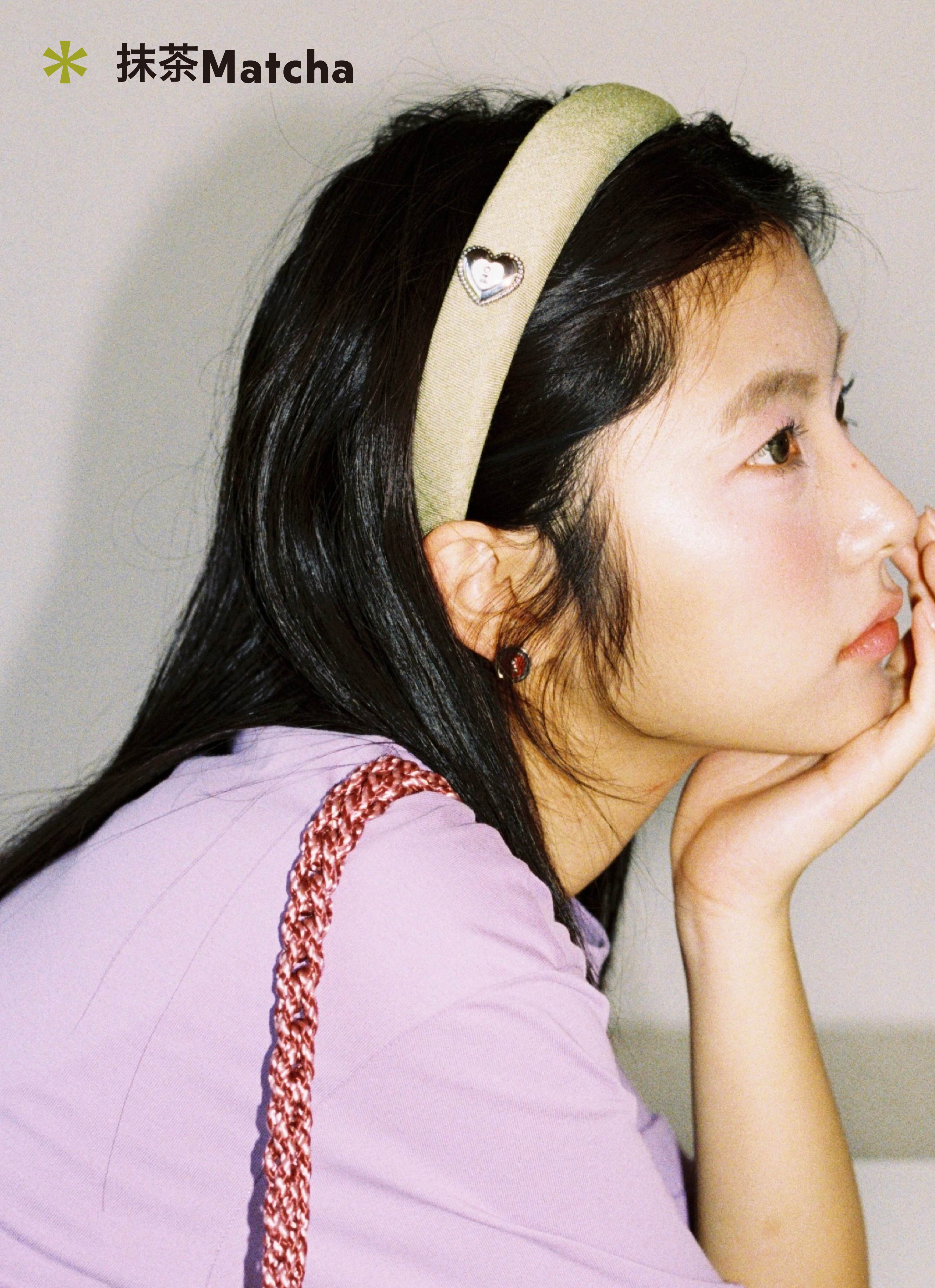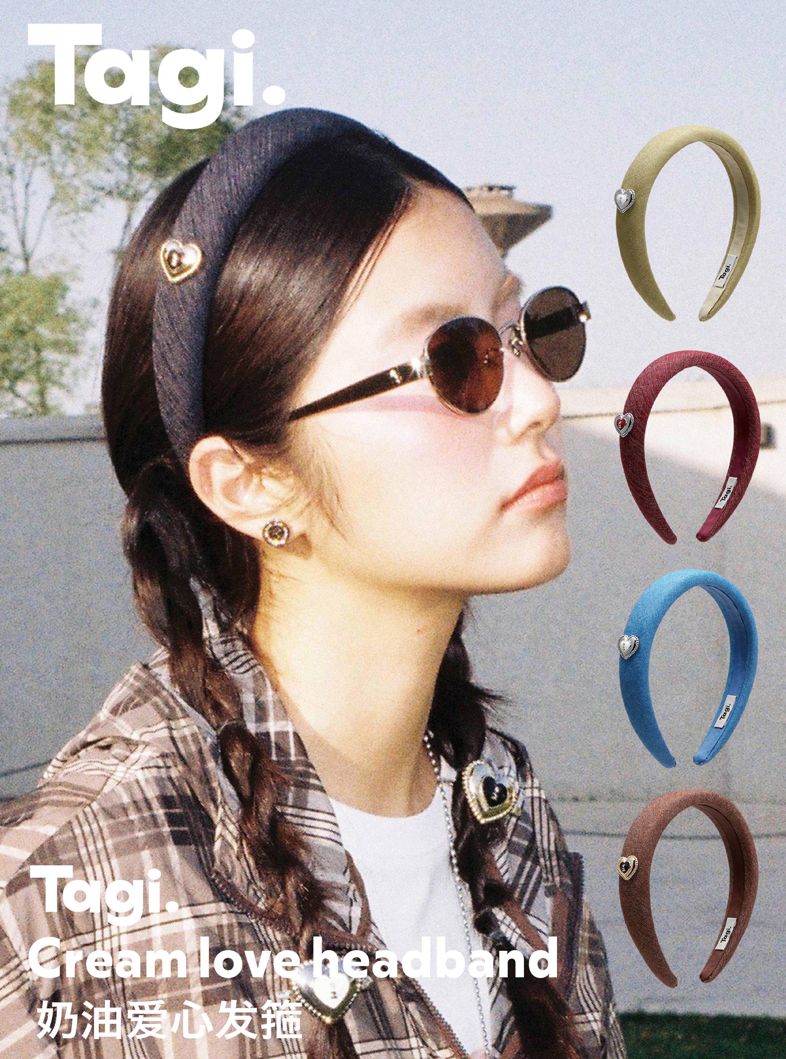 Tagi. Cream love metal oil dripping diamond retro autumn and winter denim headband high skull headband matcha