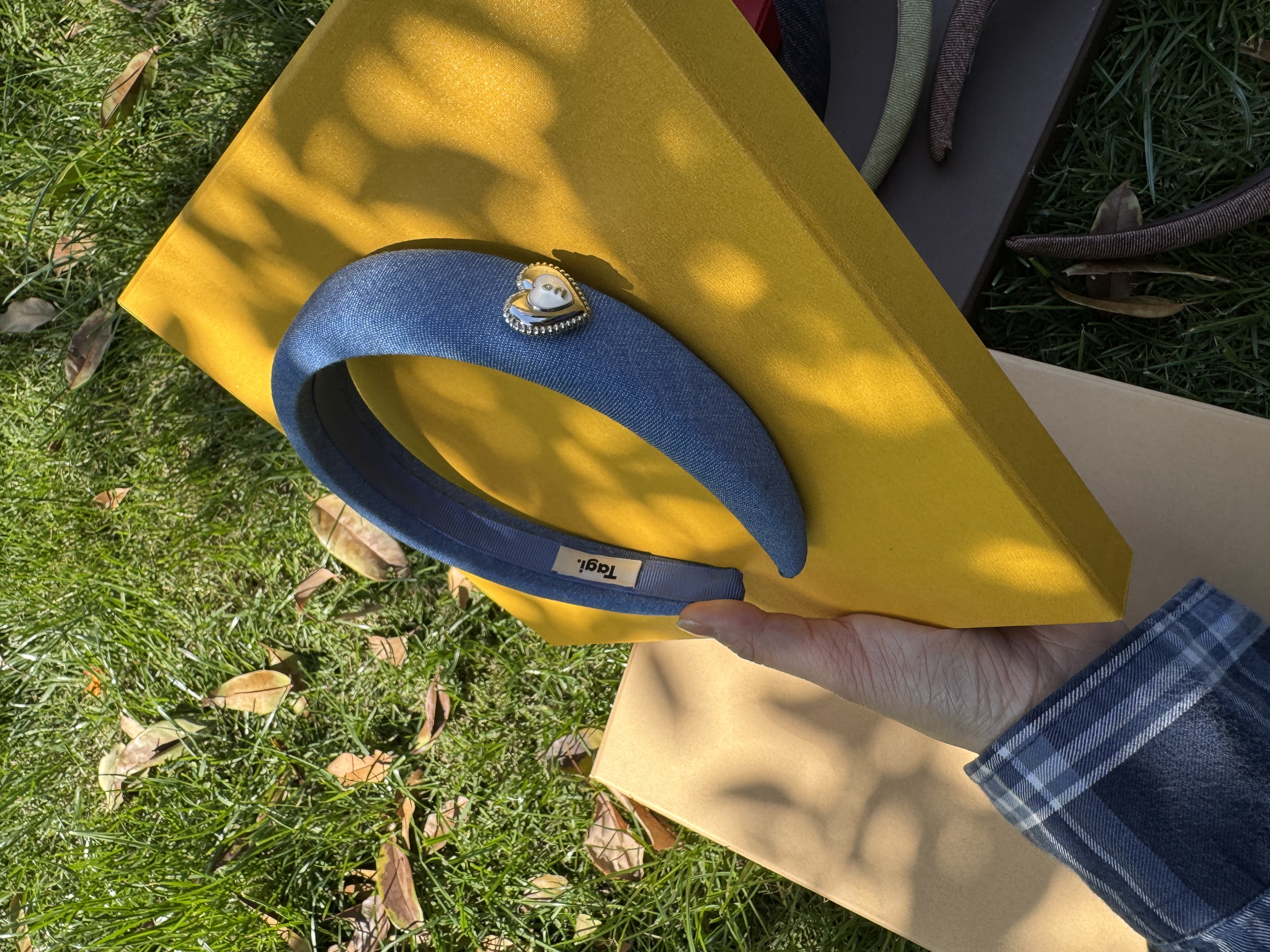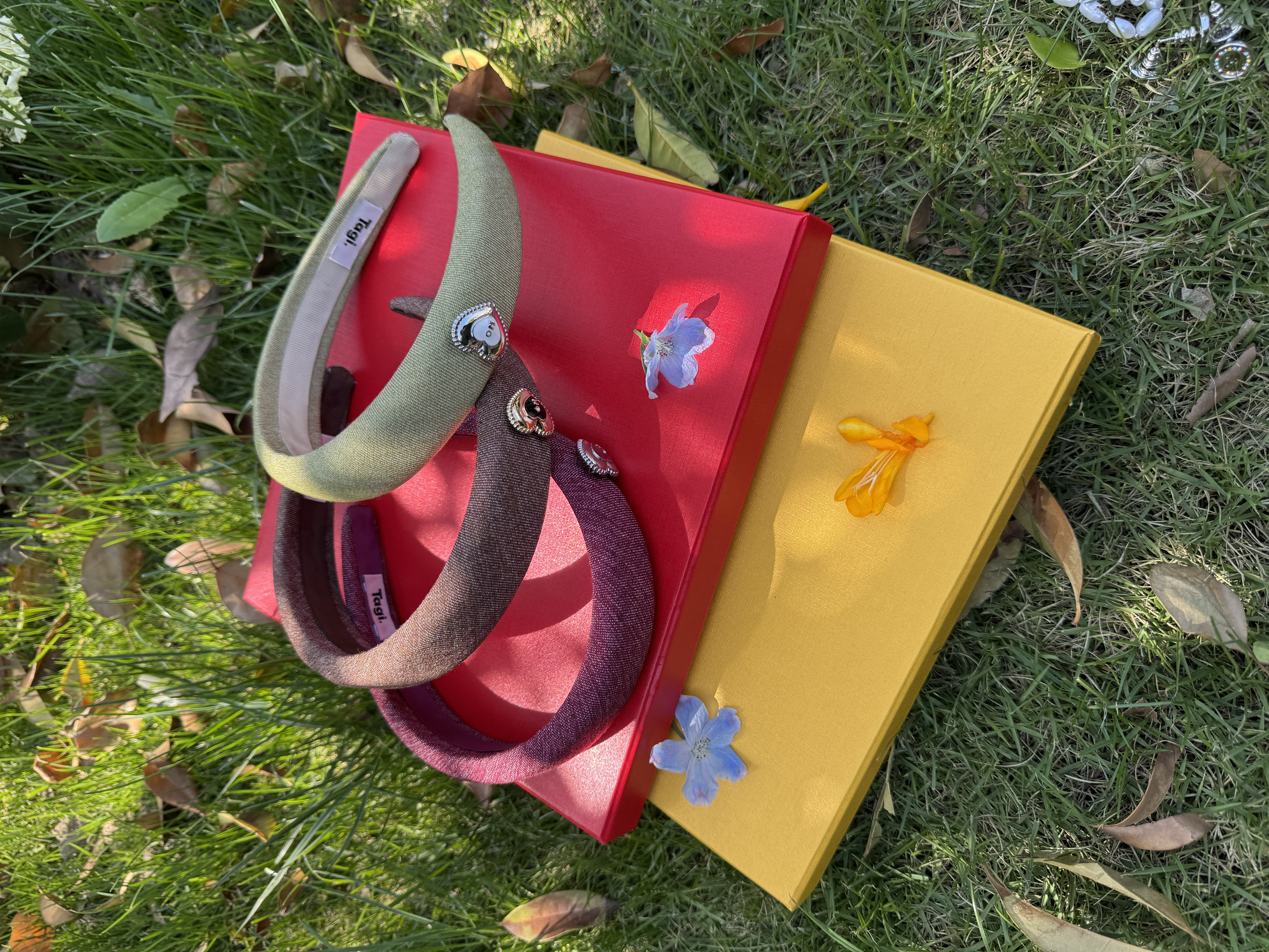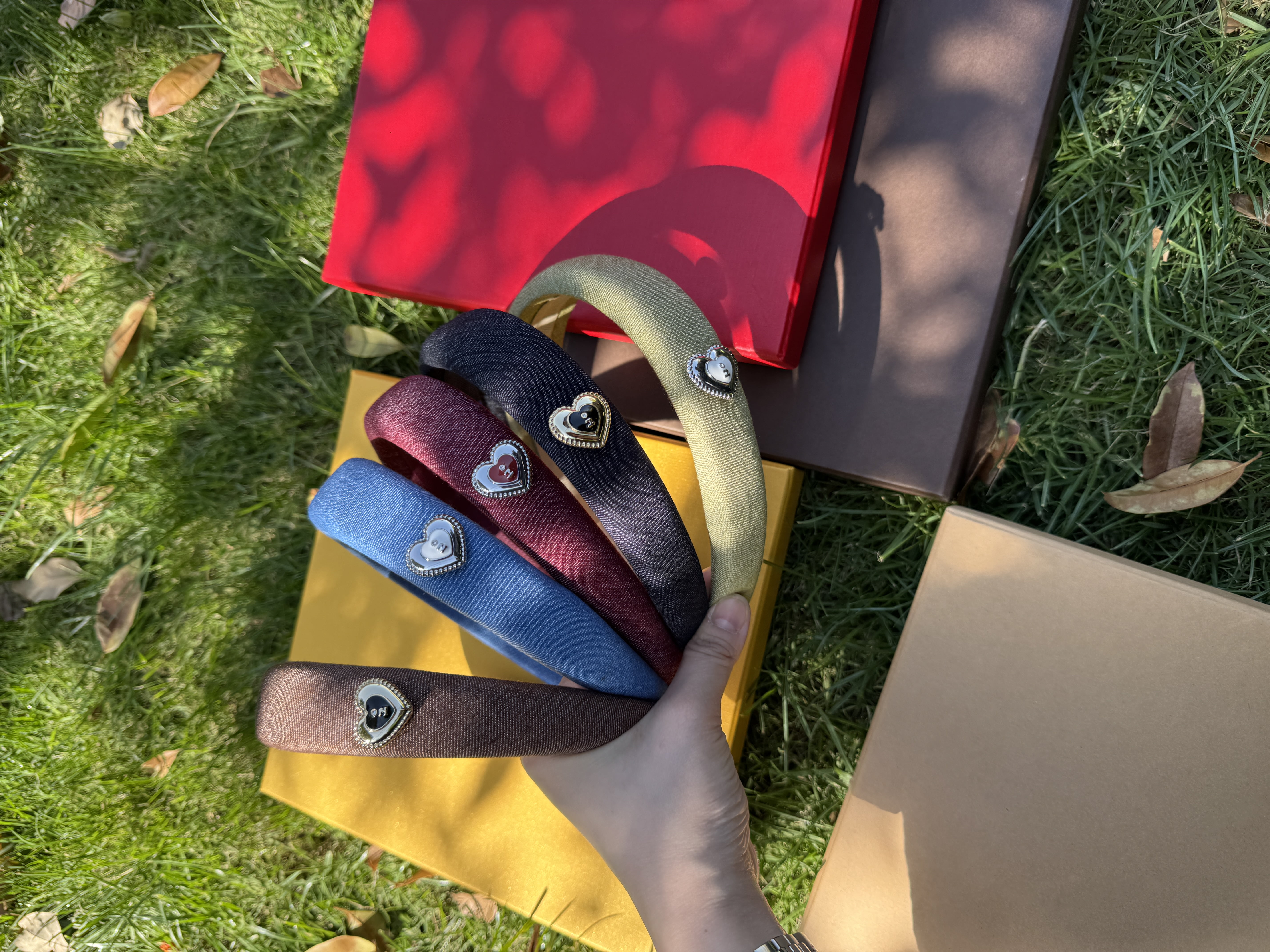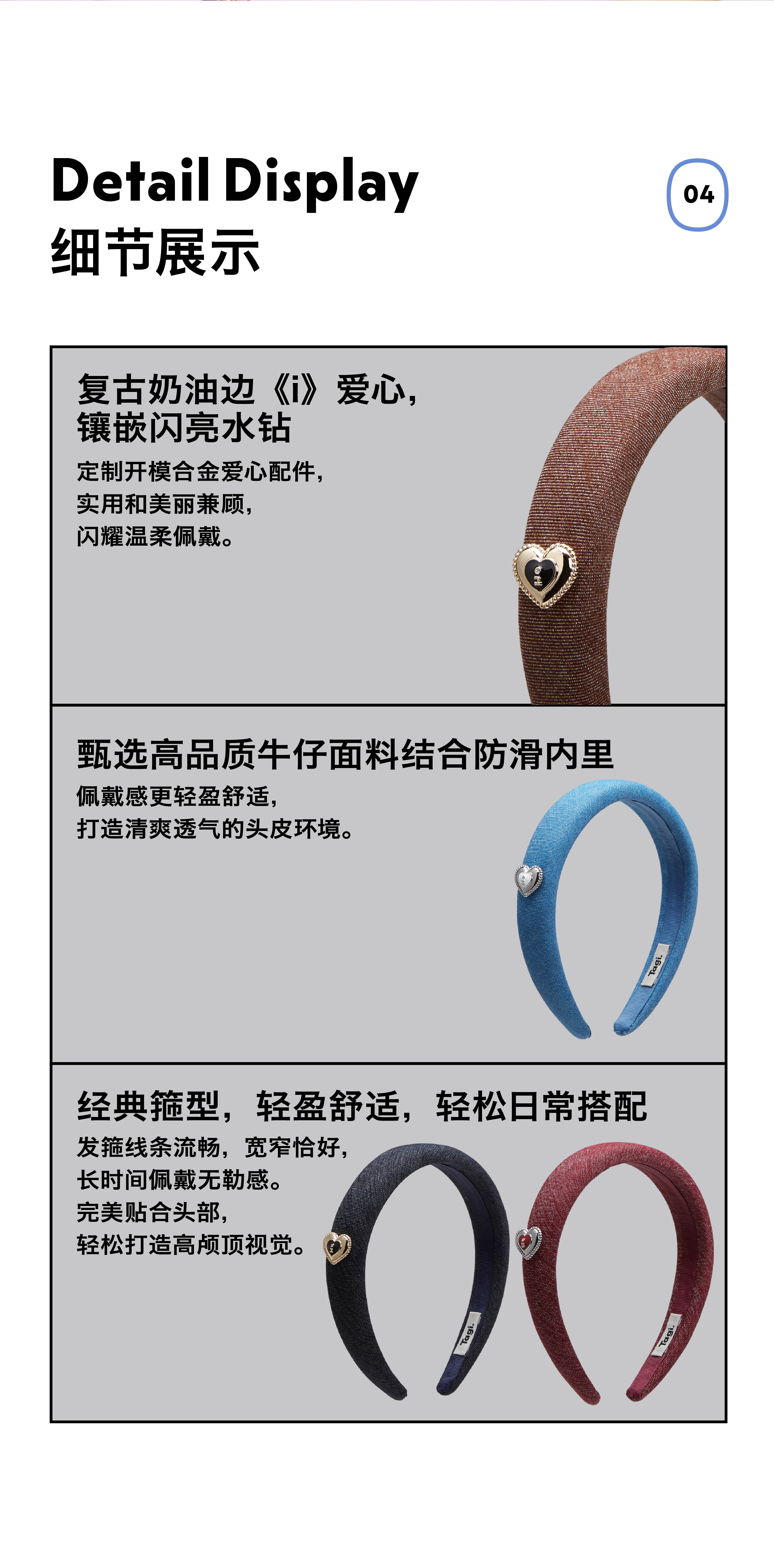 Tagi. Cream love metal oil dripping diamond retro autumn and winter denim headband high skull headband matcha
