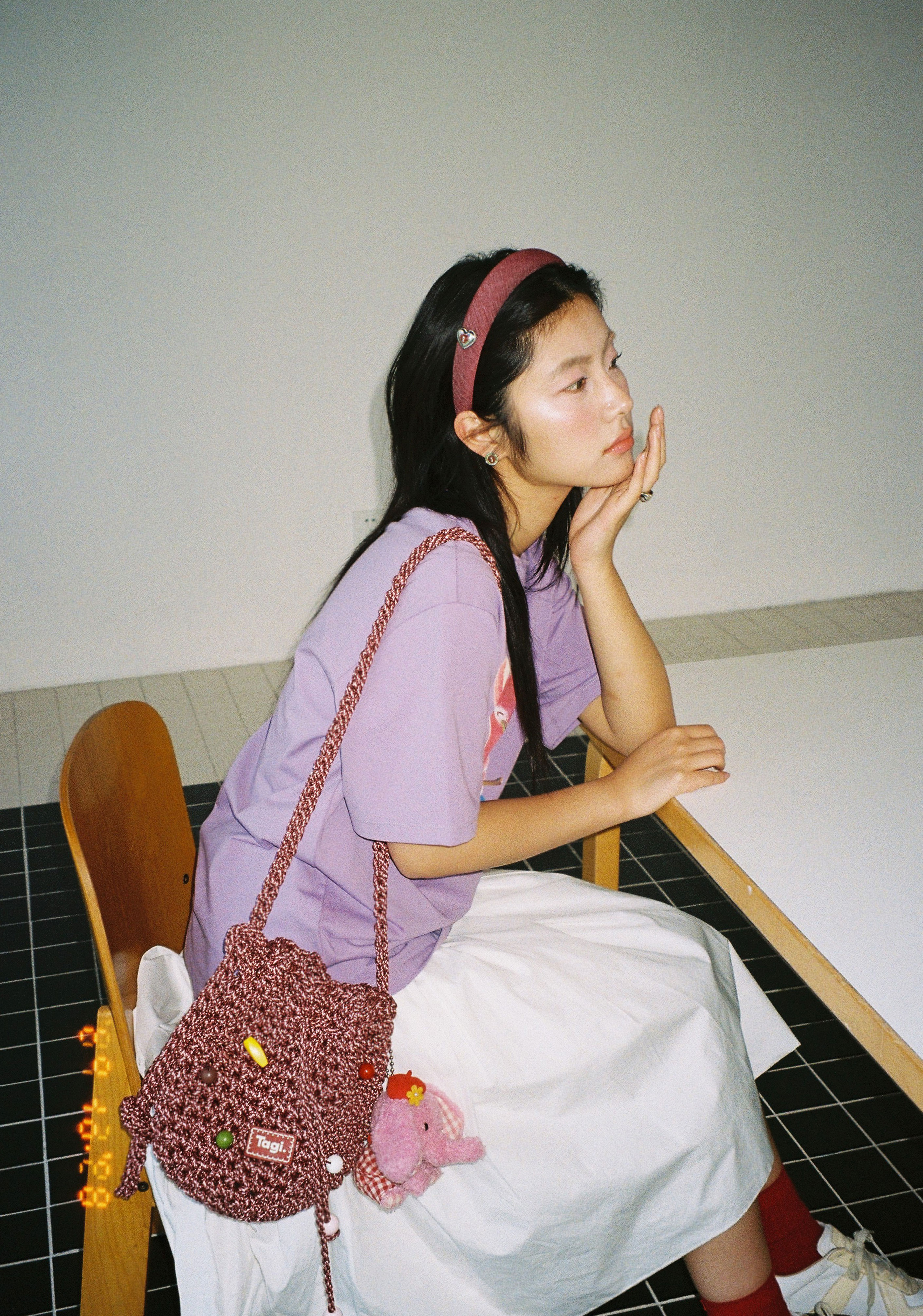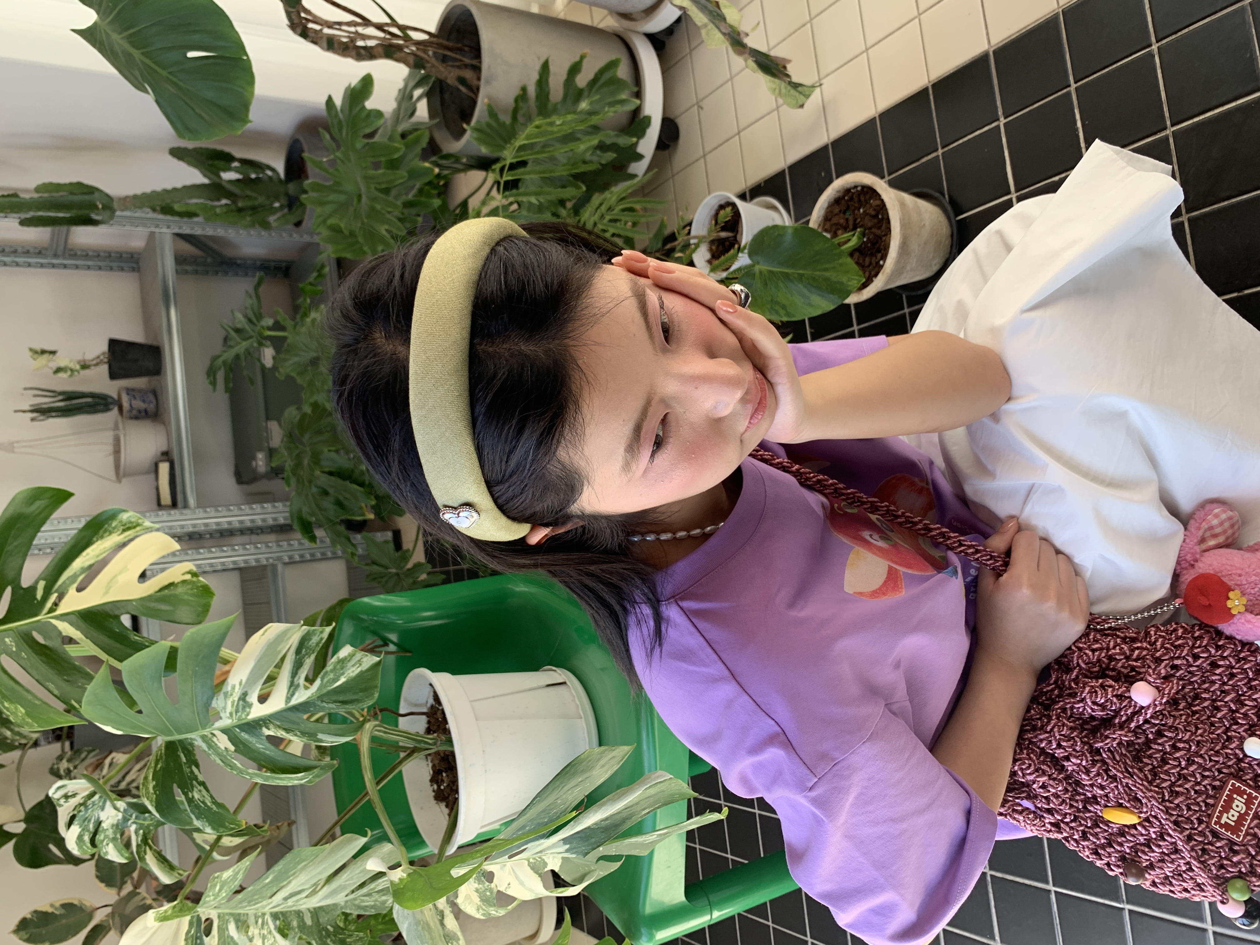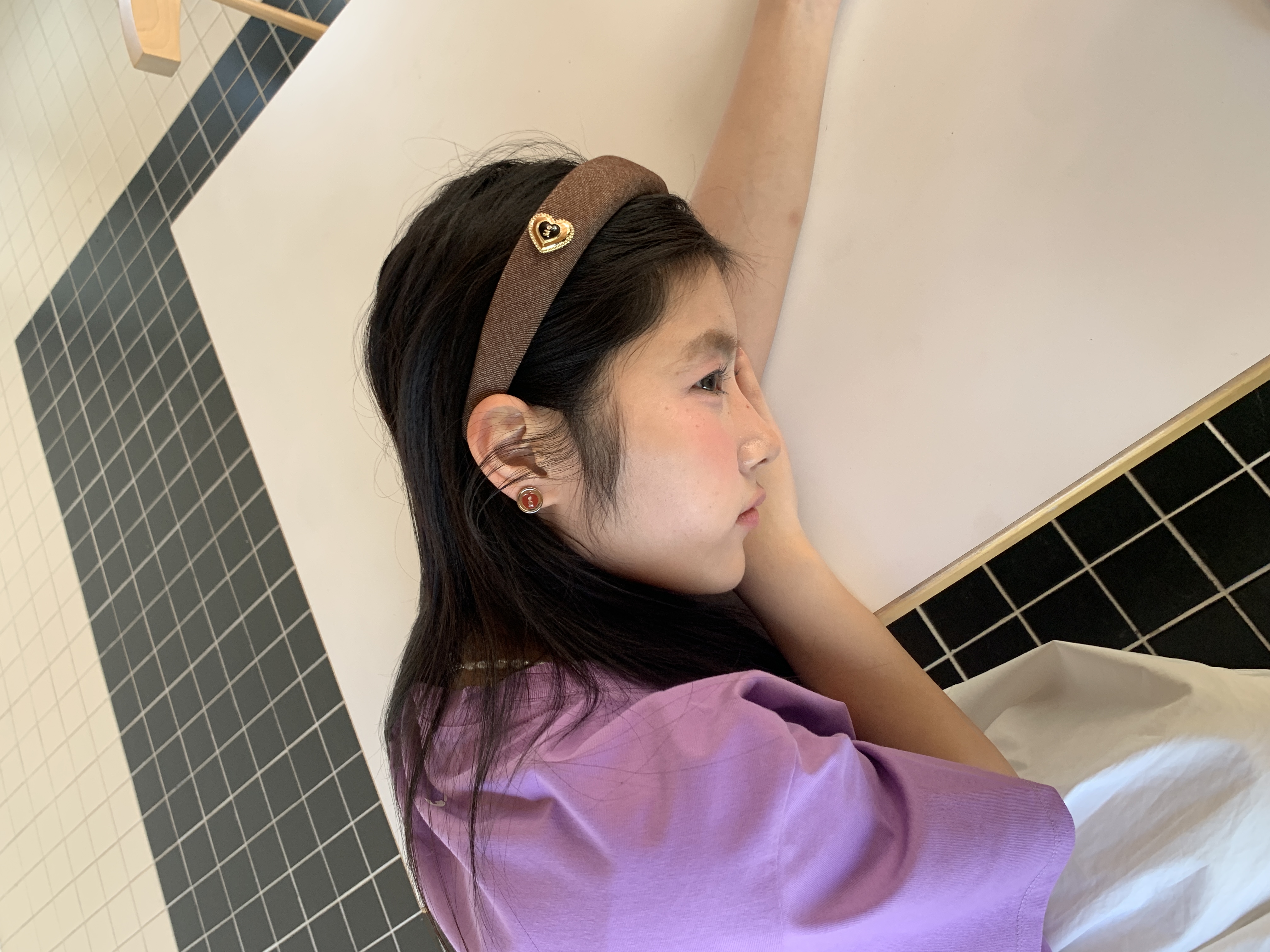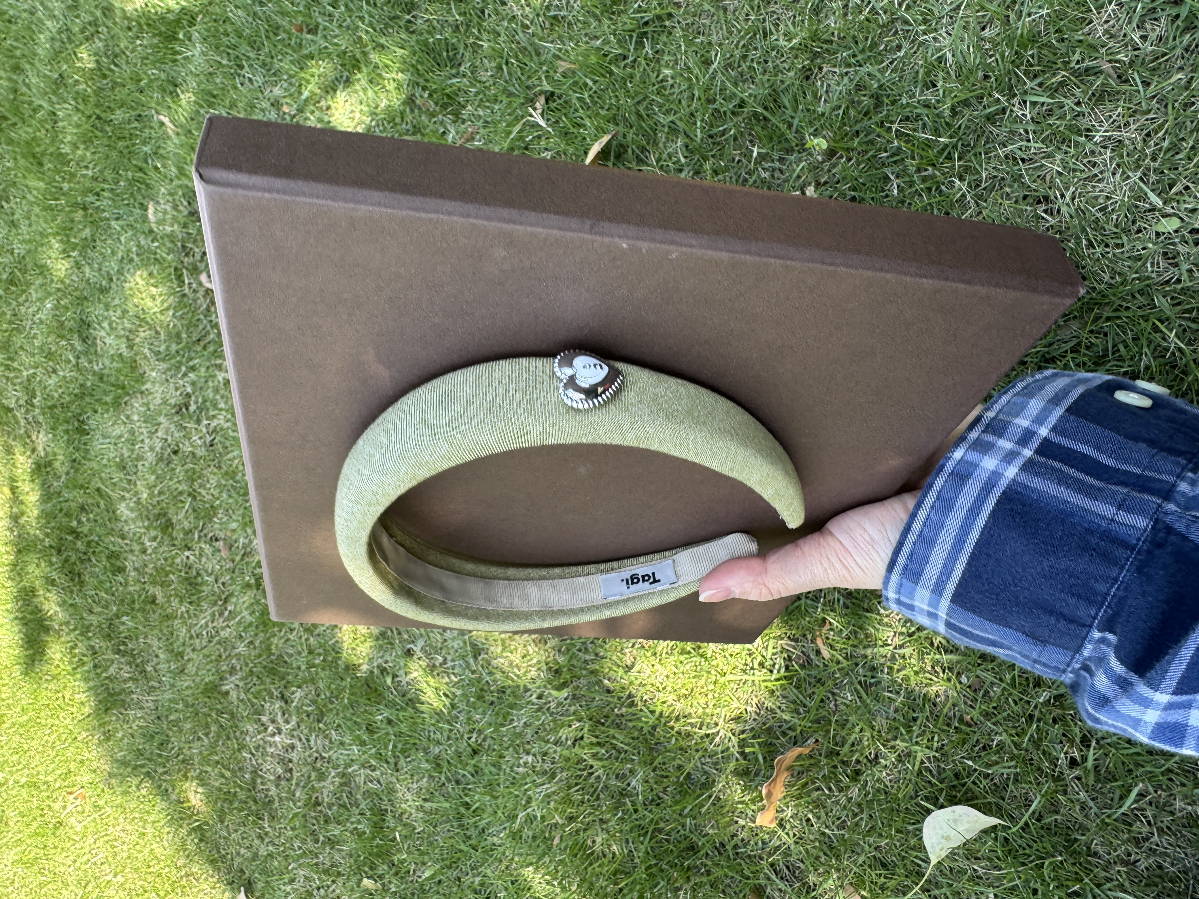Tagi. Cream love metal oil dripping diamond retro autumn and winter denim headband high skull headband matcha
