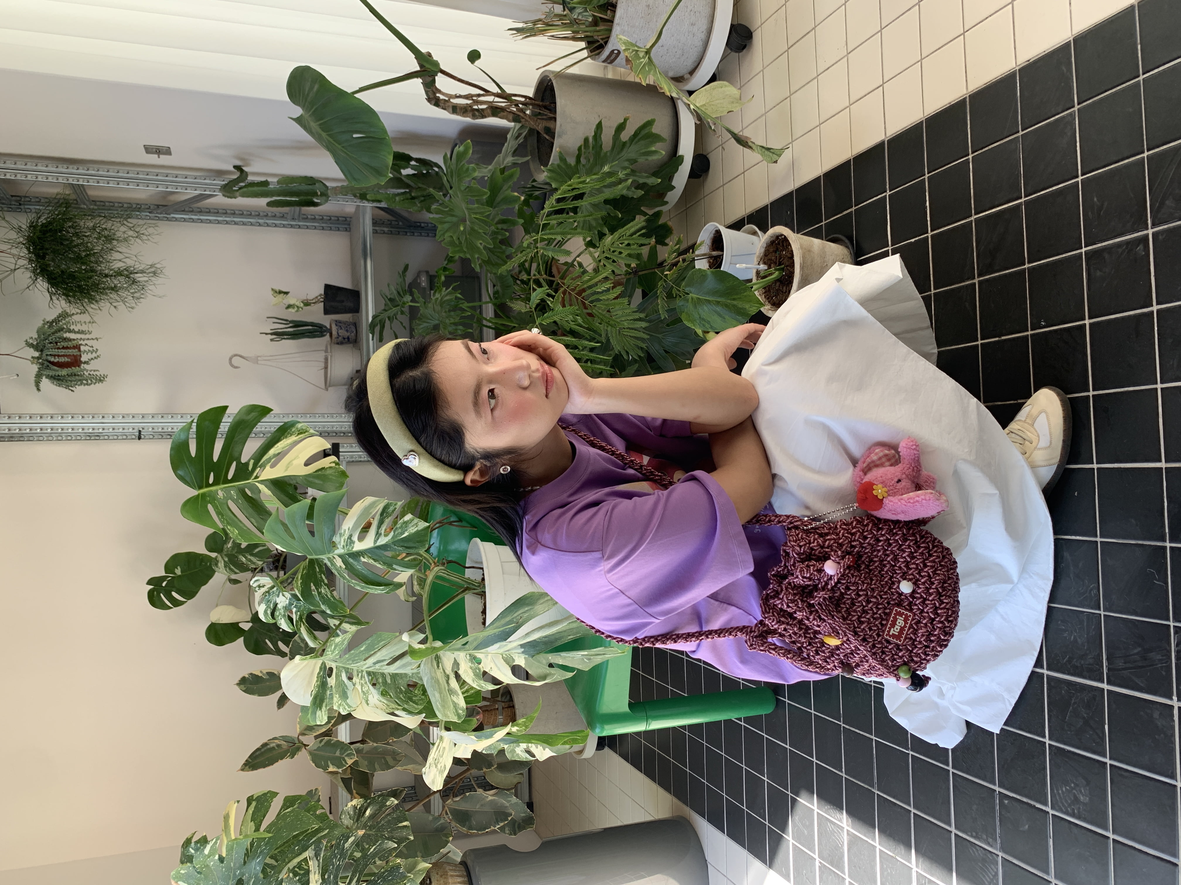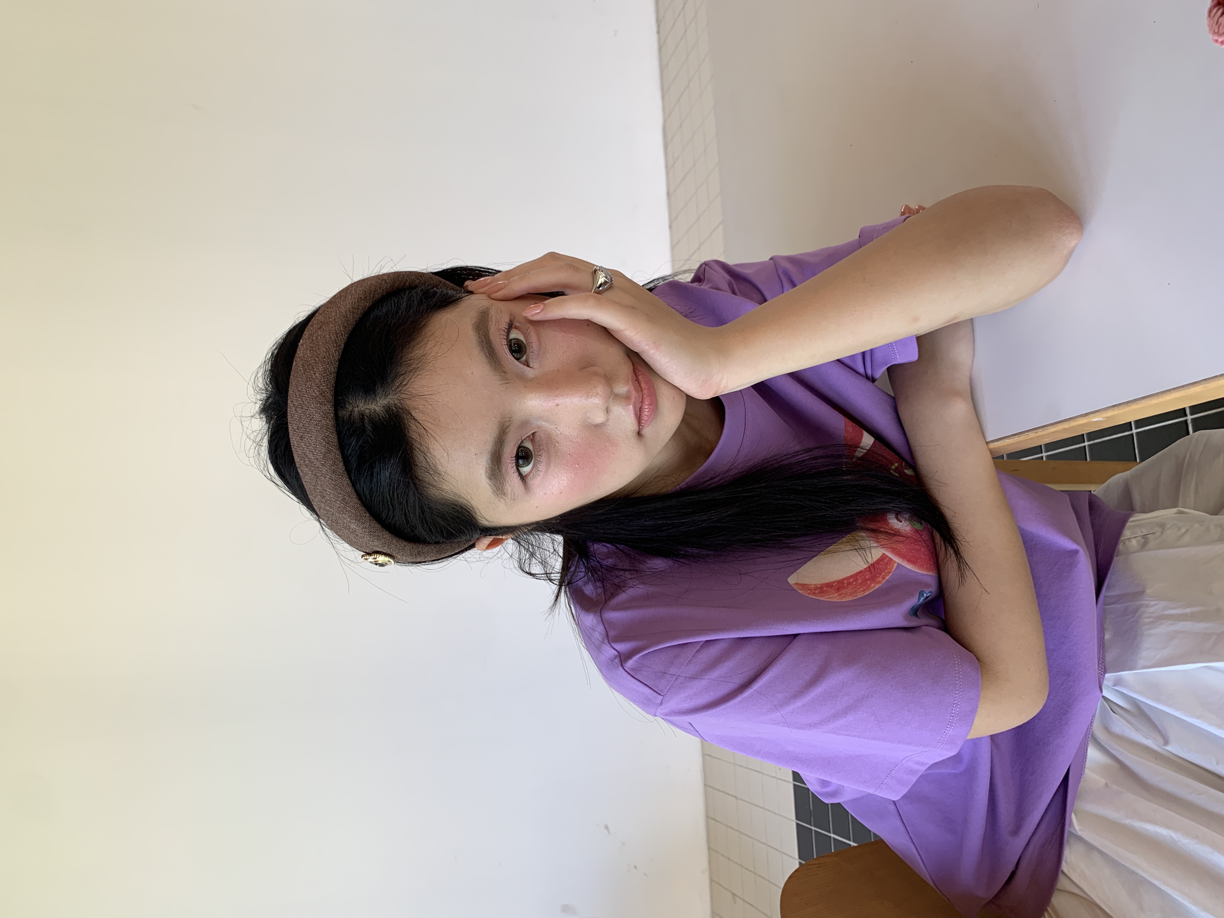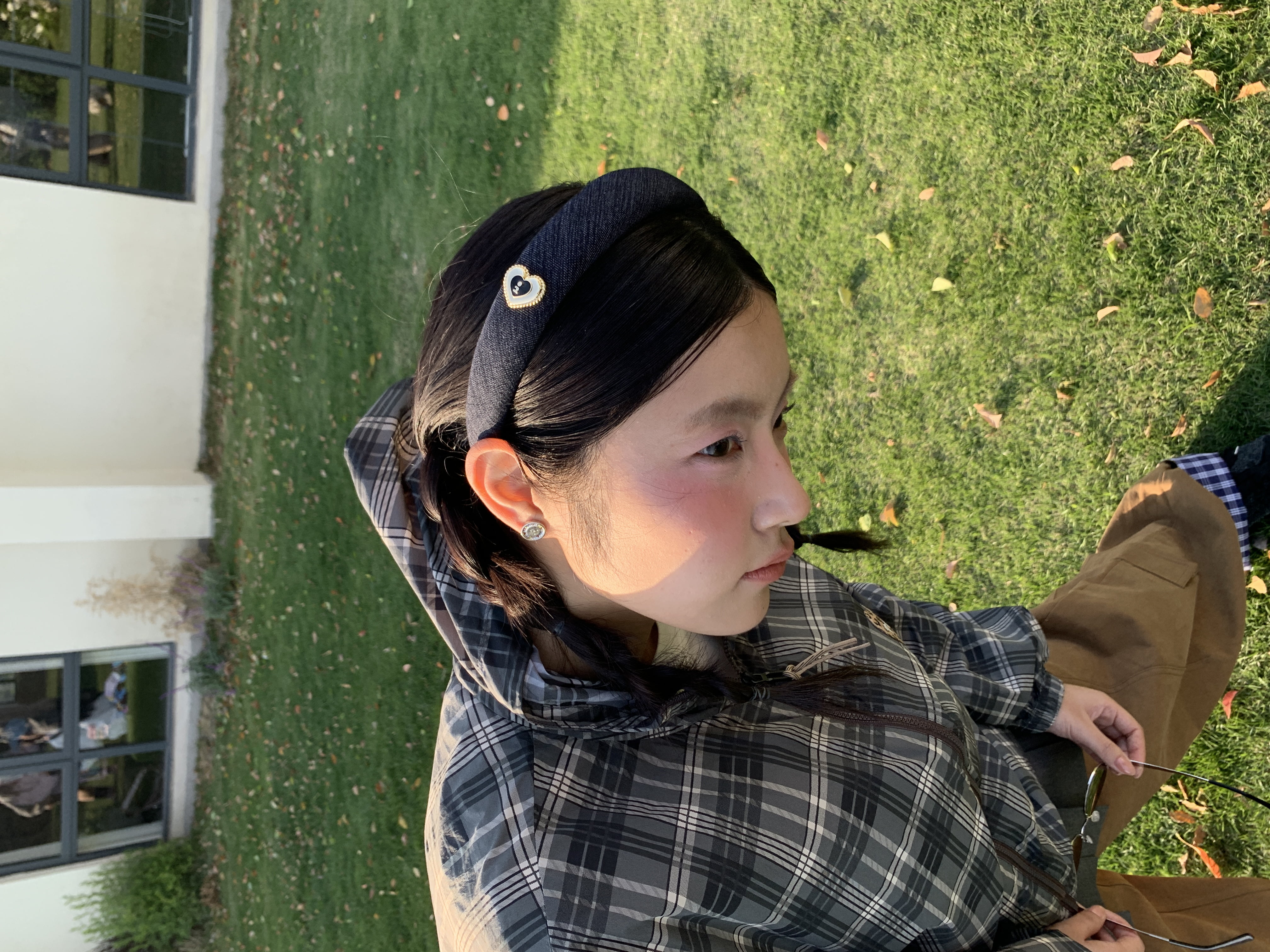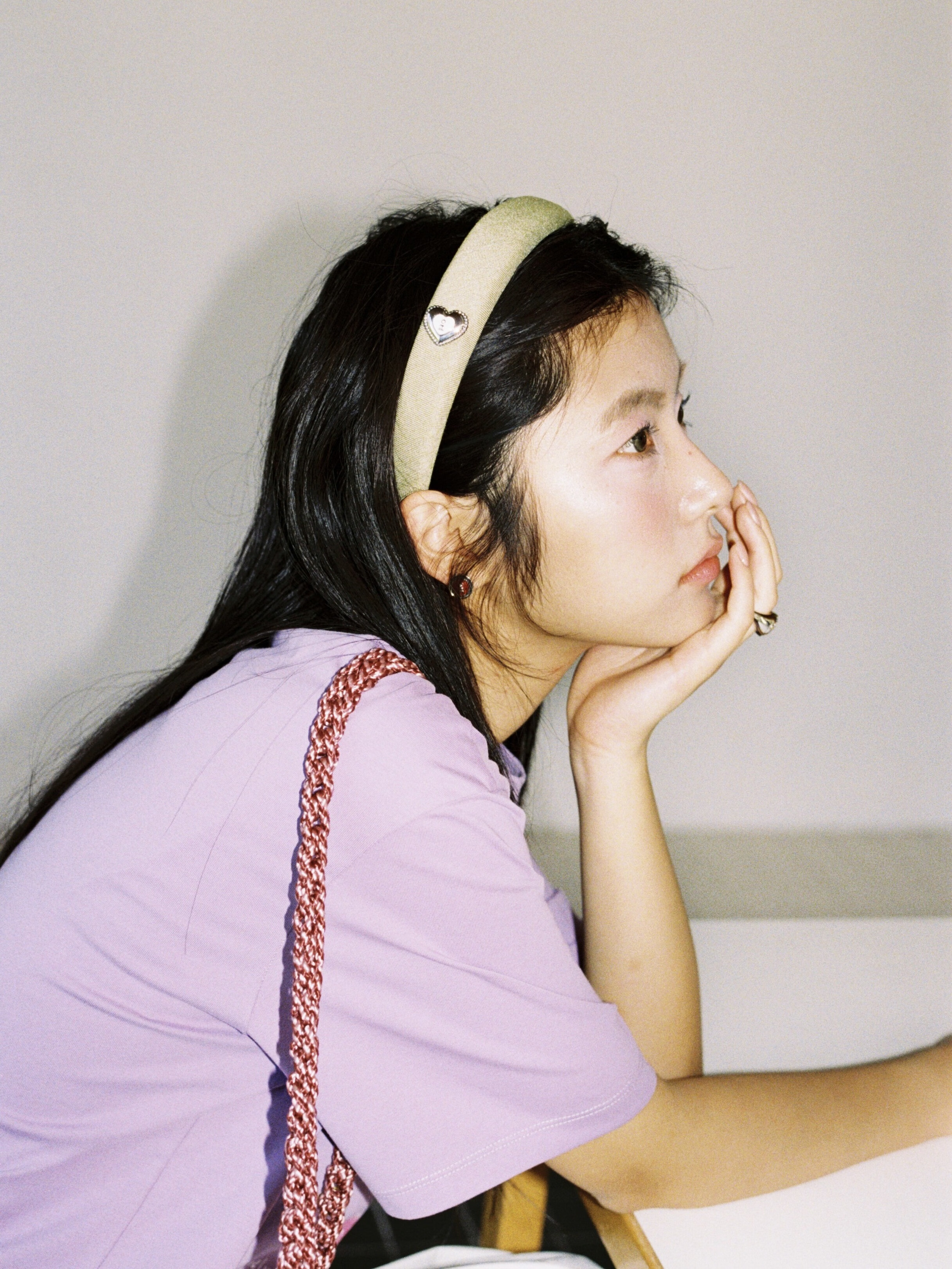 Tagi. Cream love metal oil dripping diamond retro autumn and winter denim headband high skull headband matcha