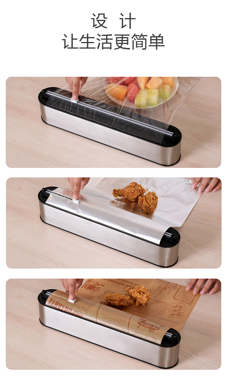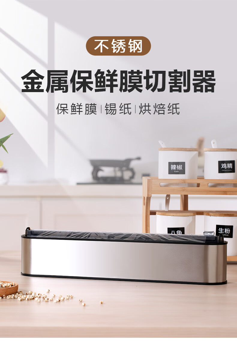 Qijia Youpin Metal Cling Film Cutter Magnetic Wall Mounting Desktop Kitchen Stainless Steel Household Sliding Knife Tinfoil Cutting Box M Style Brushed Metal Cutter