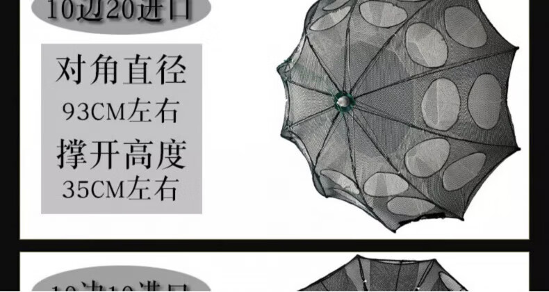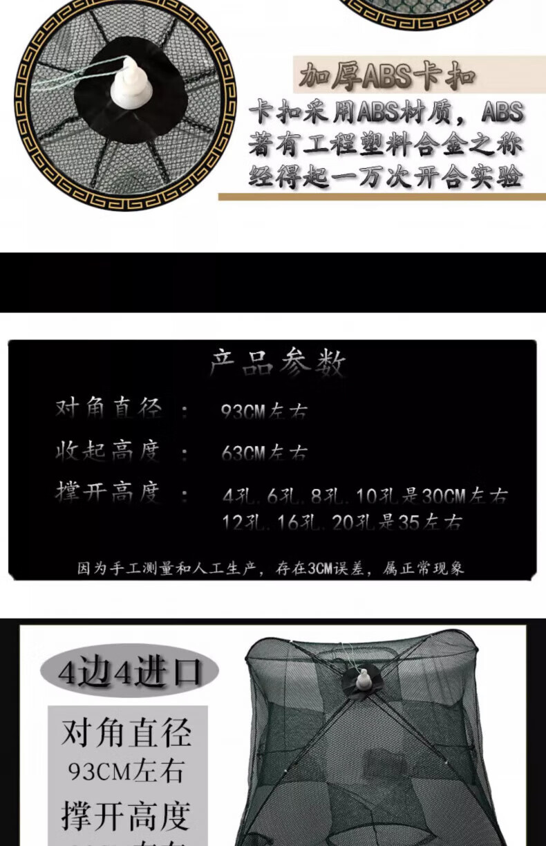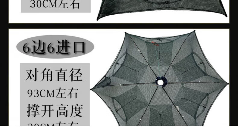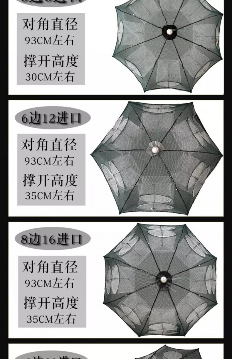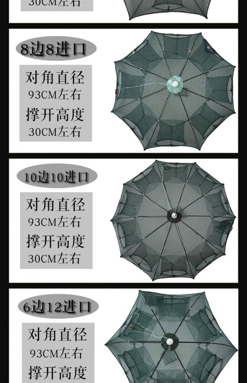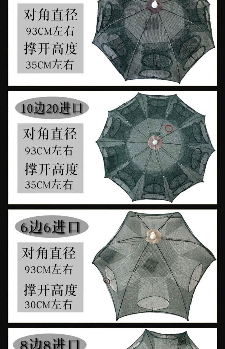 JCZS Folding Umbrella Cage Fishing Net Shrimp Cage Fishing Cage Fishing Net Fishing Net Cage Shrimp Cage Shrimp Net Folding Fishing Umbrella Net Luminous Bold Thickened 4 Holes + 5 Packs of Bait +