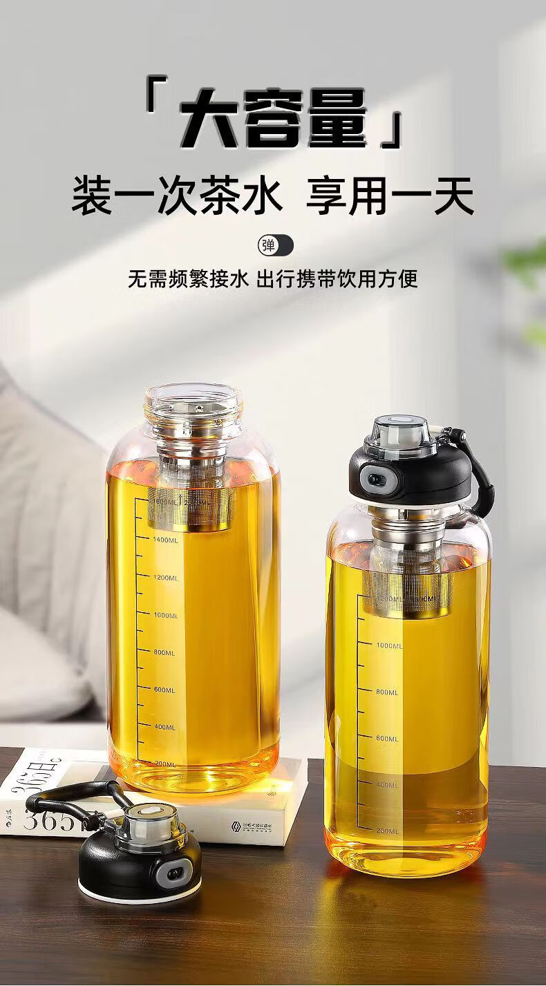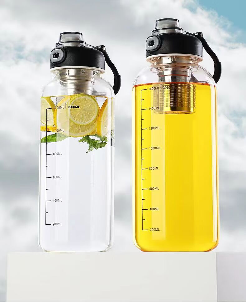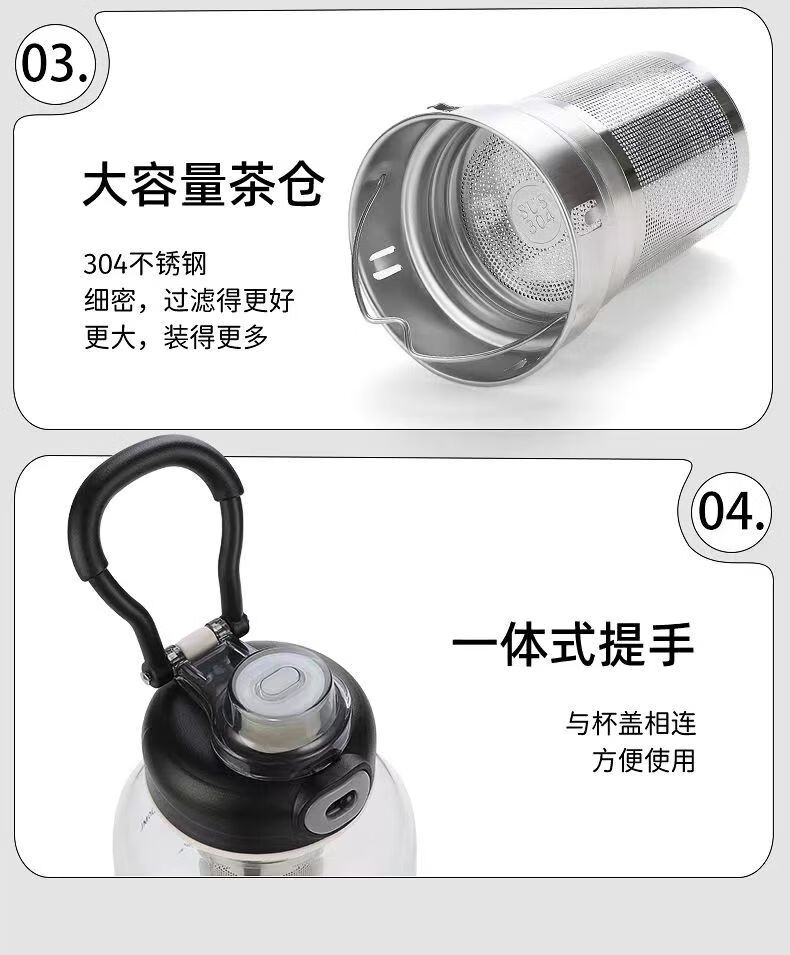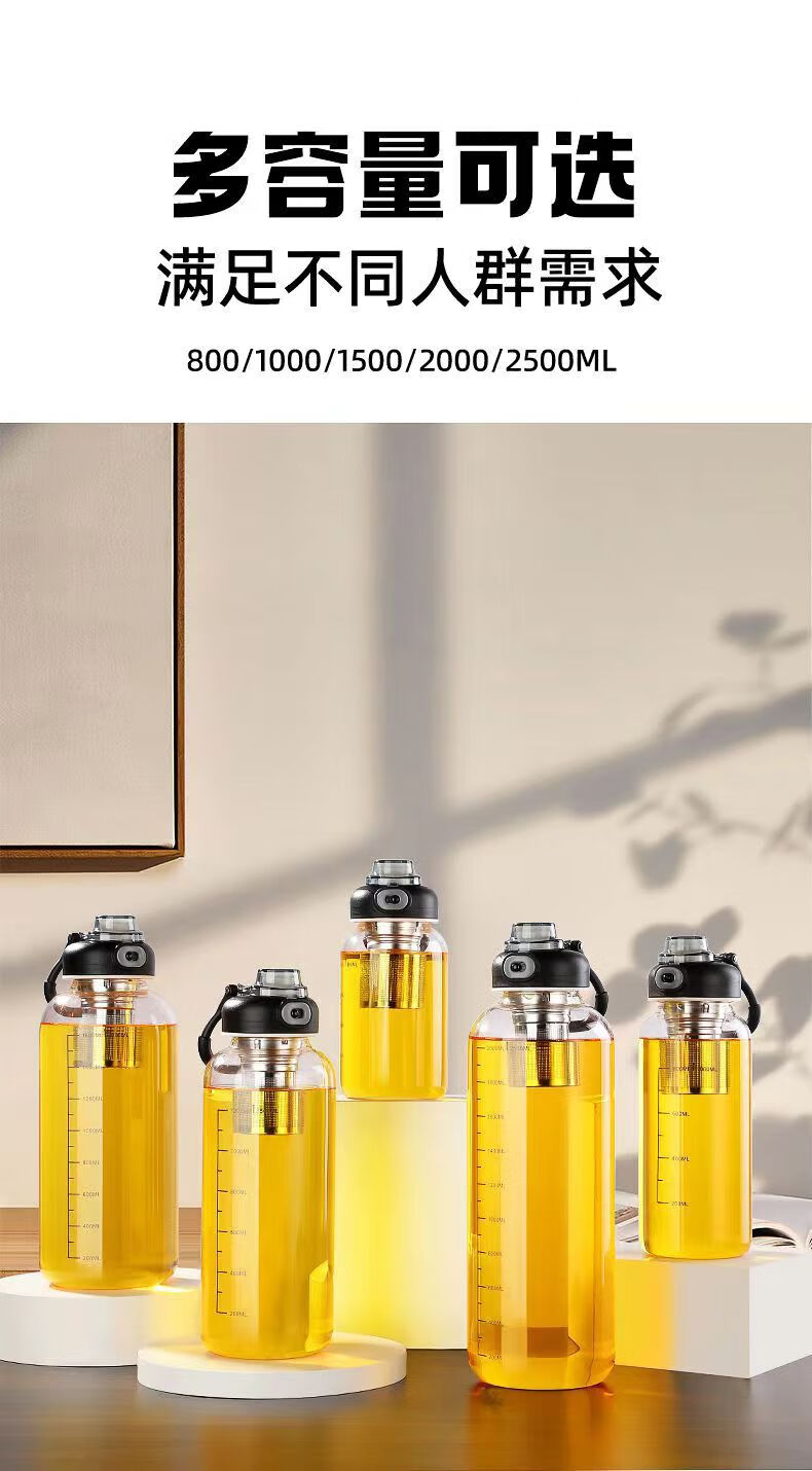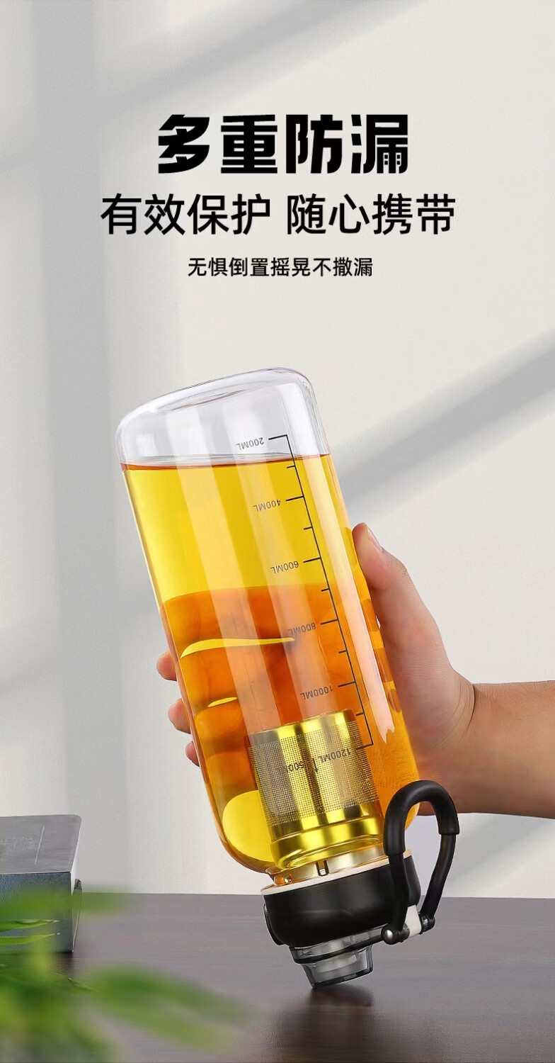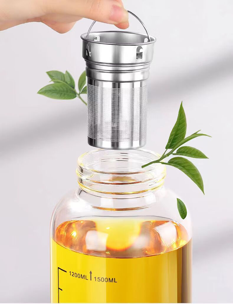 Rice harvesting ton barrel ton high temperature resistant 100 degrees food grade boiling water anti-fall tea water separation glass tea cup large capacity water cup high borosilicate explosion-proof glass tea net + cup sleeve 2000ml