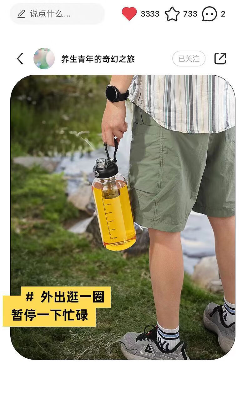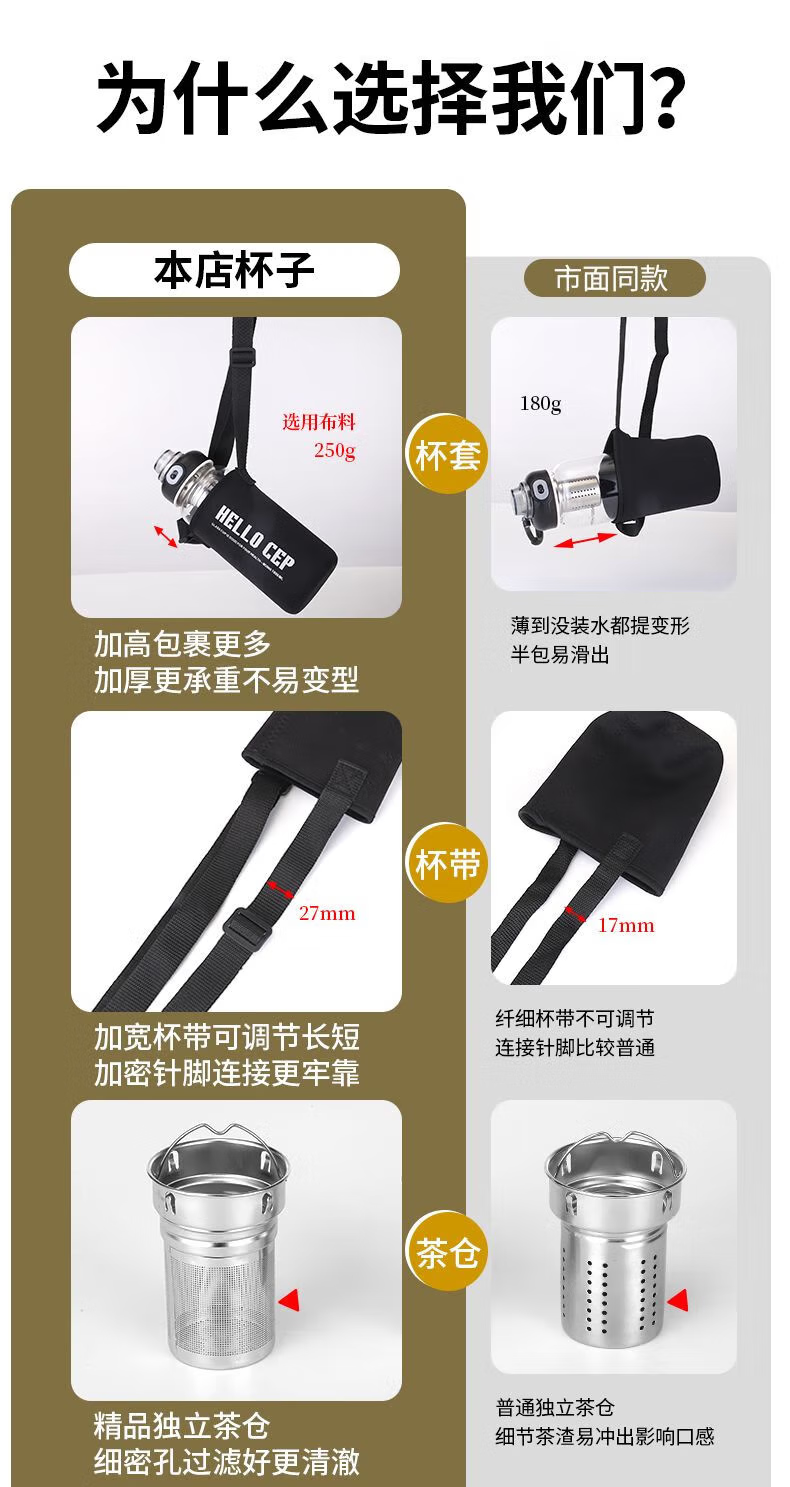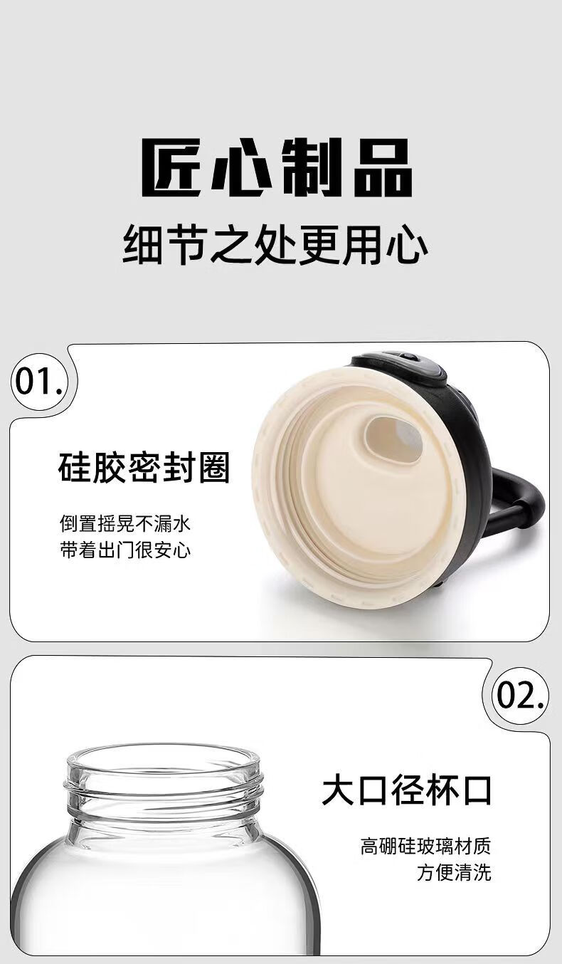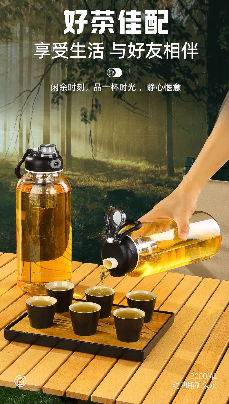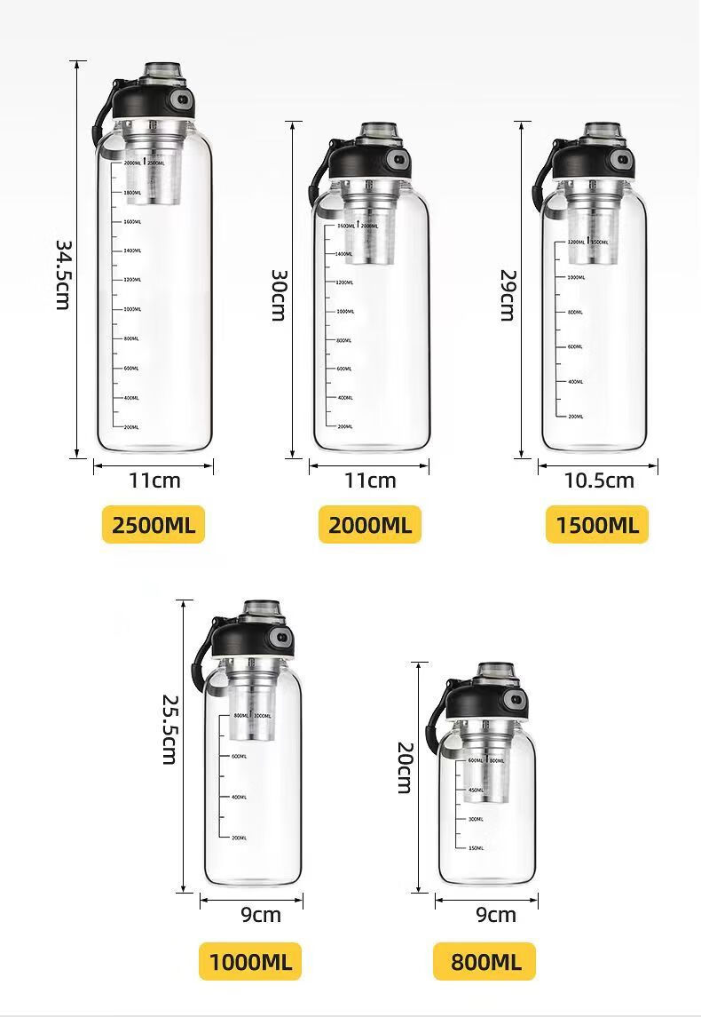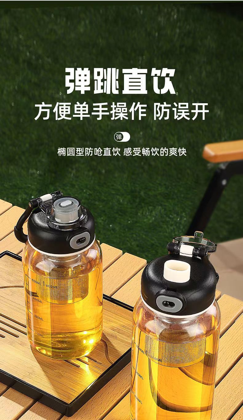Rice harvesting ton barrel ton high temperature resistant 100 degrees food grade boiling water anti-fall tea water separation glass tea cup large capacity water cup high borosilicate explosion-proof glass tea net + cup sleeve 2000ml