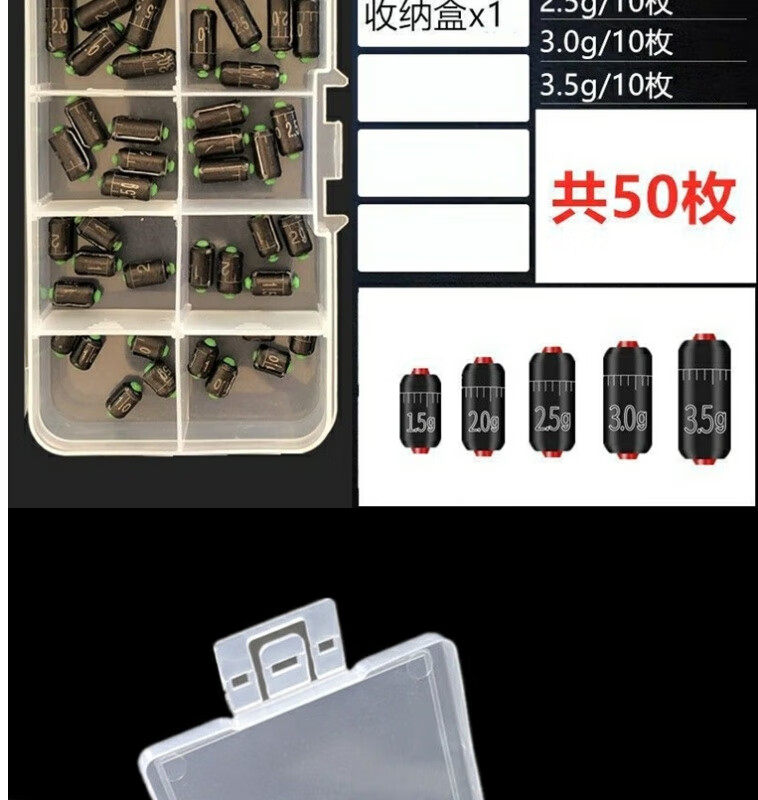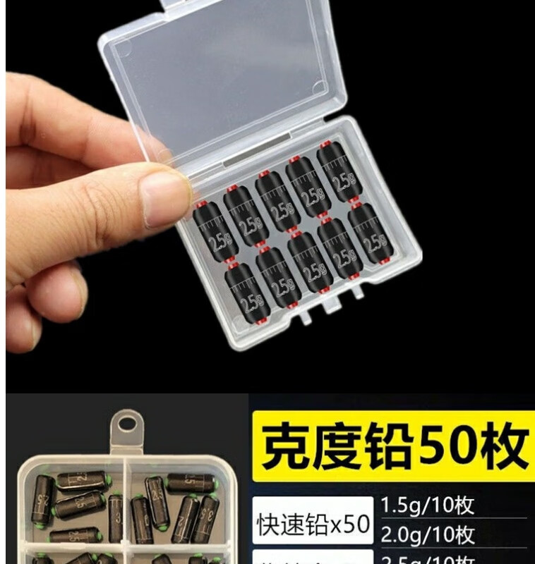 Meikejie quick scale lead set lead pendant large object thickened gram leather fishing gear supplies box mixed competitive scale lead 1.5-3.5g, a total of 50 pieces