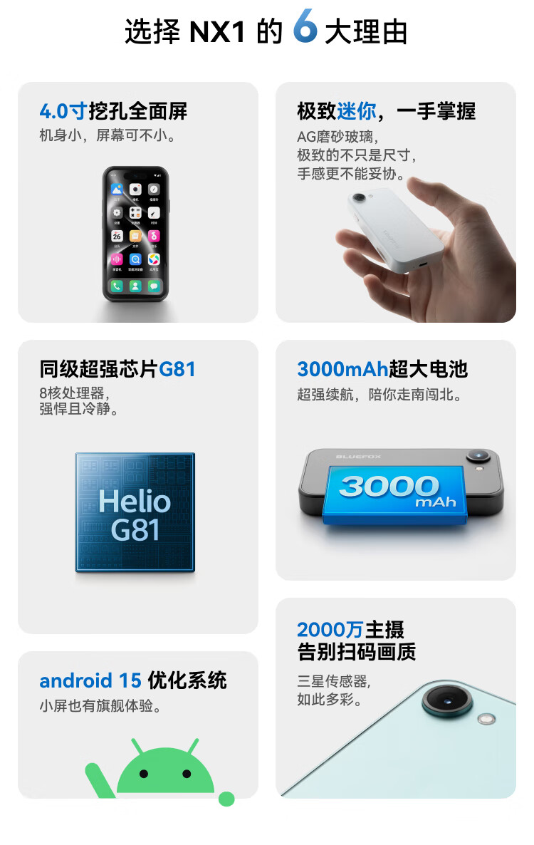 Blue Fox NX1 eight-core mini smart Android small phone full Netcom 4G new machine 4.0-inch LCD ultra-small screen flagship long battery life student high school backup mini portable phone This is black full Netcom 8+128G
