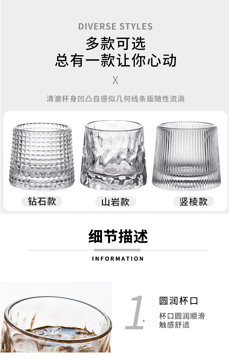 Internet celebrity rotating tumbler lead-free glass wine glass whiskey cup foreign wine cup fruit drink beer high-looking decompression cup glass cup mountain rock style 1 pack