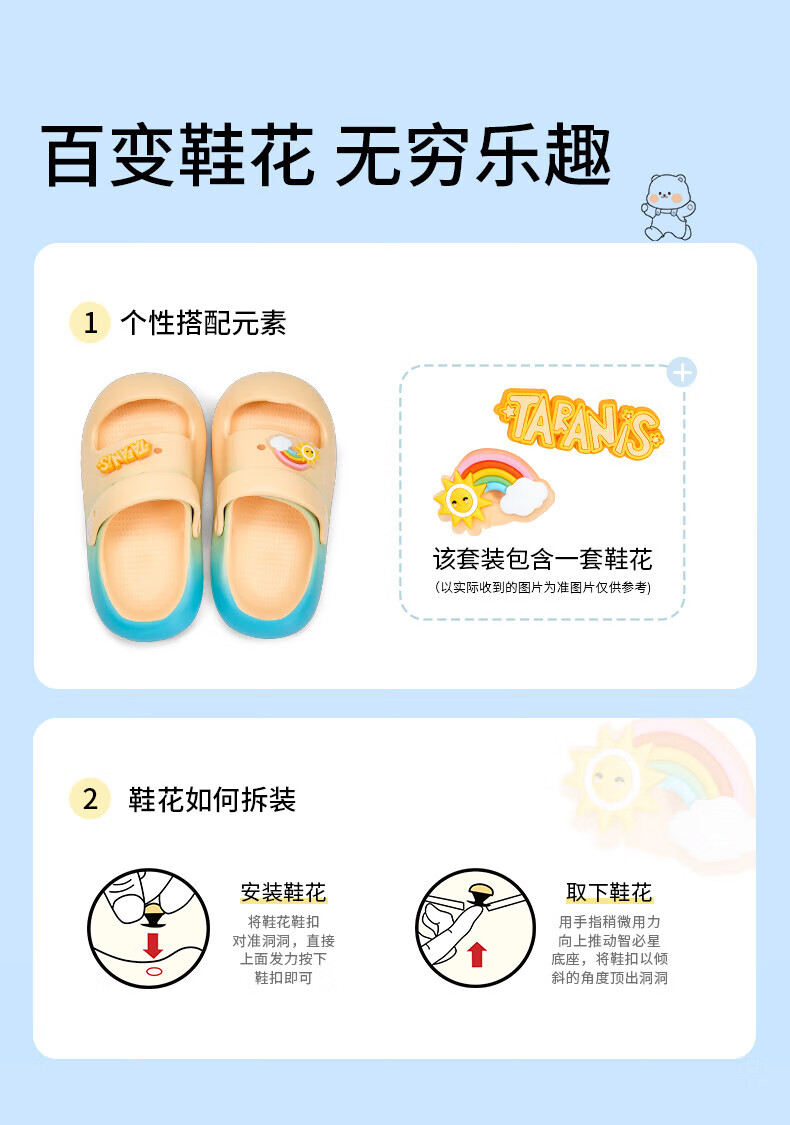 Terranis Children's Croc Shoes Summer New Indoor and Outdoor Thick-soled Non-Slip Sandals Boys and Girls Croc Shoes Beach Shoes Gradient Pink 30 Inner Length 18.5 Suitable for Foot Length 16.5