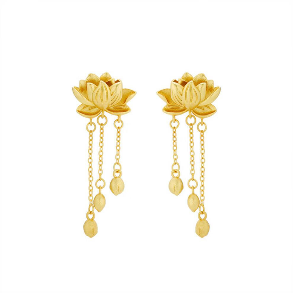 KZD Old Phoenix Gold Store Style Ancient Tassel Lotus Yellow I Gold Earrings Wedding Lotus Lotus Gold Earrings 18K Ring Pair of Lao Fengxiang Same Style